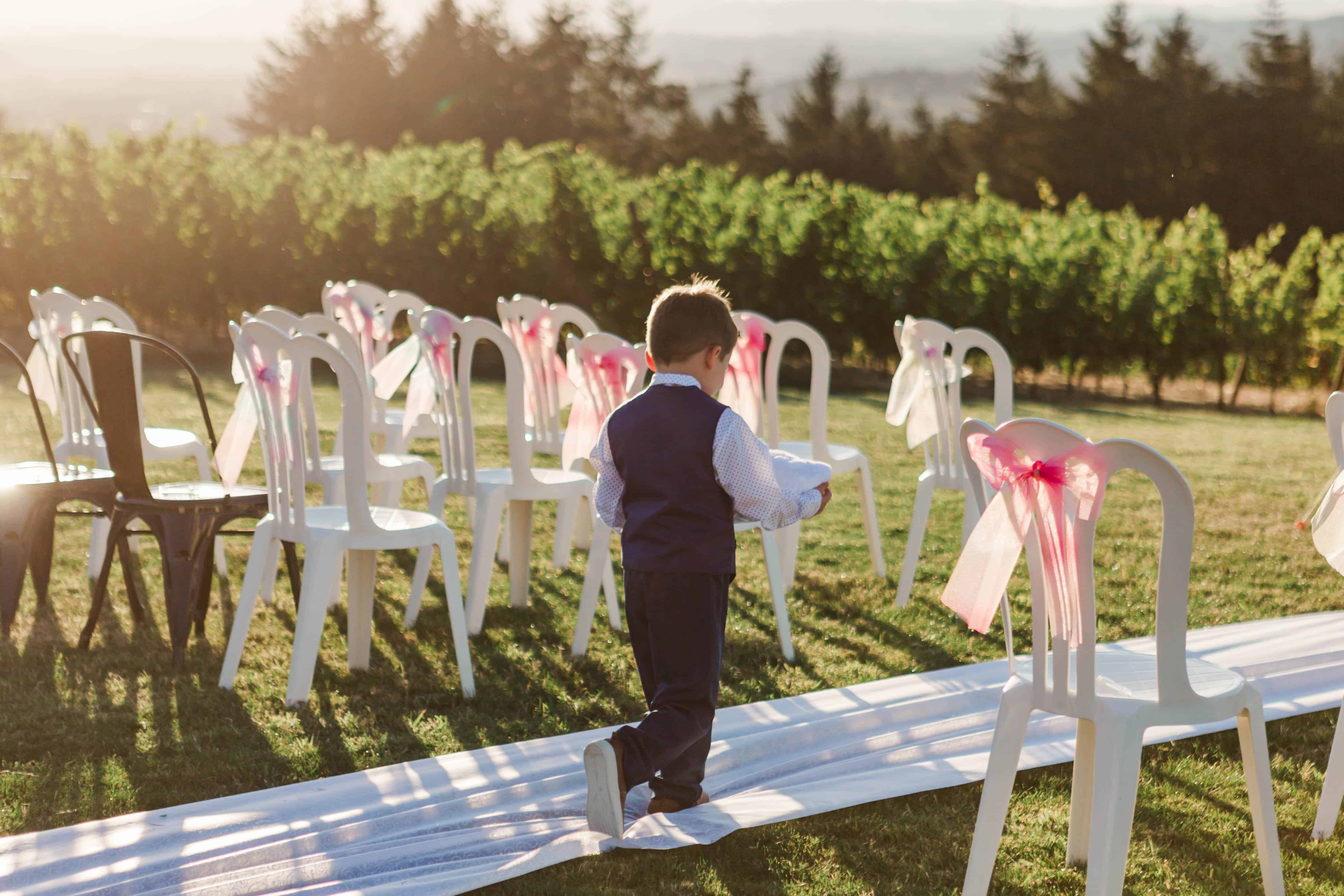Avidity Wines was gracious to allow the wedding to take place after hours, and the last of the winery guests were leaving as we arrived. Everyone was incredibly kind and welcoming, while the hustle of setting up the ceremony space ensued. Family members gathered together hauling chairs, securing the arbor, decorating and arranging the snacks and tables for the reception. The excited chatter and banter made us feel right at home while we set about photographing the details so meticulously arranged by the family members.