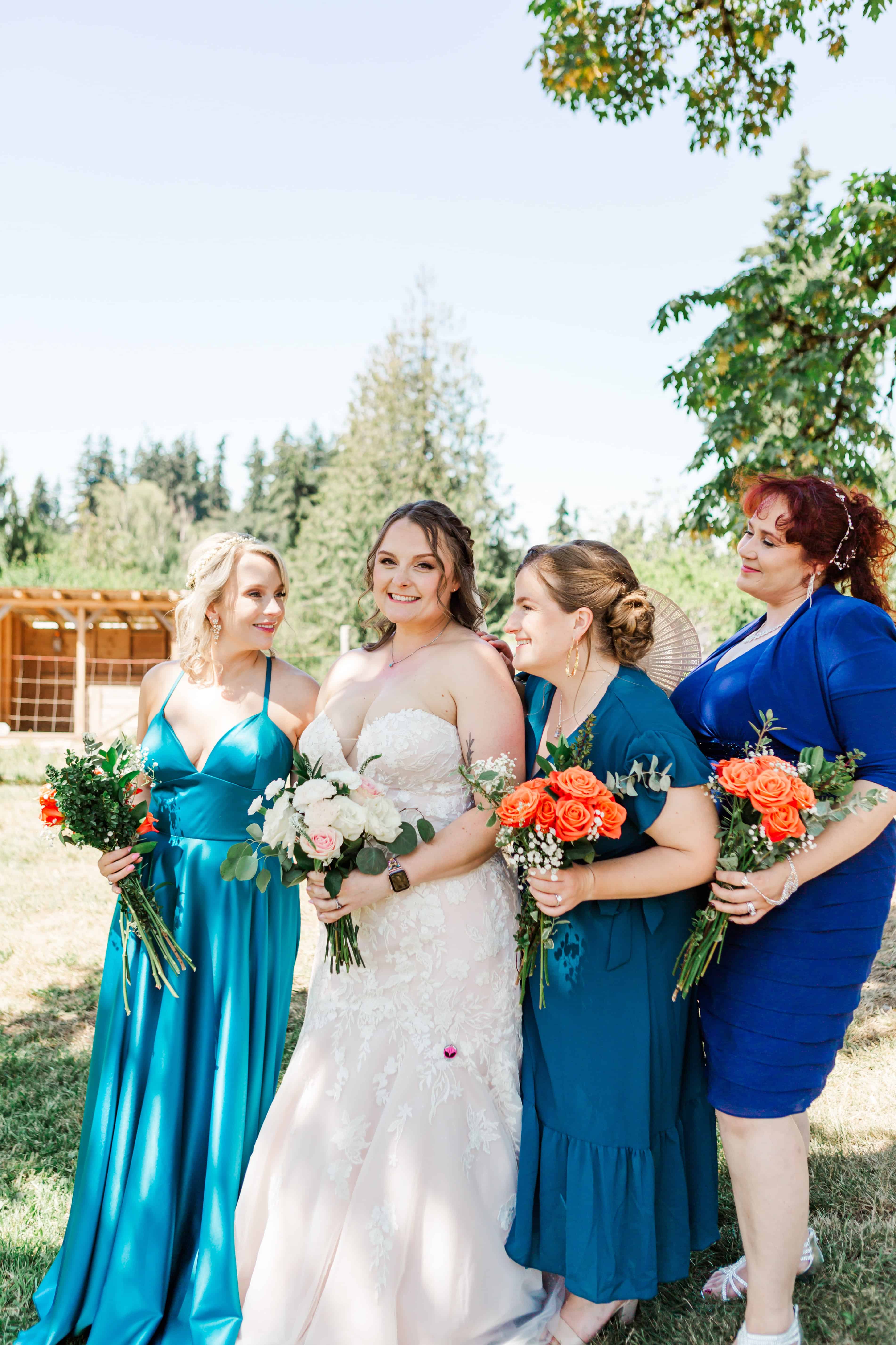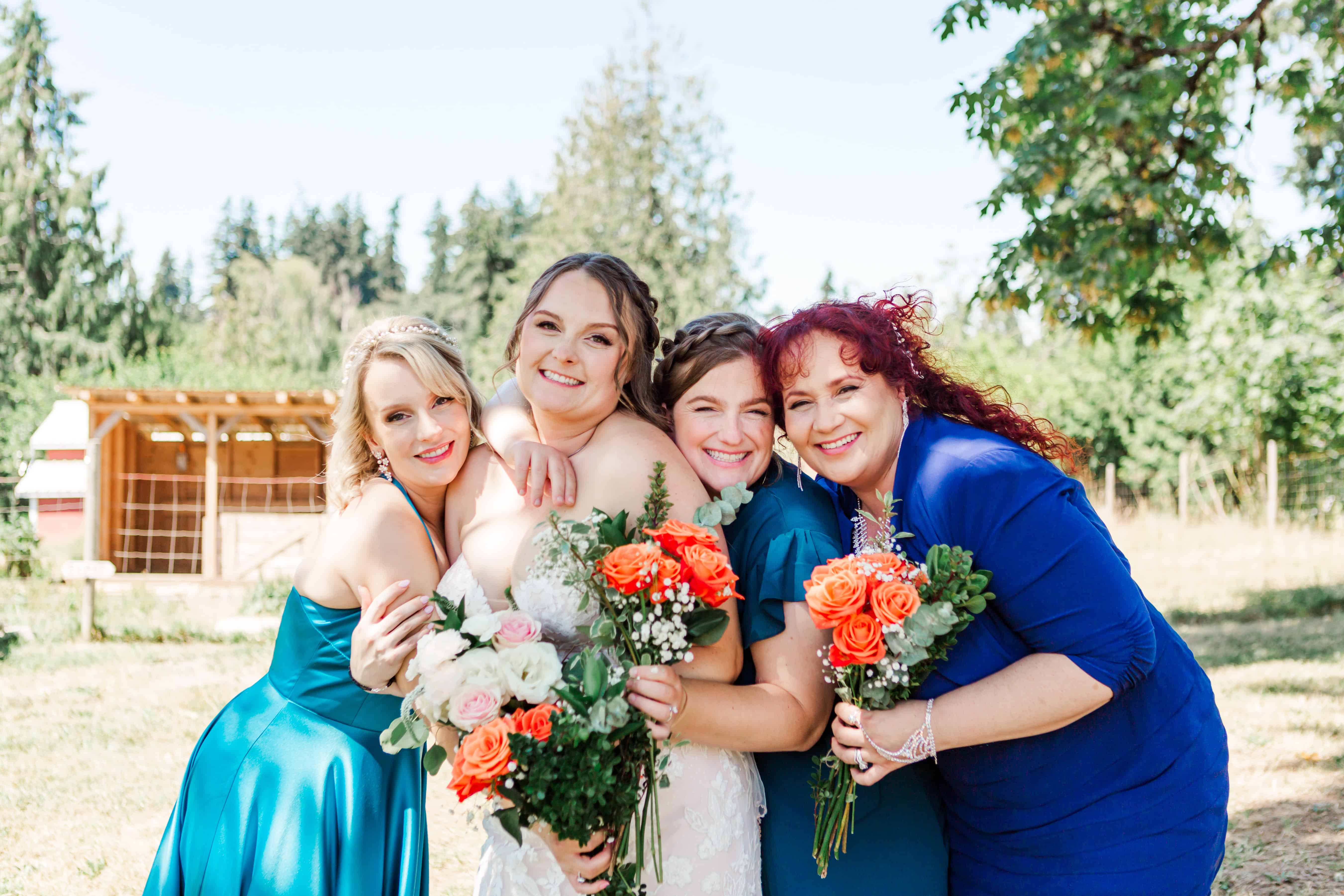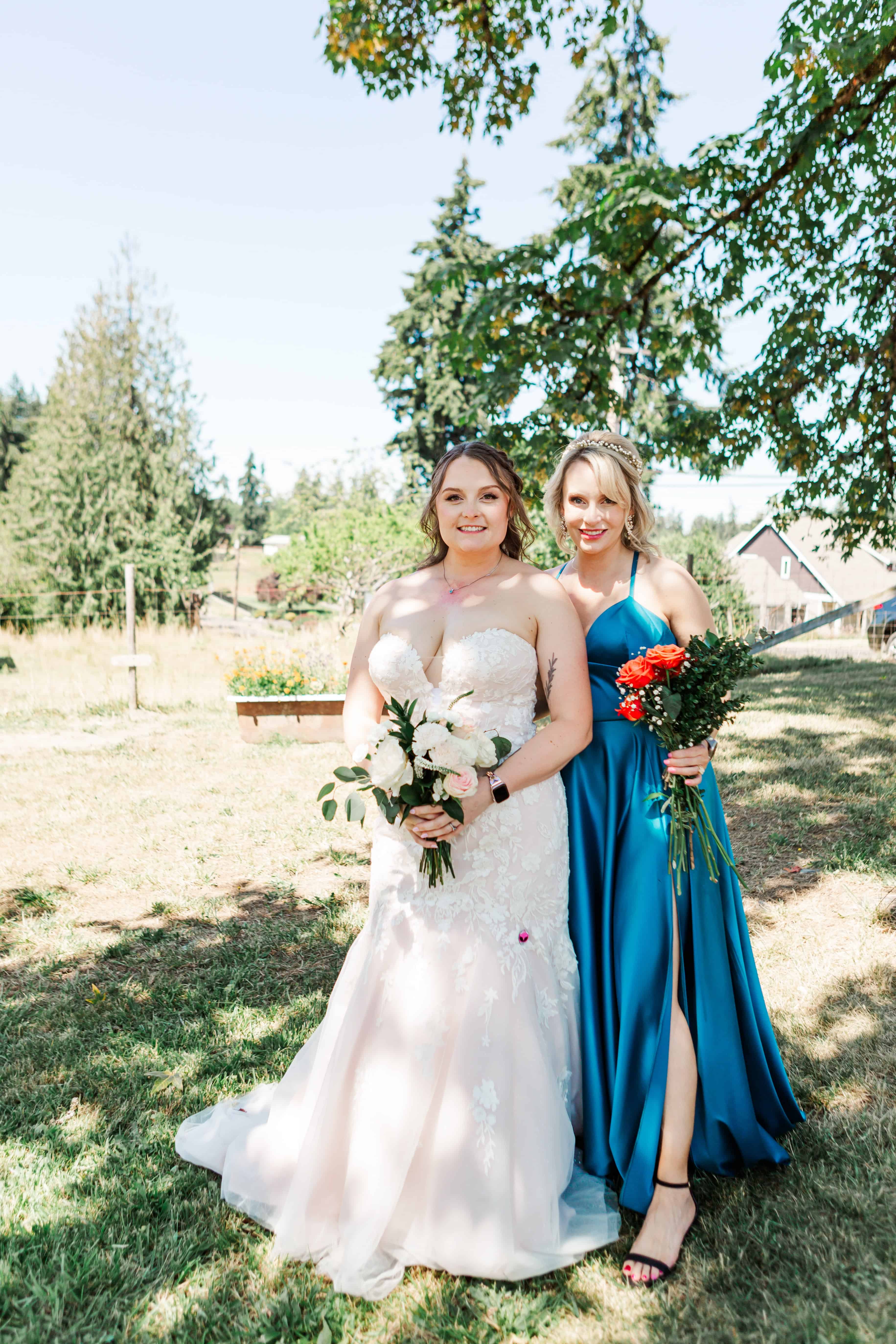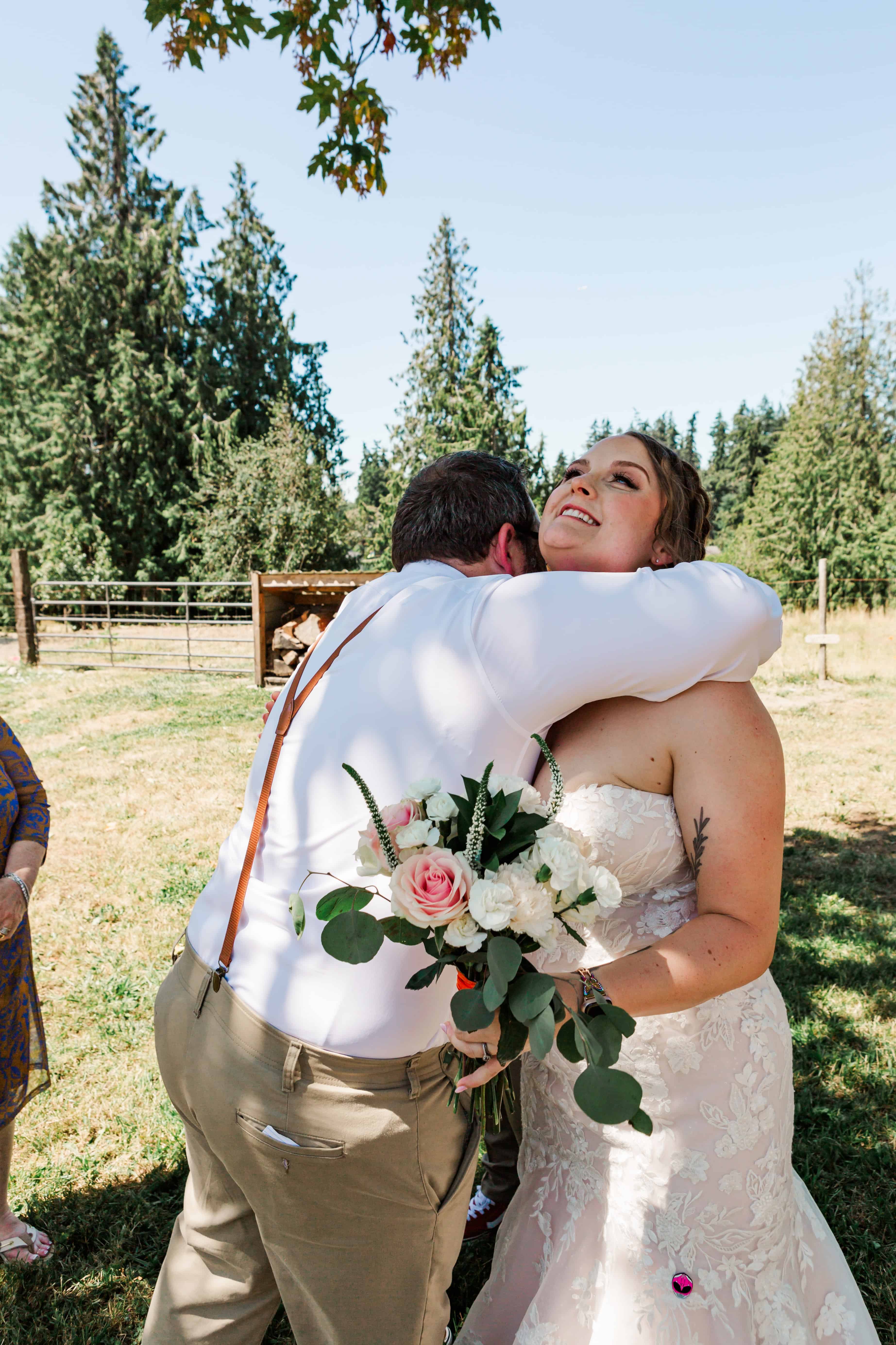 Let’s talk about this venue. Nestled in Edgewood, Washington, Fluffy Butt Farm is the kind of place that oozes family, love, and a little bit of chaos in the best possible way. Lauren’s parents moved onto the property a few years back, and it’s since become a gathering place for weddings, celebrations, and yes—backyard chickens with personalities big enough to inspire the farm’s unforgettable name.