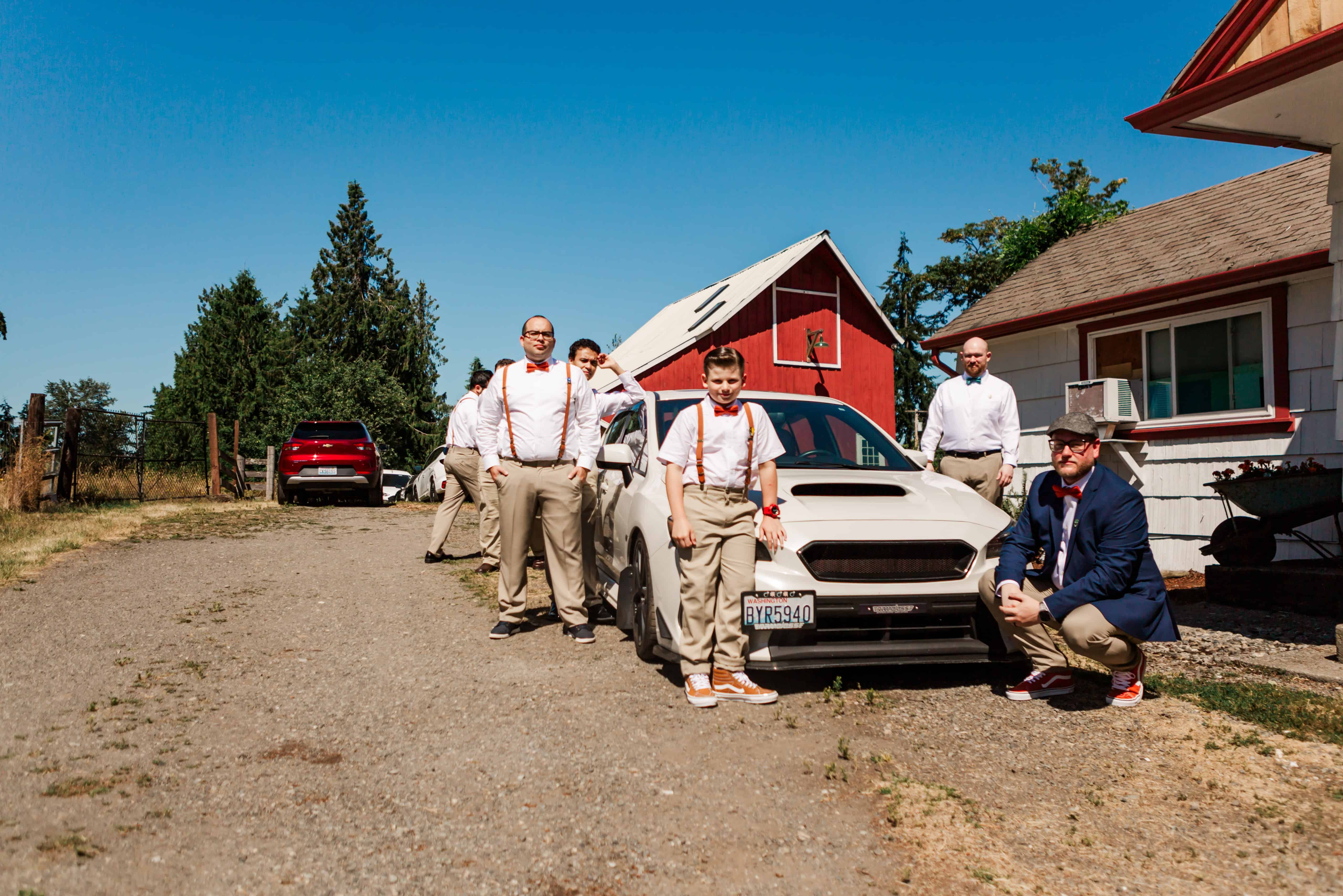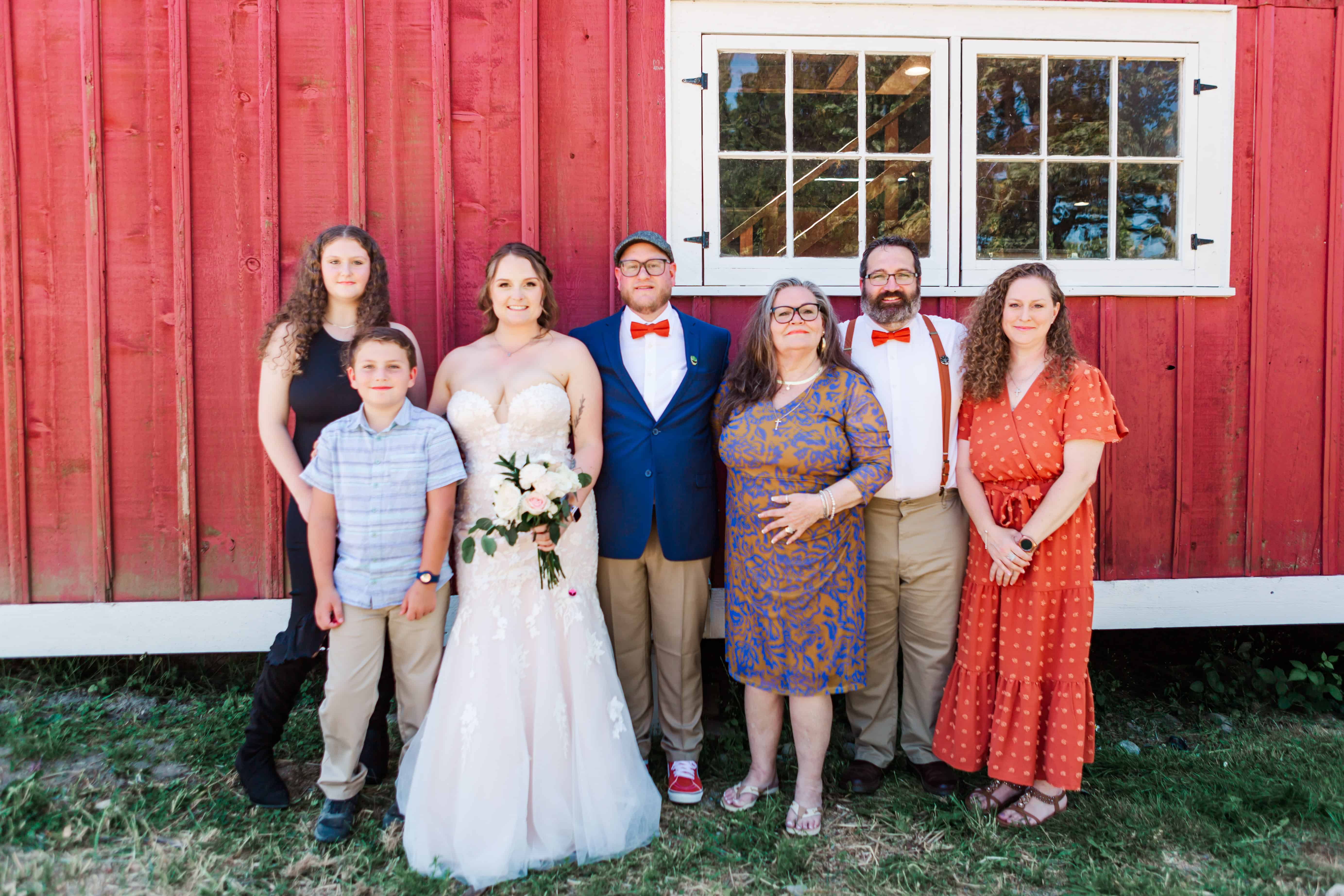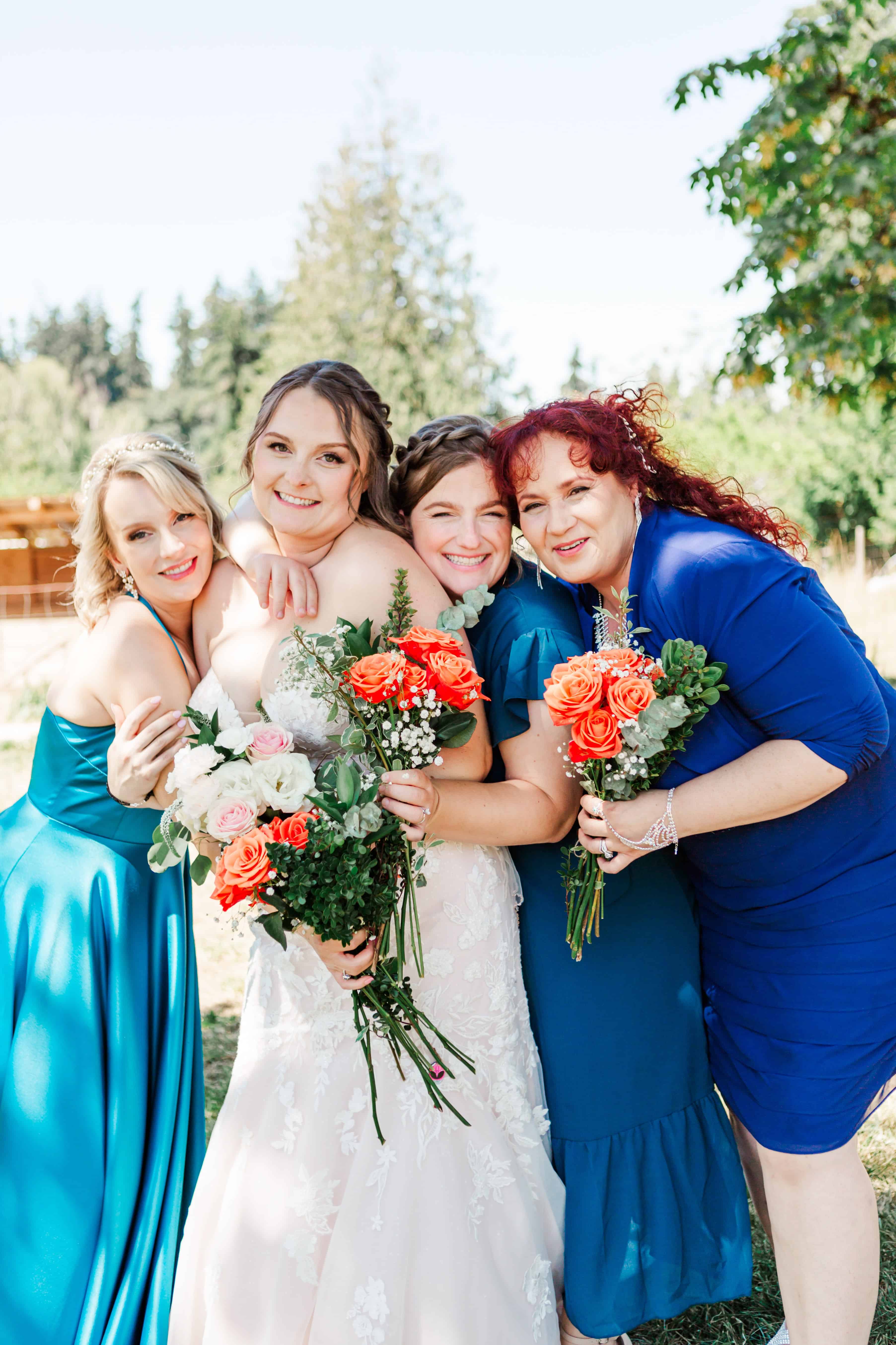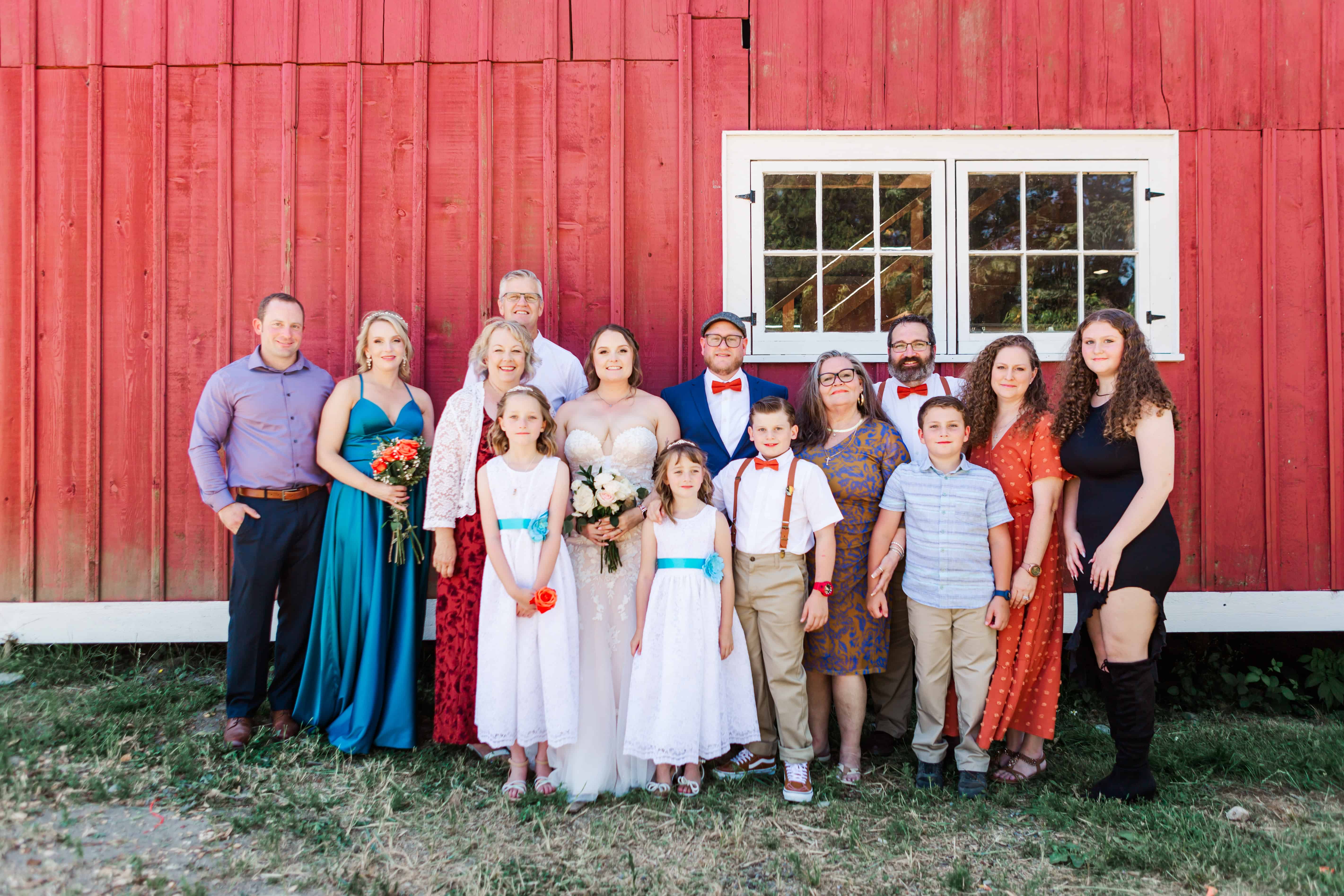 Let’s talk about this venue. Nestled in Edgewood, Washington, Fluffy Butt Farm is the kind of place that oozes family, love, and a little bit of chaos in the best possible way. Lauren’s parents moved onto the property a few years back, and it’s since become a gathering place for weddings, celebrations, and yes—backyard chickens with personalities big enough to inspire the farm’s unforgettable name.