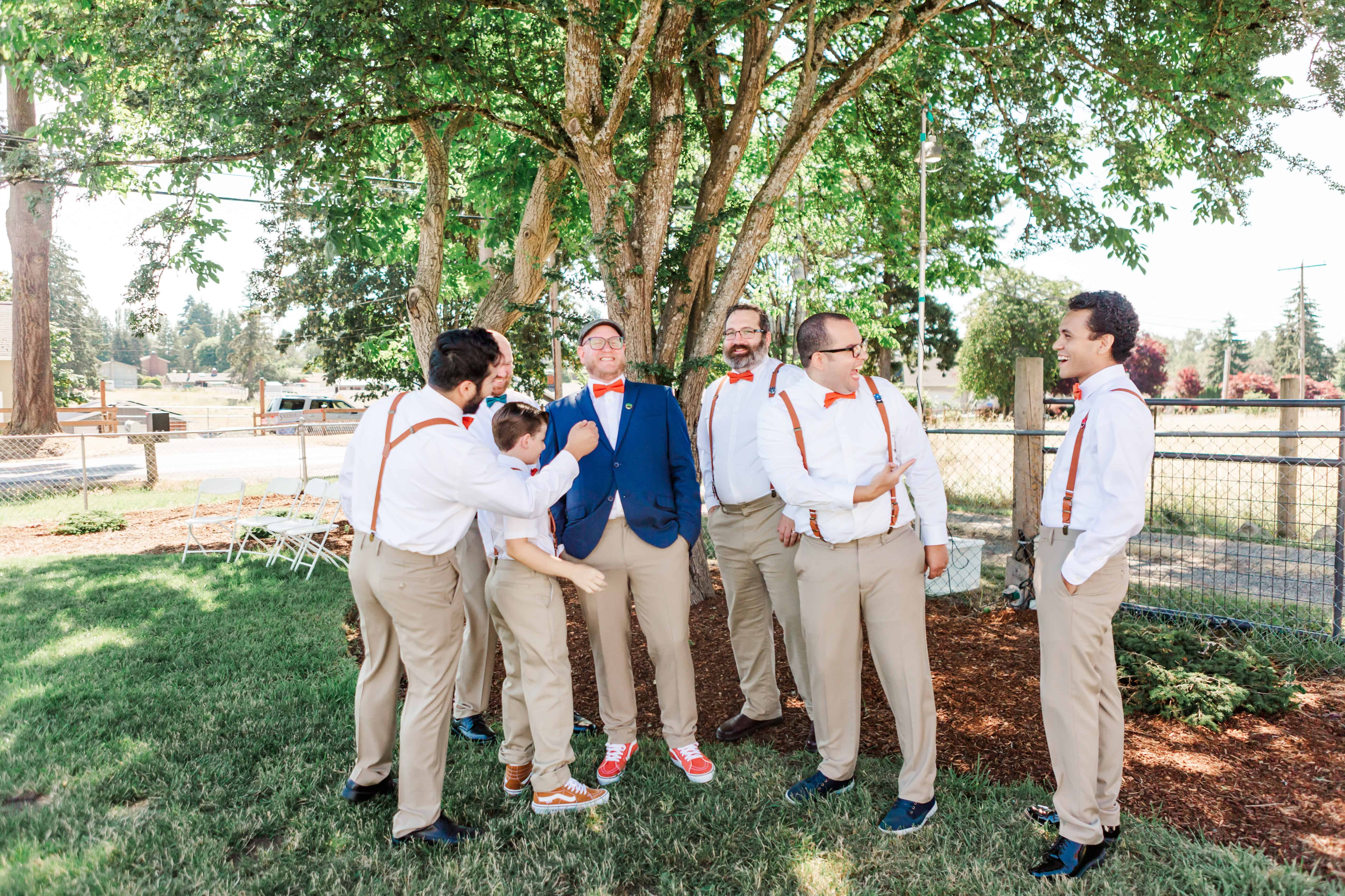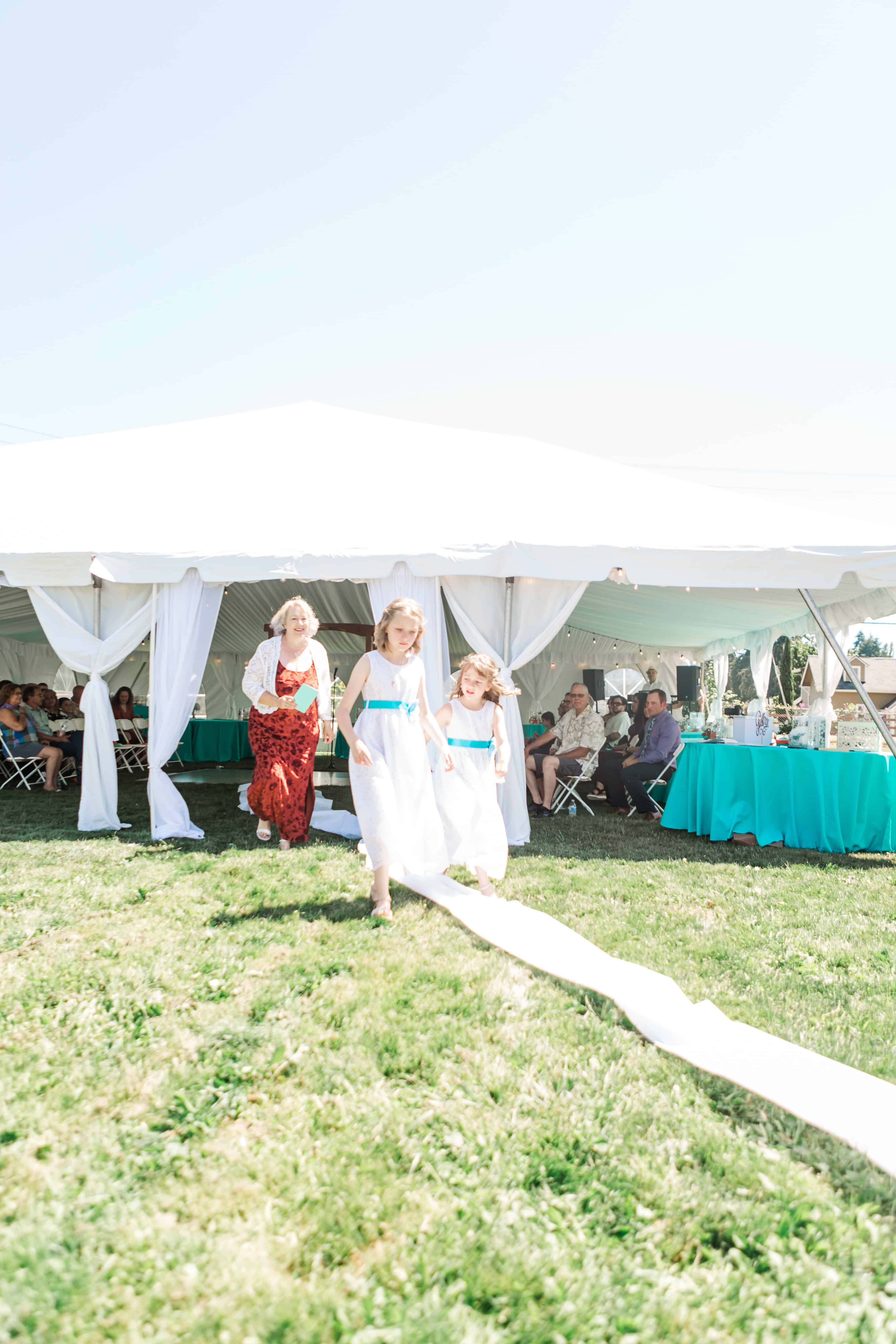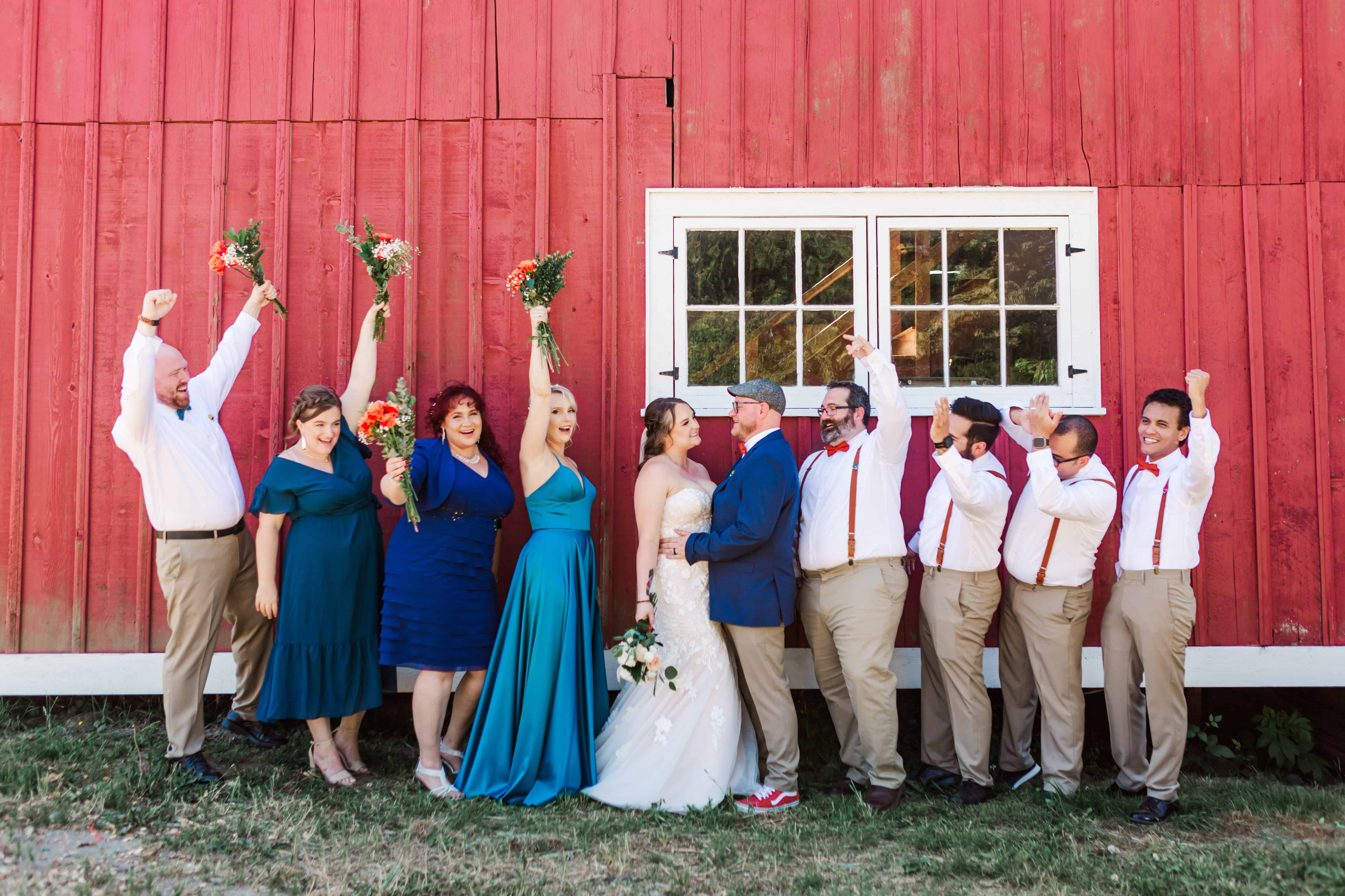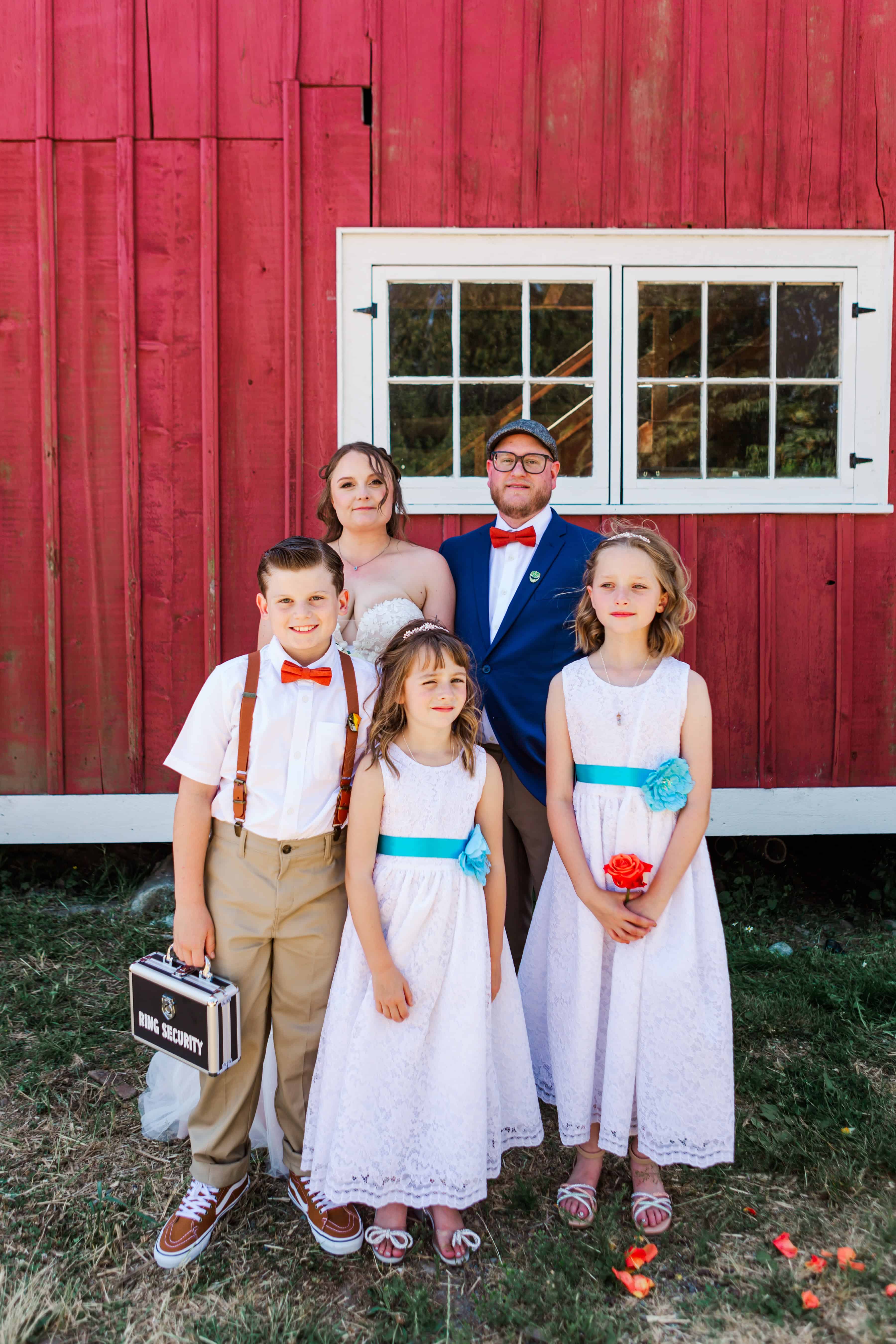 Let’s talk about this venue. Nestled in Edgewood, Washington, Fluffy Butt Farm is the kind of place that oozes family, love, and a little bit of chaos in the best possible way. Lauren’s parents moved onto the property a few years back, and it’s since become a gathering place for weddings, celebrations, and yes—backyard chickens with personalities big enough to inspire the farm’s unforgettable name.