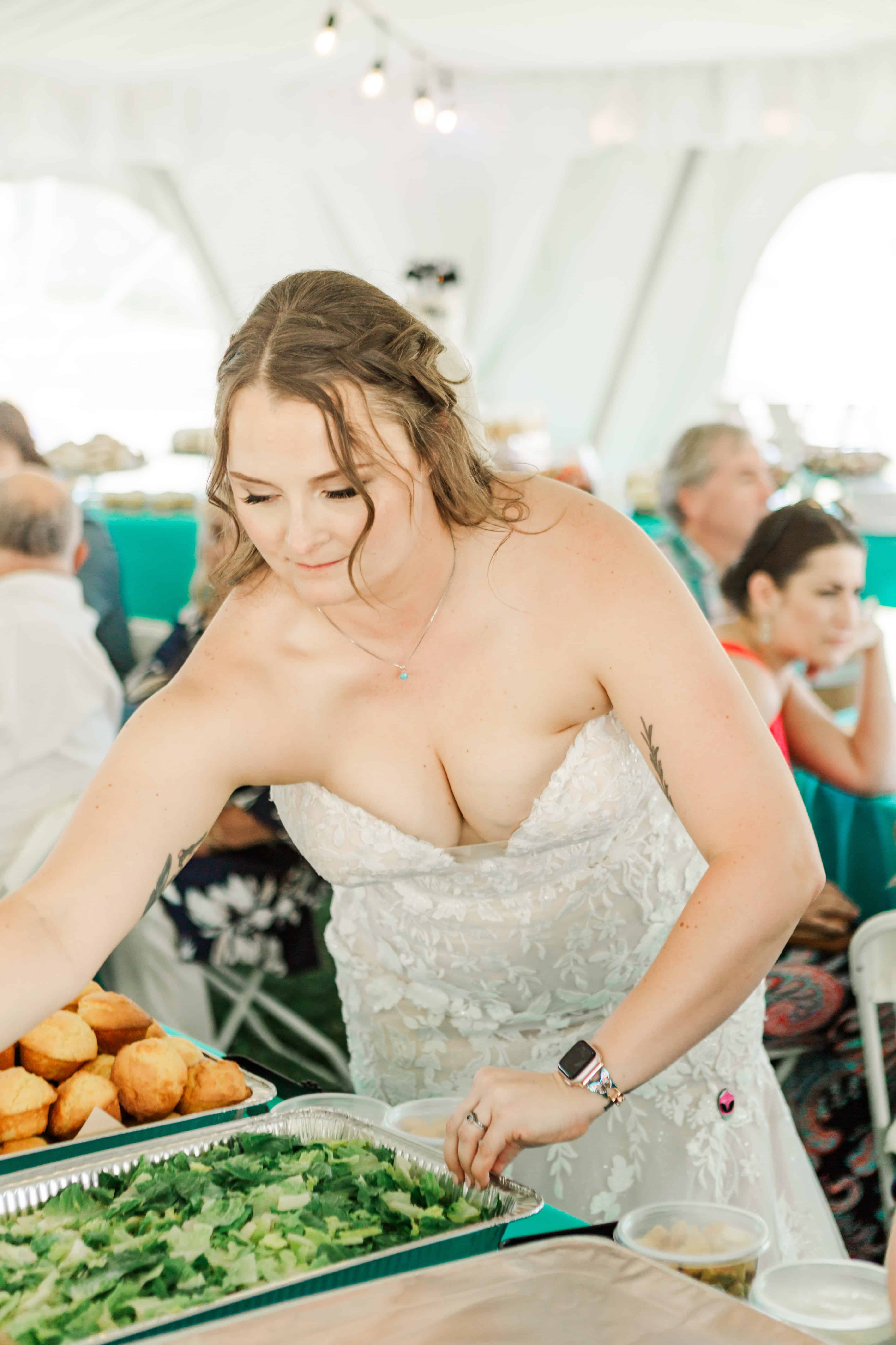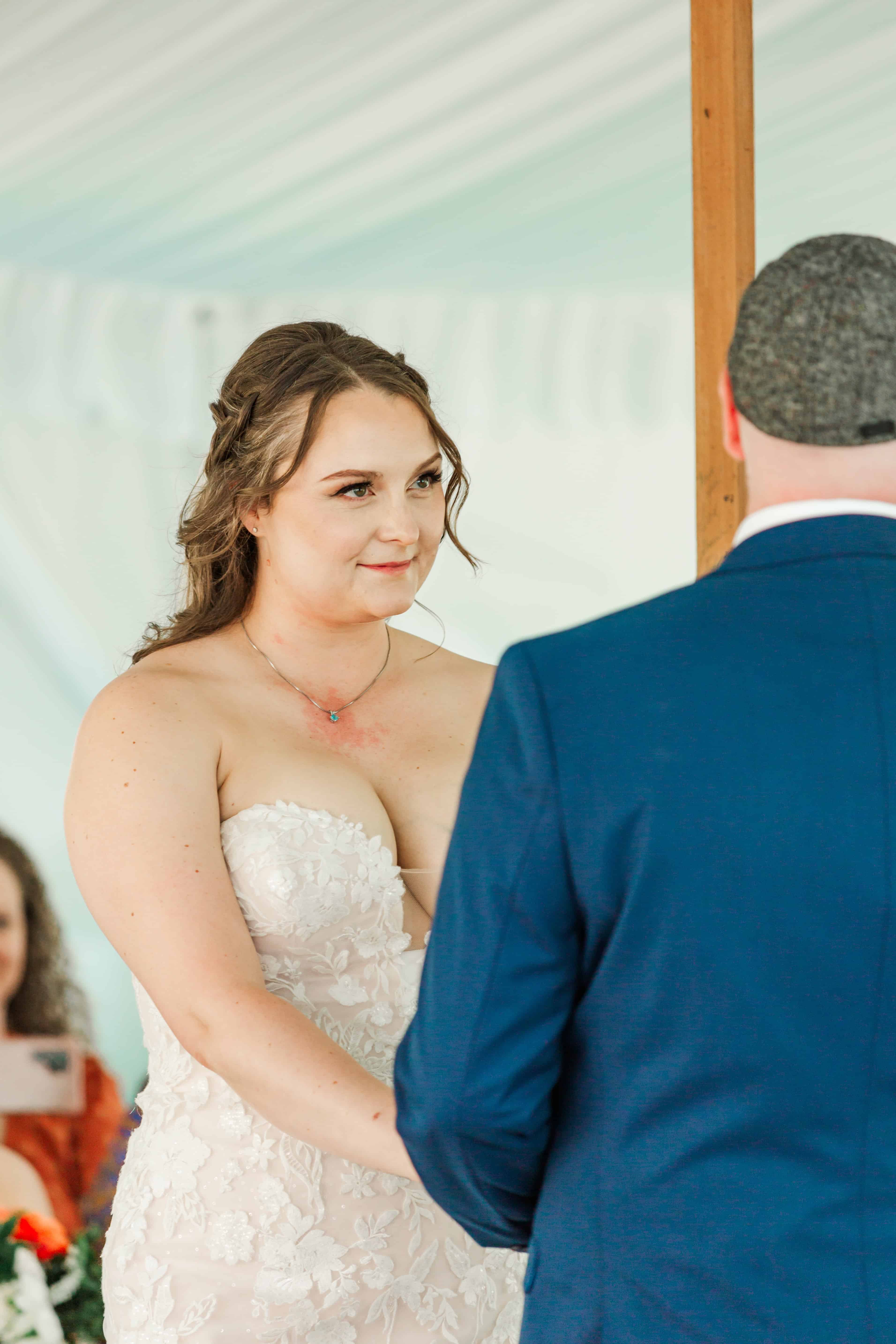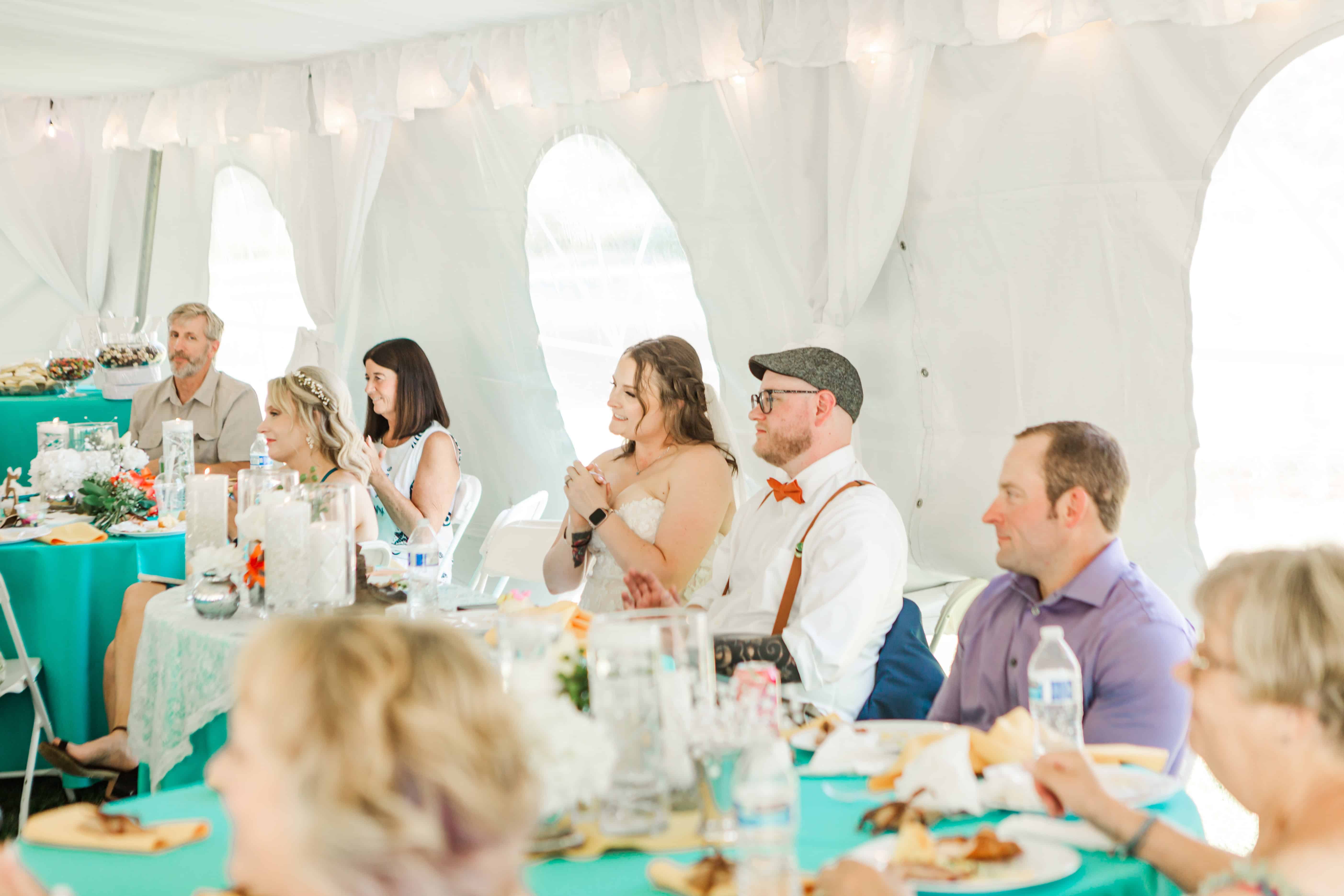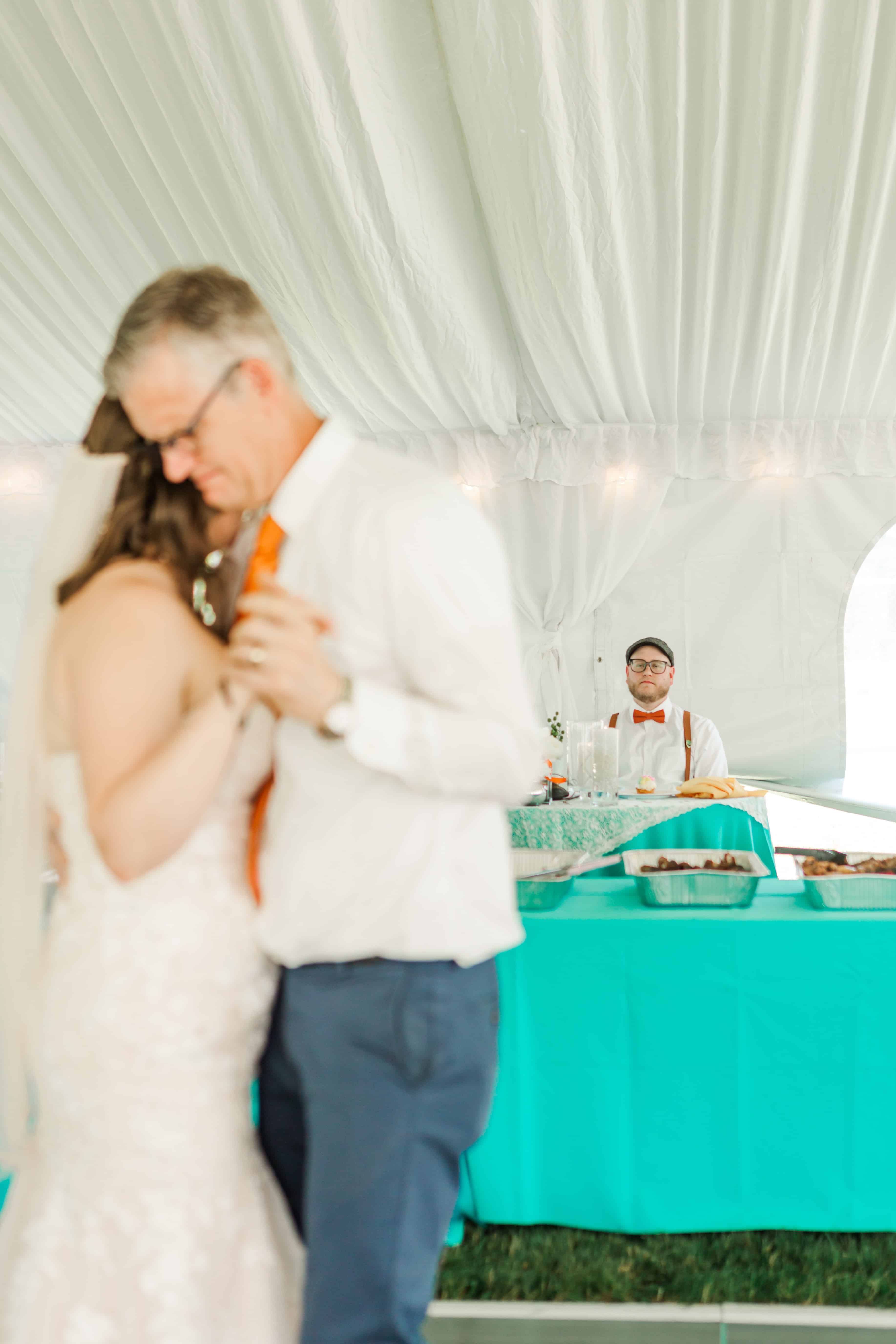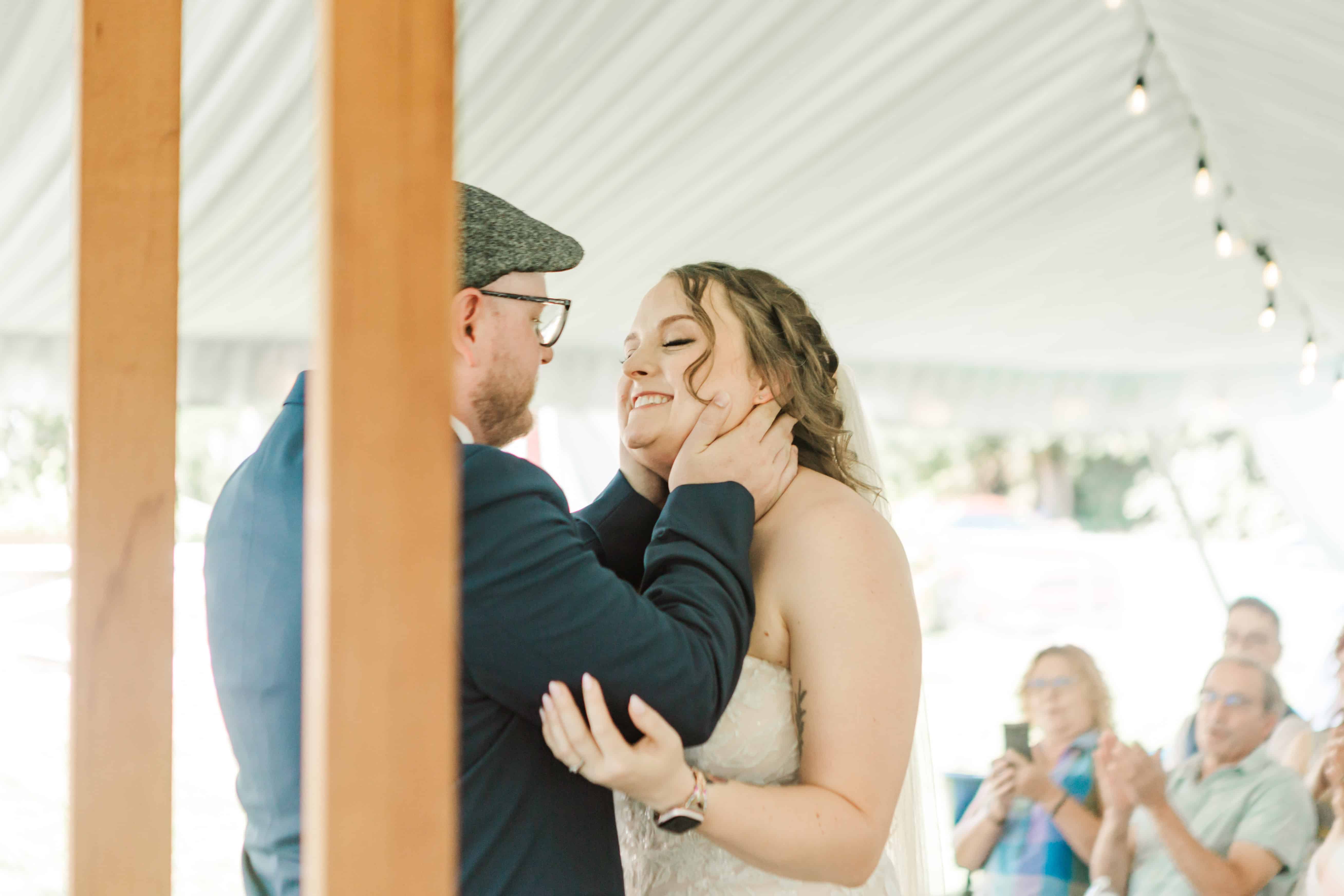 Fun fact: Lauren’s siblings also got married here, so hosting her own wedding at the family farm wasn’t just convenient, it was meant to be. With a giant white tent, a tiny dance floor, and lush greenery doing its thing all around us, the setting didn’t need much else. Nature really stepped in as the unofficial florist and decorator. (10/10 would recommend.)