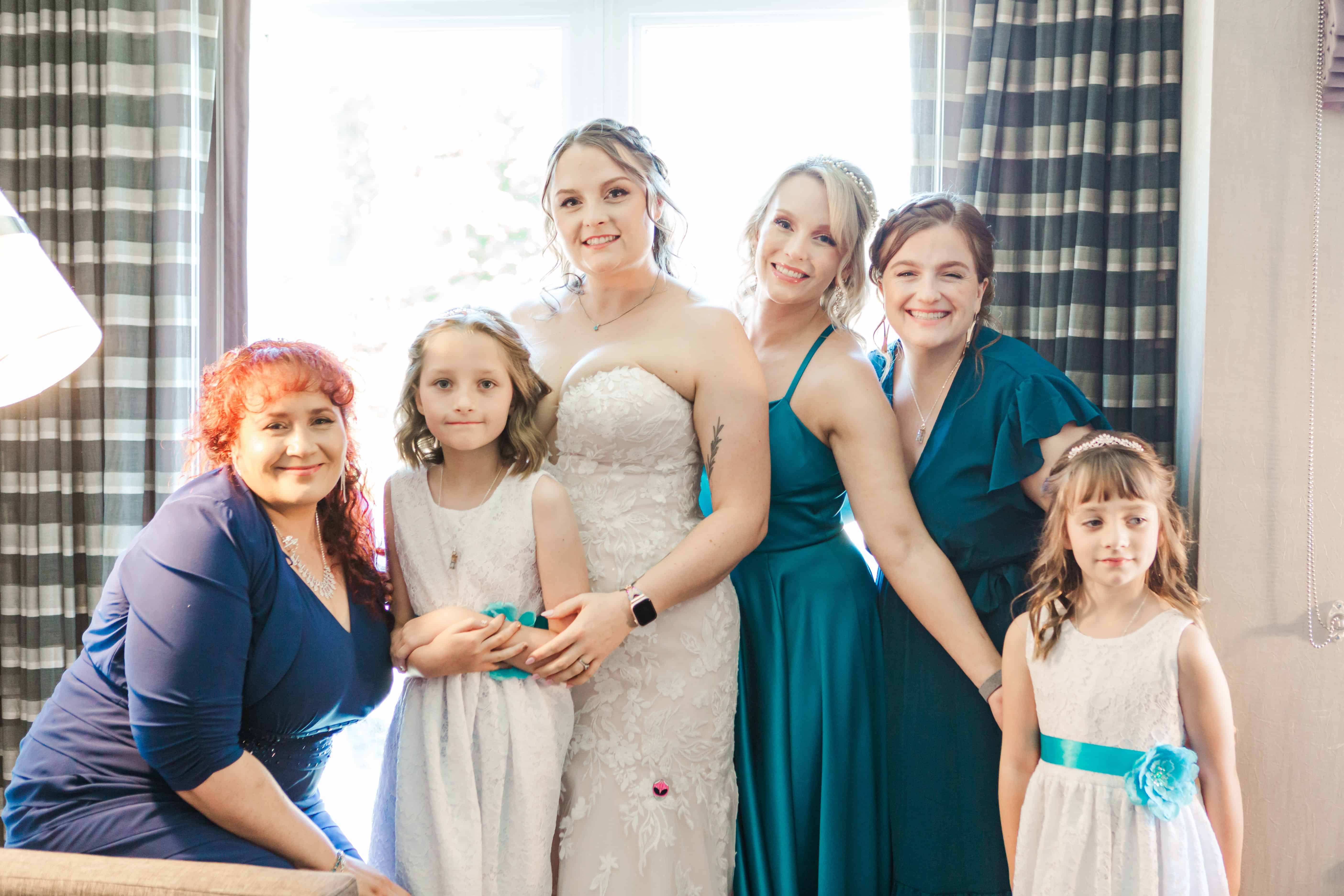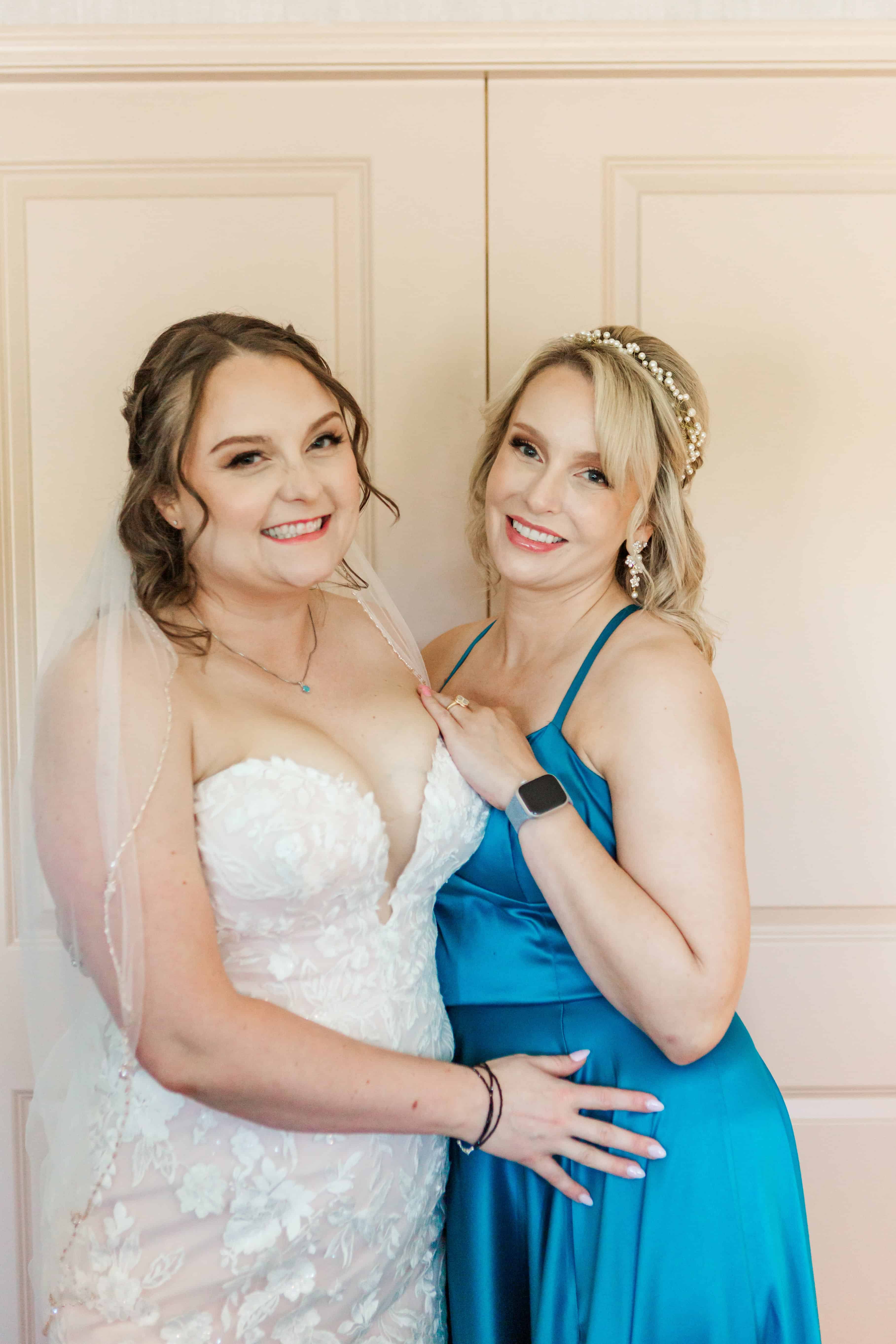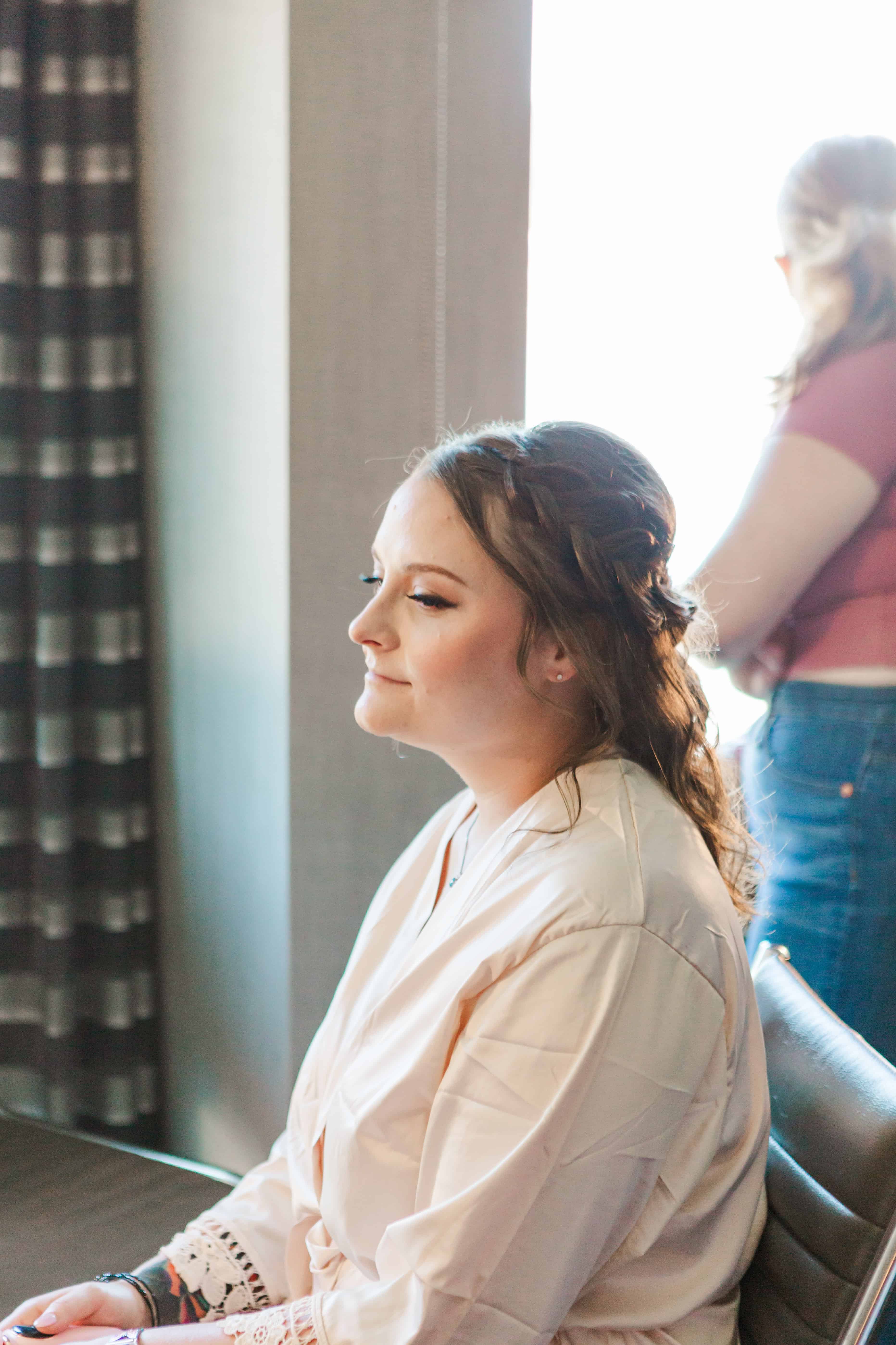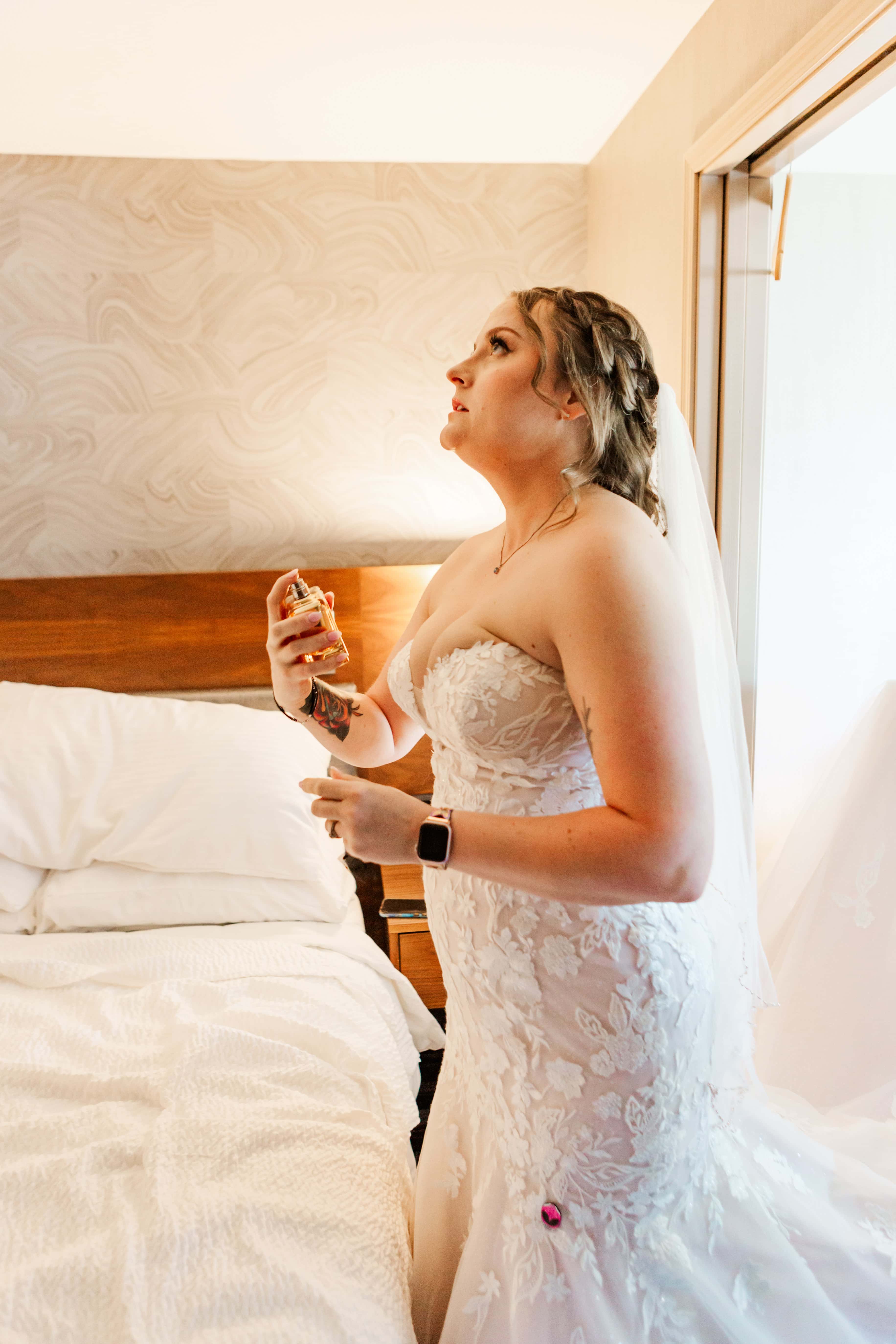 Our day started at the Silver Cloud Inn, where I literally met one of Lauren’s bridesmaids in the elevator on my way up. (Hi, Megan!) The getting-ready suite was buzzing with music, hairspray, and the happiest kind of nerves. Lauren had gathered the sweetest, simplest details—true-to-her heirlooms and special touches that made flat lays a joy to photograph.