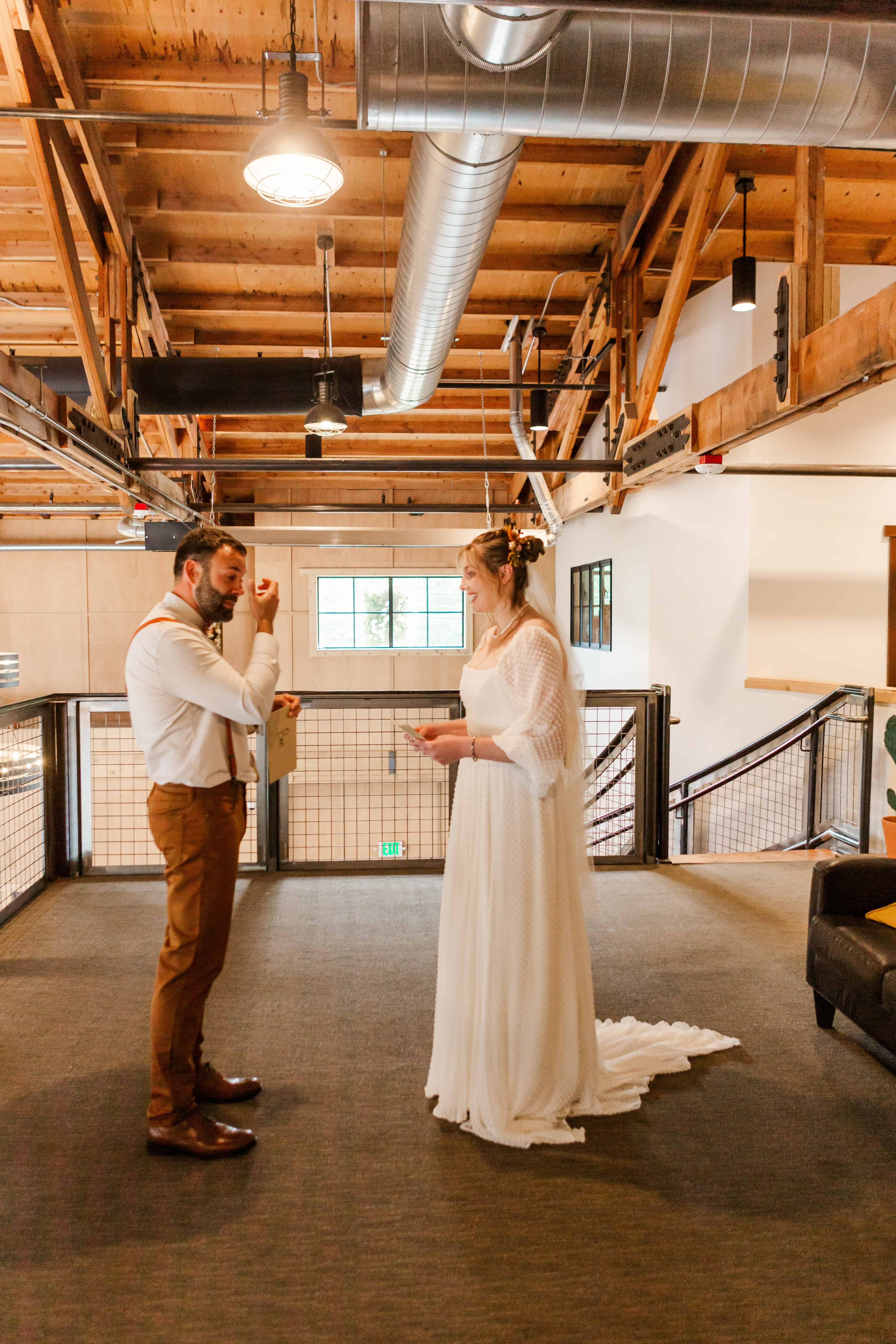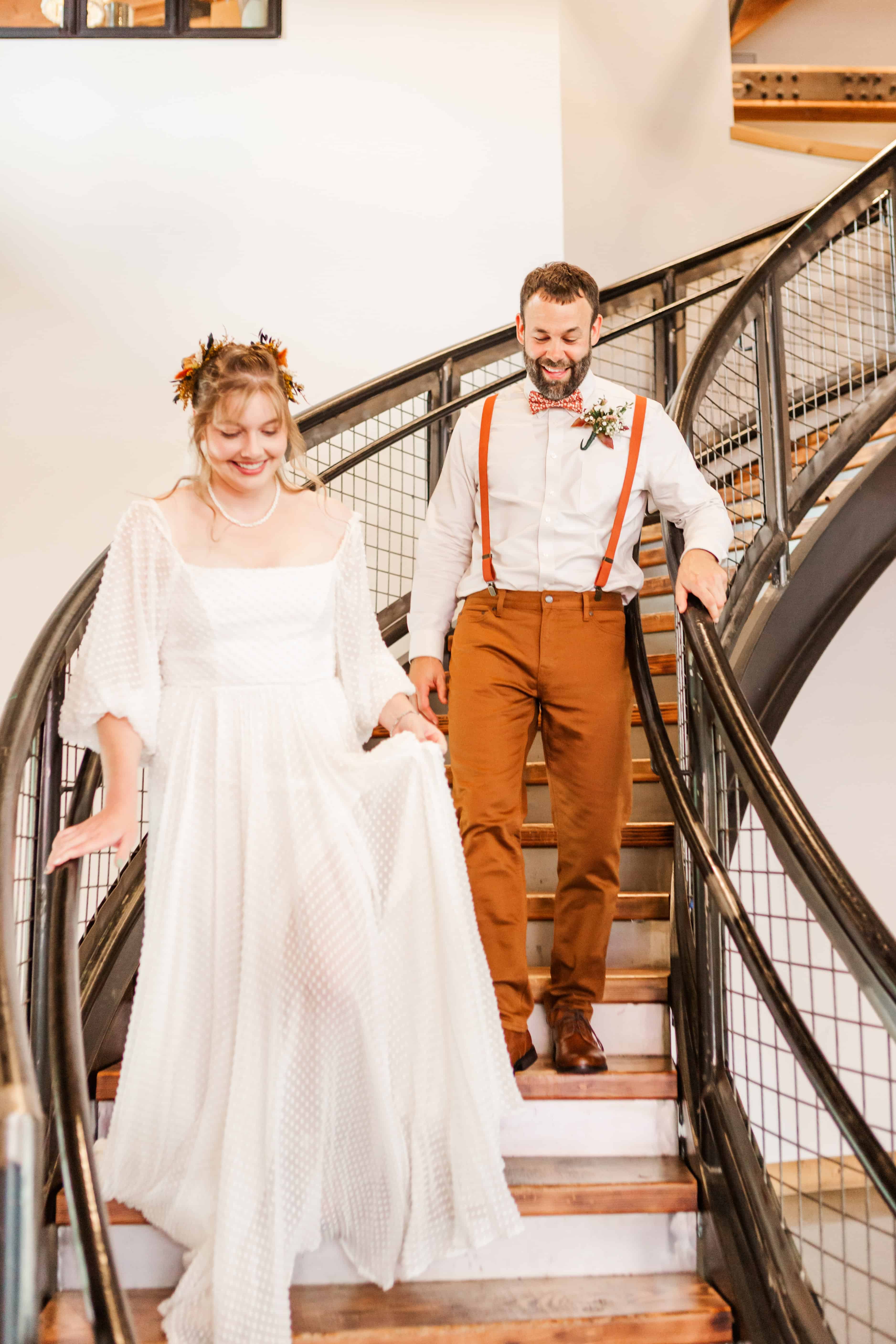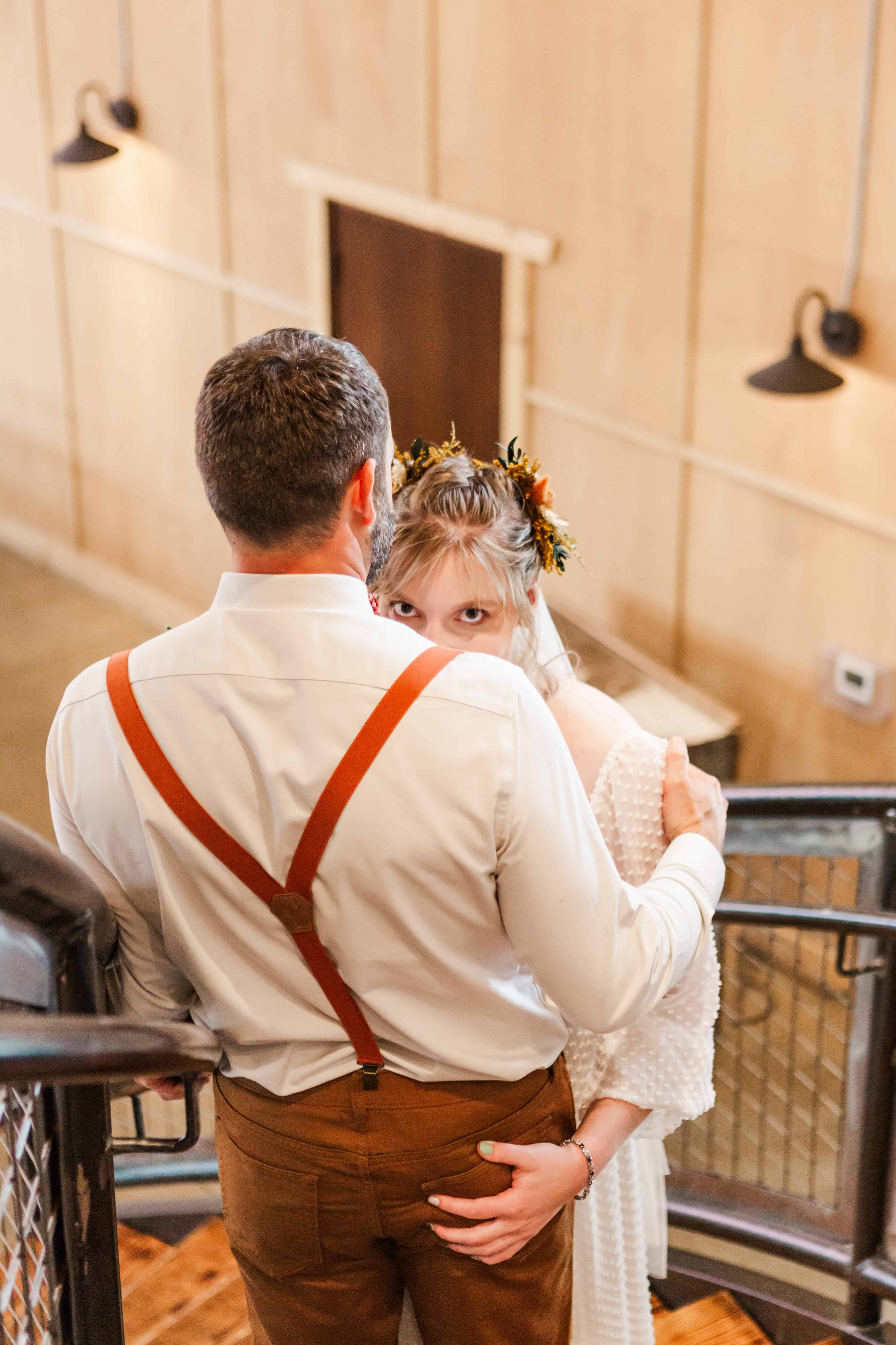 The moment we walked in, we knew it was going to be an unforgettable day. There’s this stunning staircase at Farm 12 that leads up to a balcony overlooking the reception space, and it became a beautiful focal point throughout the day. Megan made her grand entrance down those steps, and the whole room seemed to hold its breath. The open, airy vibe of the venue made every guest feel like they were part of something truly special.