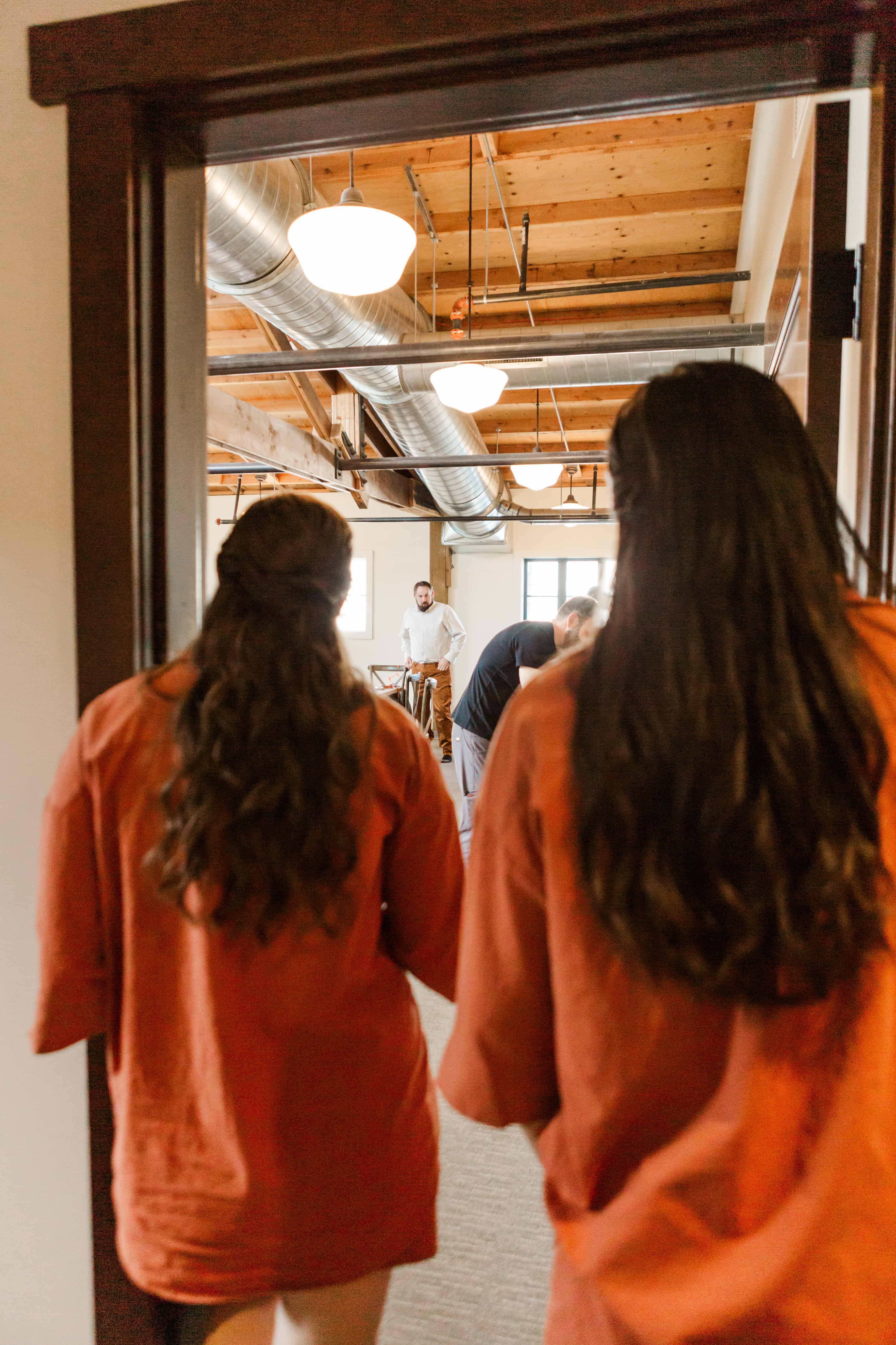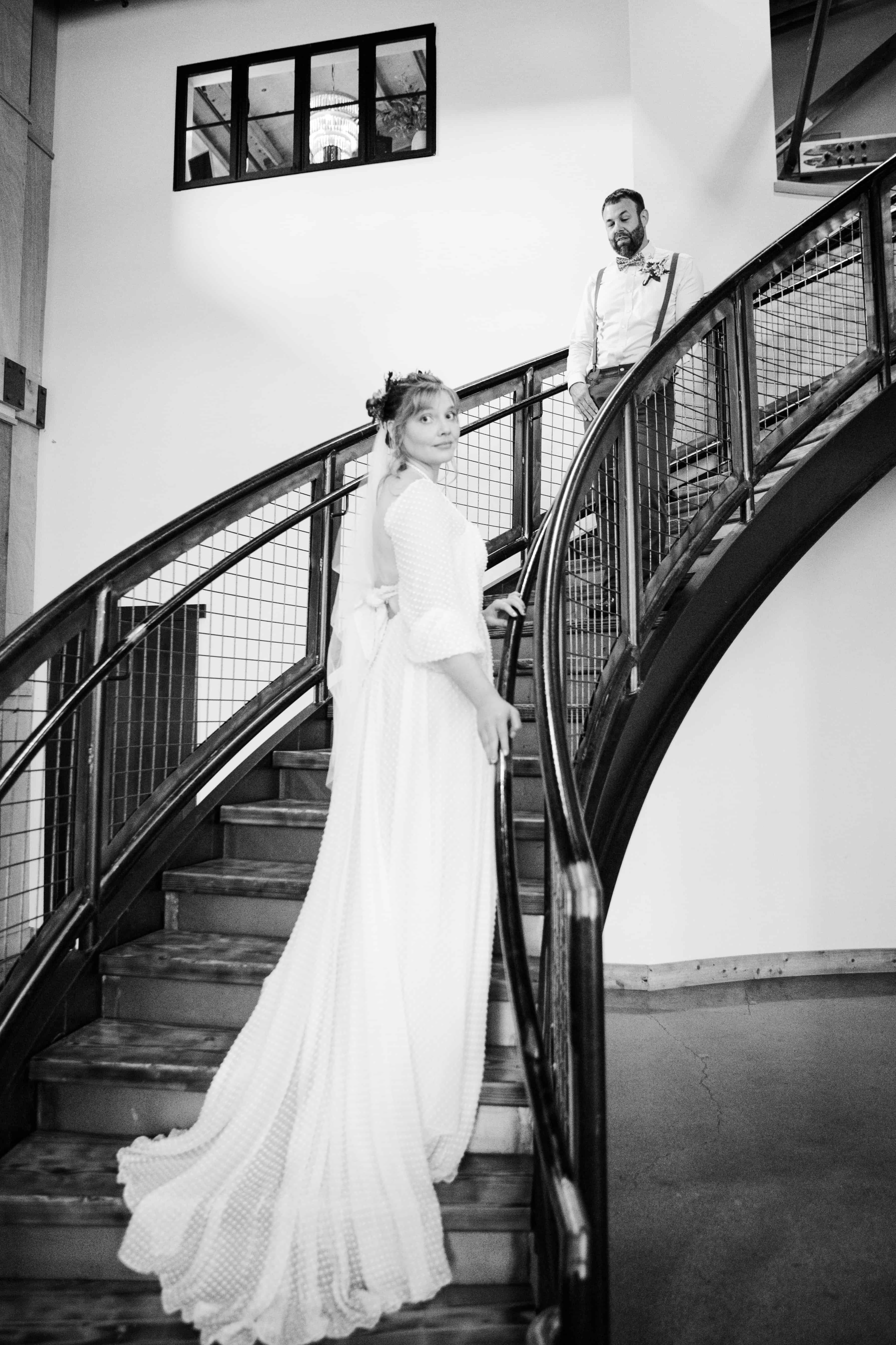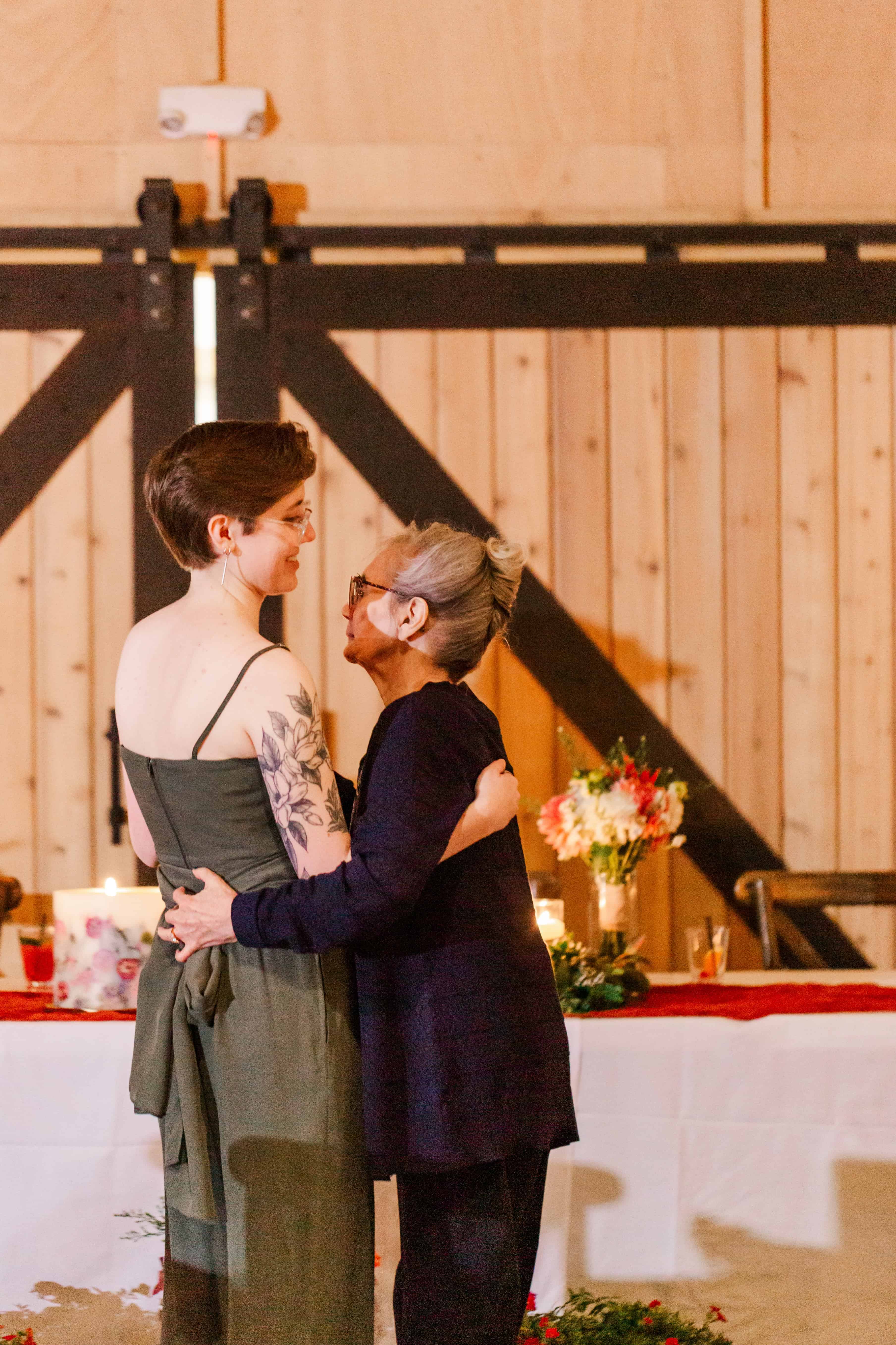 The moment we walked in, we knew it was going to be an unforgettable day. There’s this stunning staircase at Farm 12 that leads up to a balcony overlooking the reception space, and it became a beautiful focal point throughout the day. Megan made her grand entrance down those steps, and the whole room seemed to hold its breath. The open, airy vibe of the venue made every guest feel like they were part of something truly special.