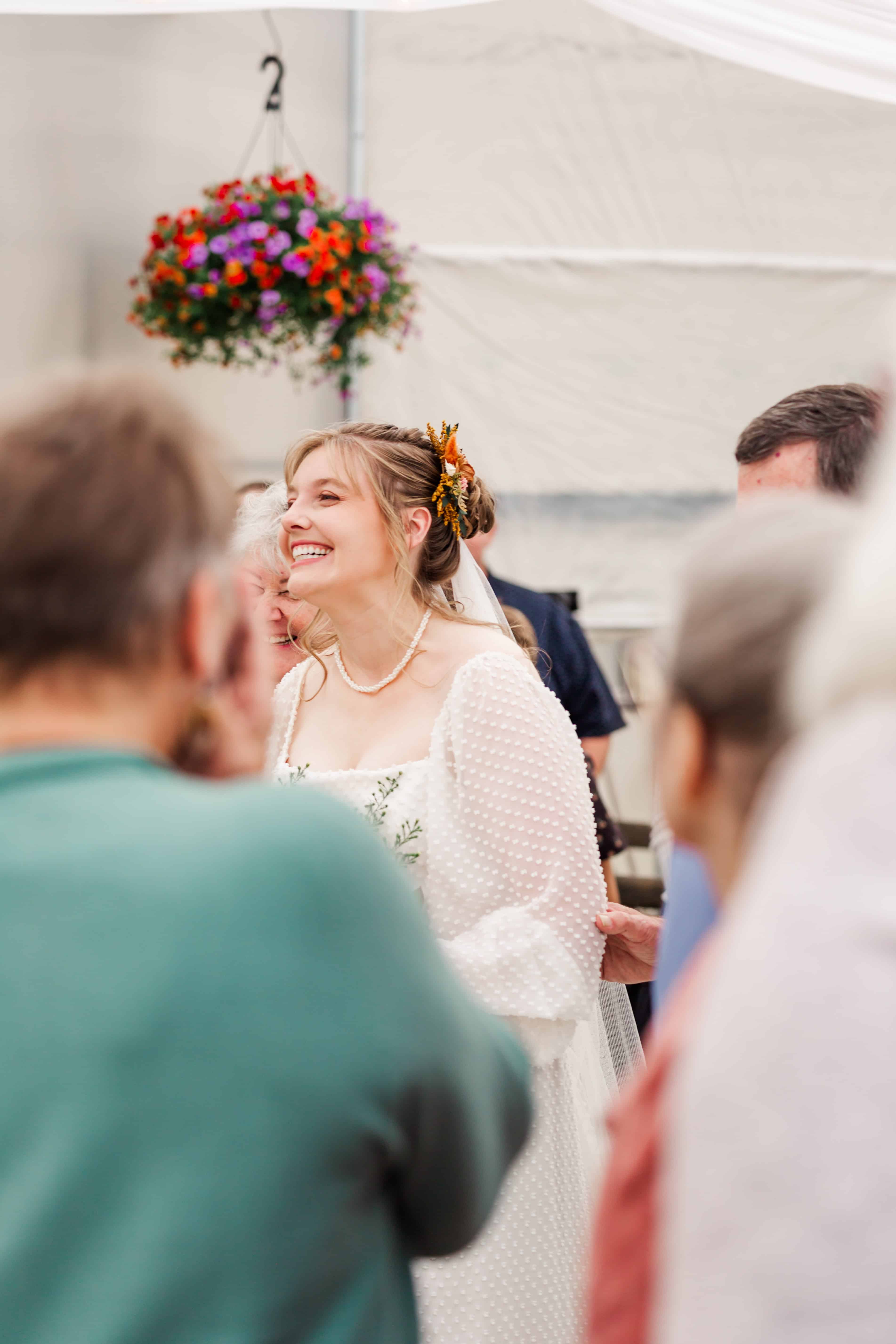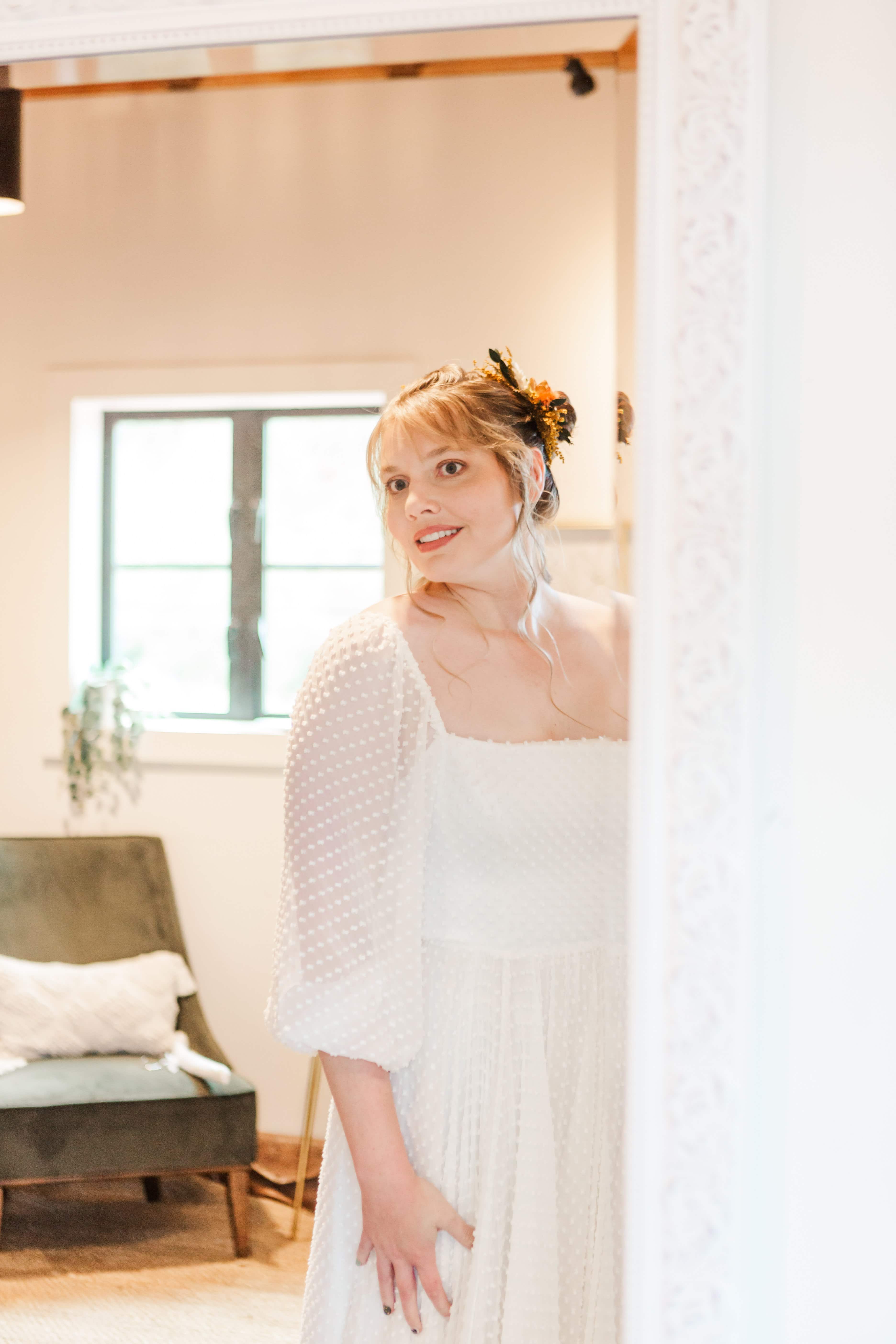 Then, there was Megan’s dress. She looked like an absolute vision in her second-hand gown, which fit her like it was custom-made. It had these tiny, delicate bows that added such a whimsical touch—she looked like she stepped straight out of a fairytale. The way the dress flowed as she walked was magical, giving her this ethereal, effortless beauty. Everything about her look was intentional, sustainable, and full of heart, just like the rest of the day.