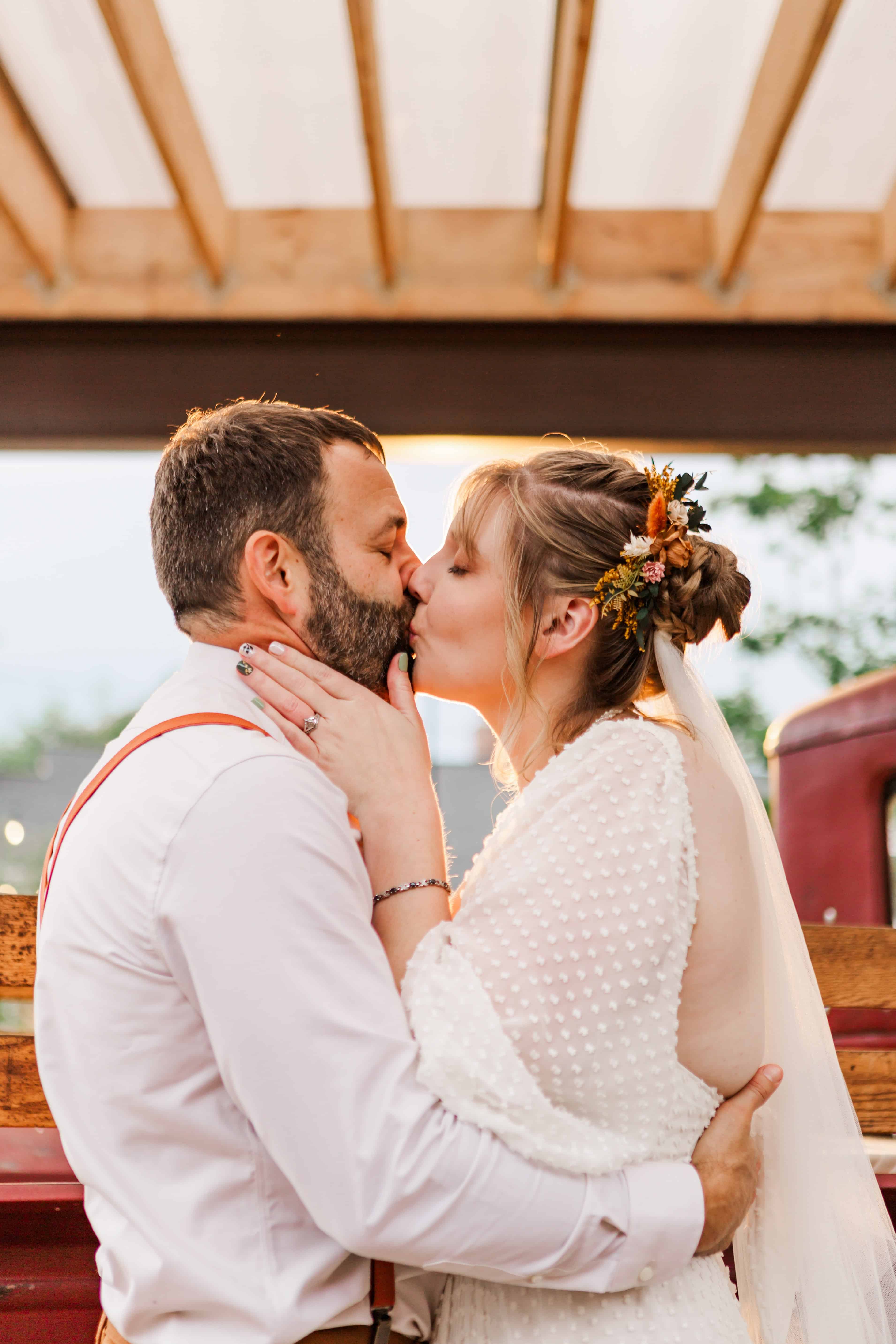 One challenge we faced on Megan and Ben’s day was catching the golden hour for sunset photos. Nature didn’t quite cooperate, but hey, we had a trick up our sleeves! With a little help from our lighting kit, we created a faux sunset that gave Megan and Ben those romantic, soft-lit moments they had been dreaming of.