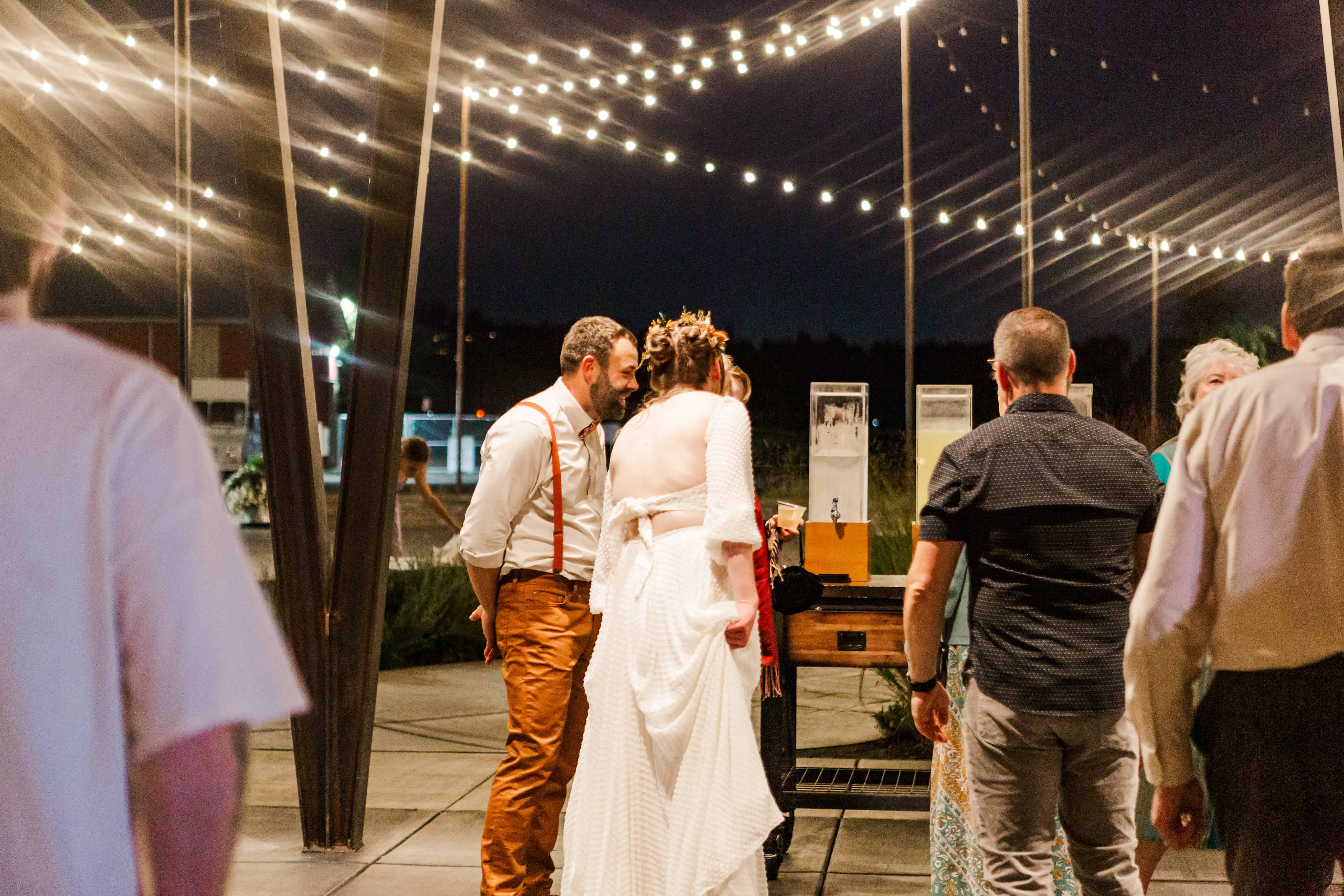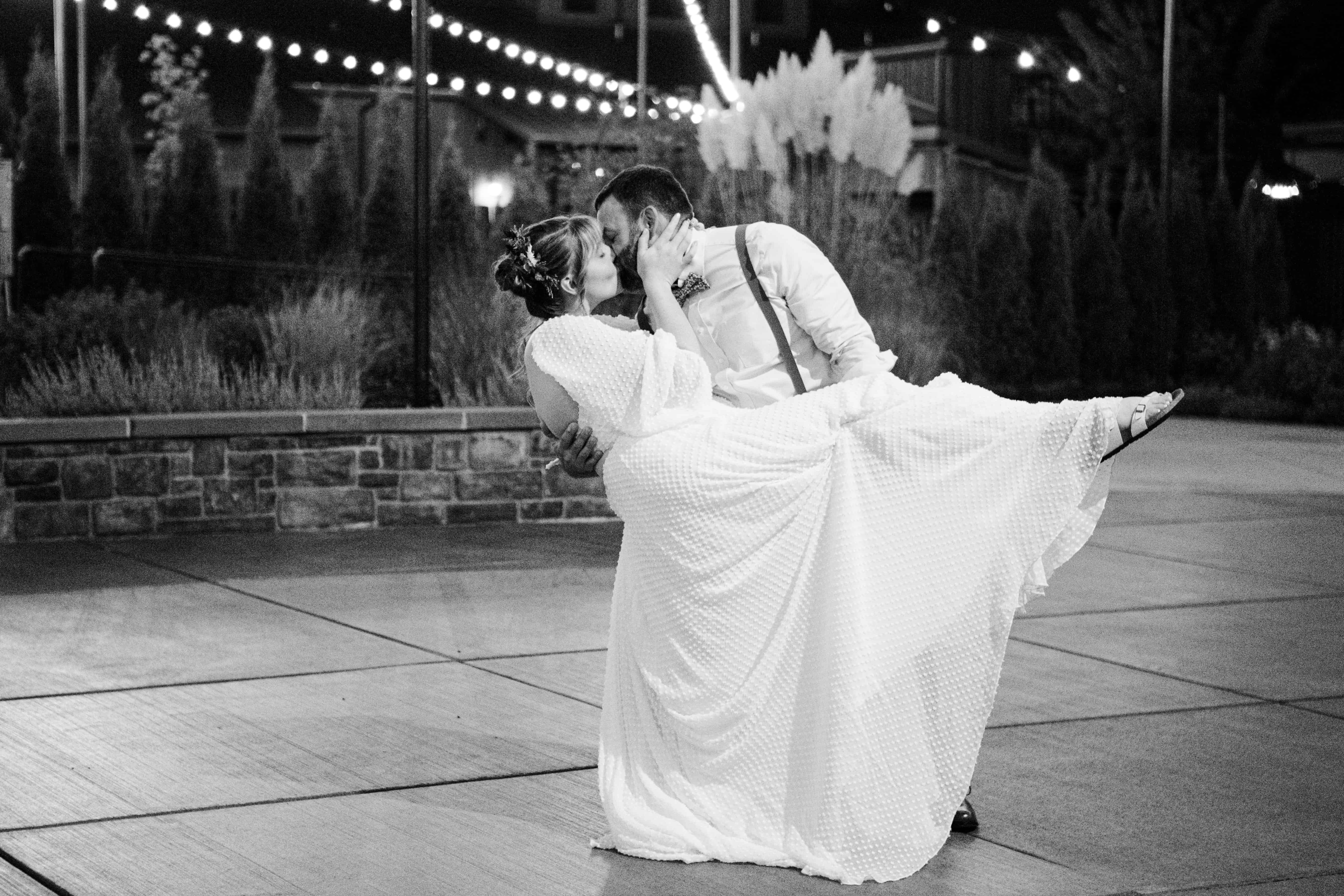 Later in the evening, we took them outside under the venue’s string lights, and let me tell you—it felt like we stepped straight into a Taylor Swift music video. The vibe was dreamy, intimate, and effortlessly cool, just like the two of them. Those photos turned out to be some of our absolute favorites from the day. It’s moments like these that make wedding photography so magical, creating a little bit of cinematic beauty in the middle of real life.