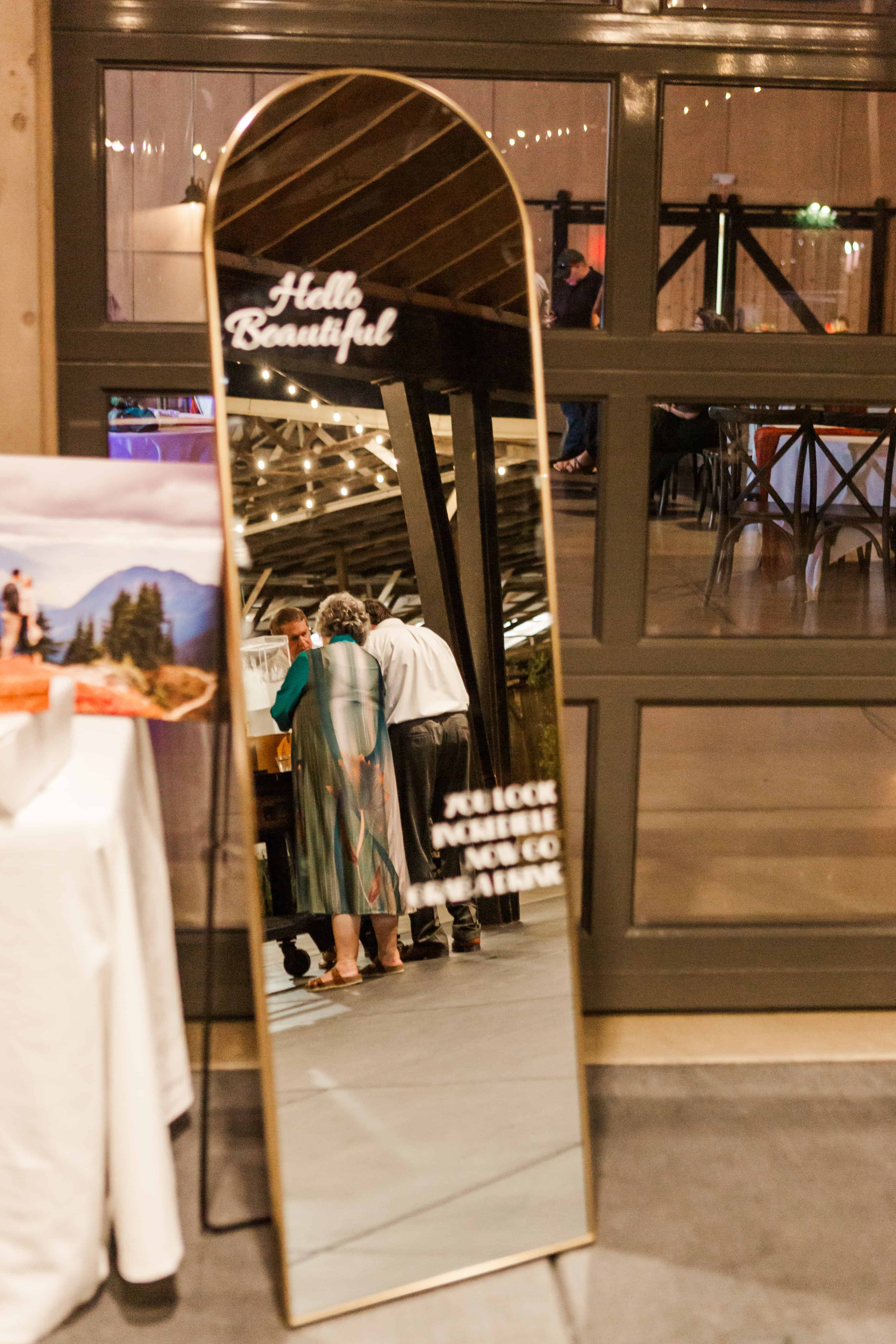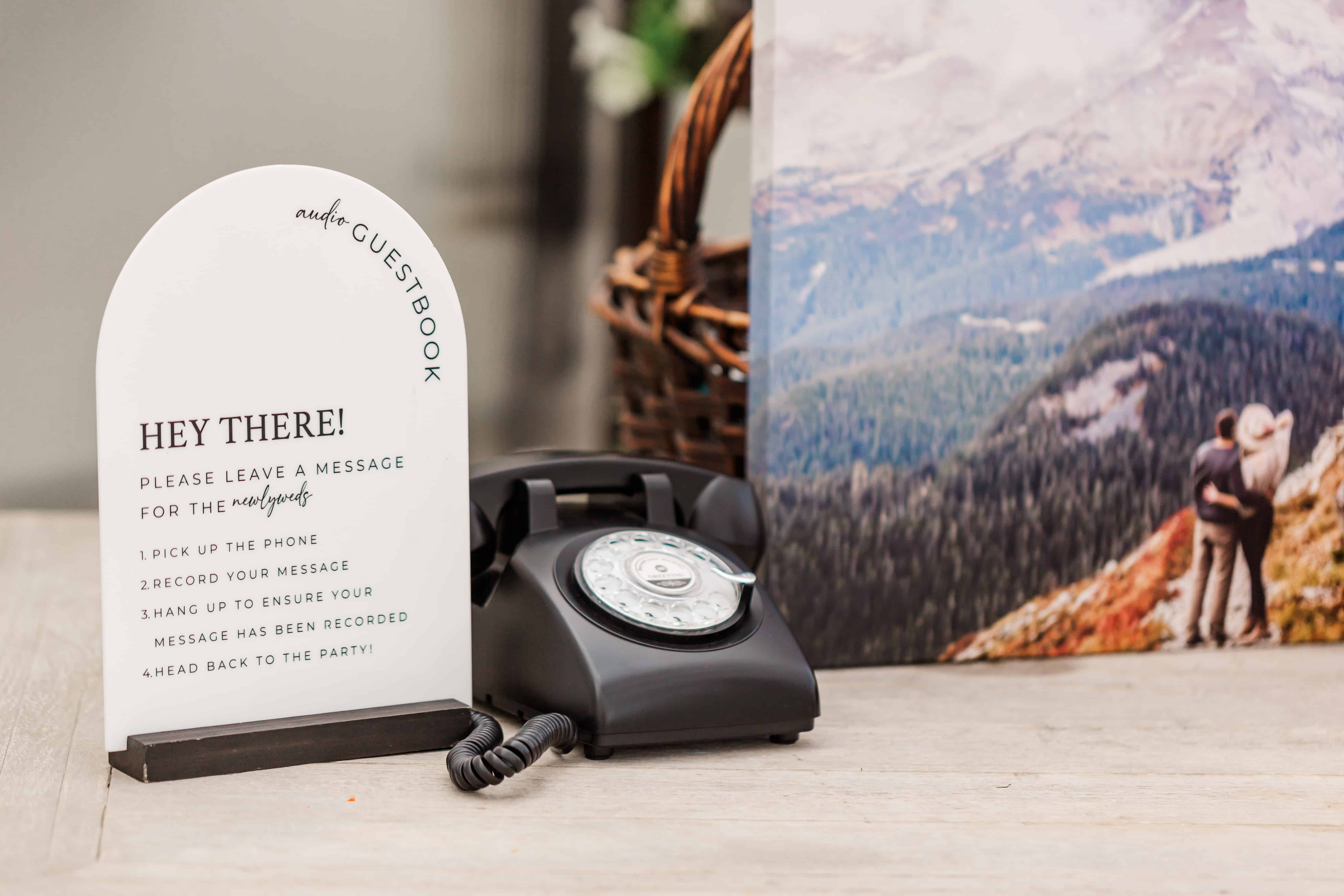 Megan’s creativity didn’t stop with her dress or the florals. She brought in two interactive elements that guests loved: a selfie mirror and a rotary phone guestbook. The selfie mirror was an instant hit, with guests lining up throughout the night to snap photos. The rotary phone guestbook was a vintage touch that was as playful as it was sentimental. Guests left heartfelt (and sometimes hilarious!) messages for the couple, and we can only imagine how much fun Megan and Ben will have listening to them later.