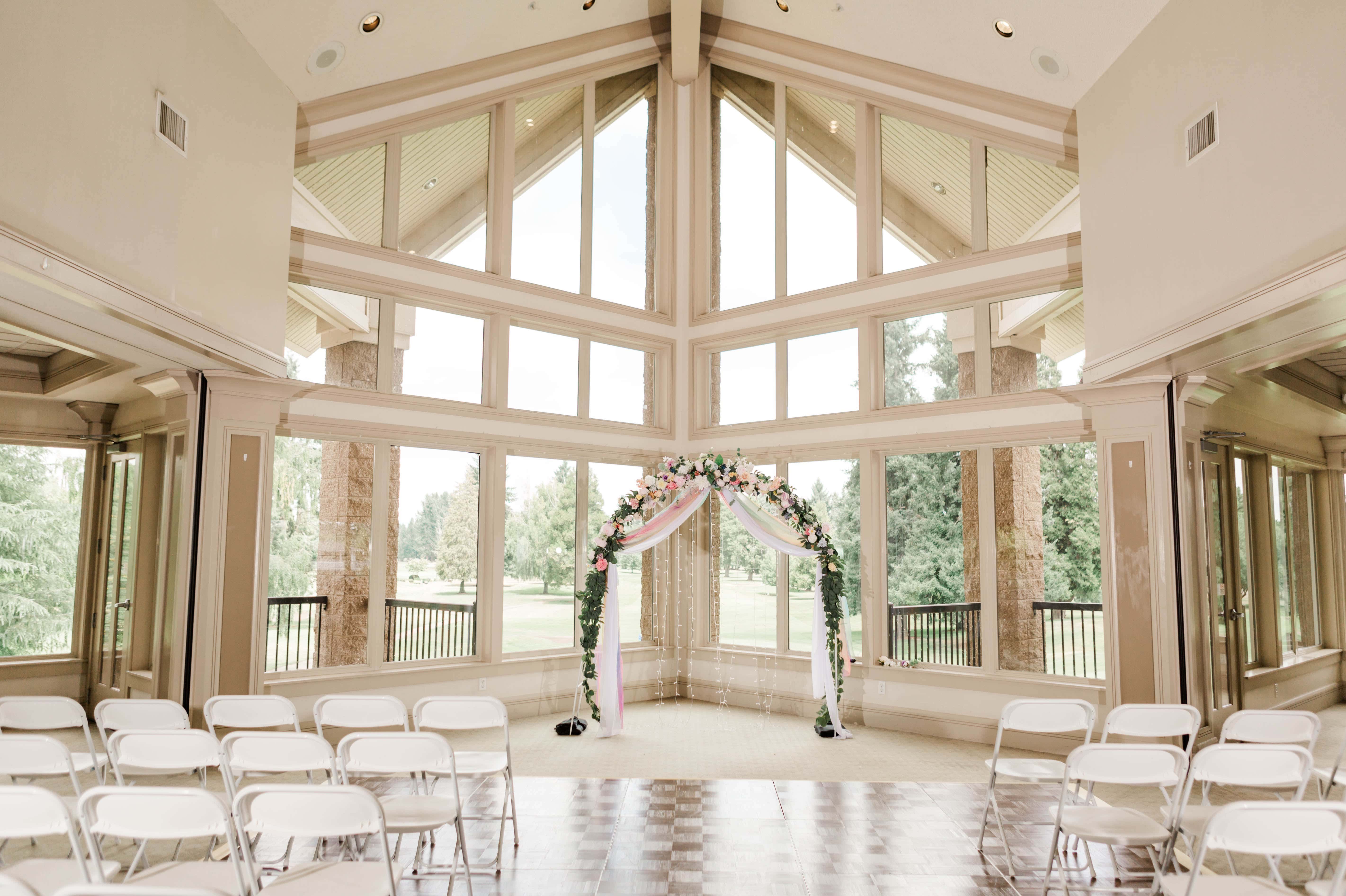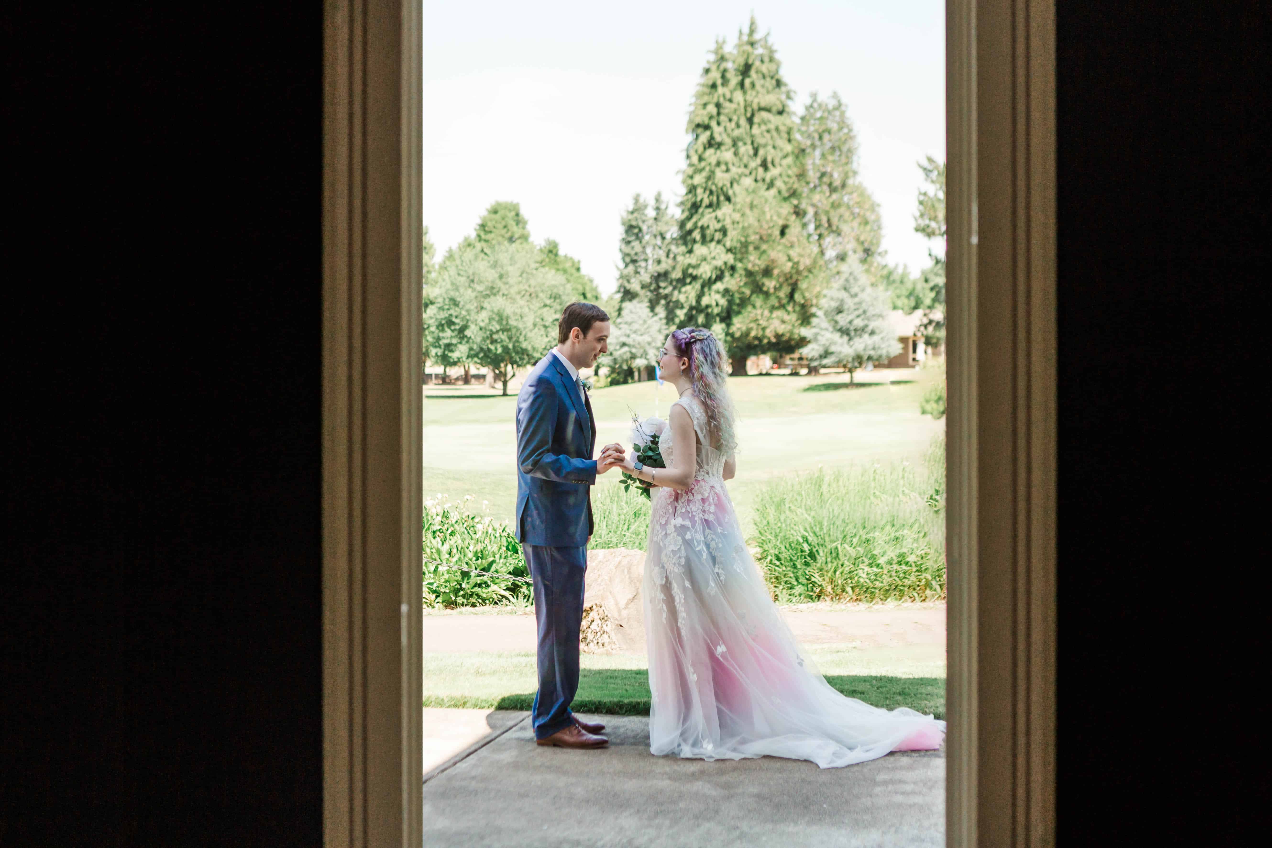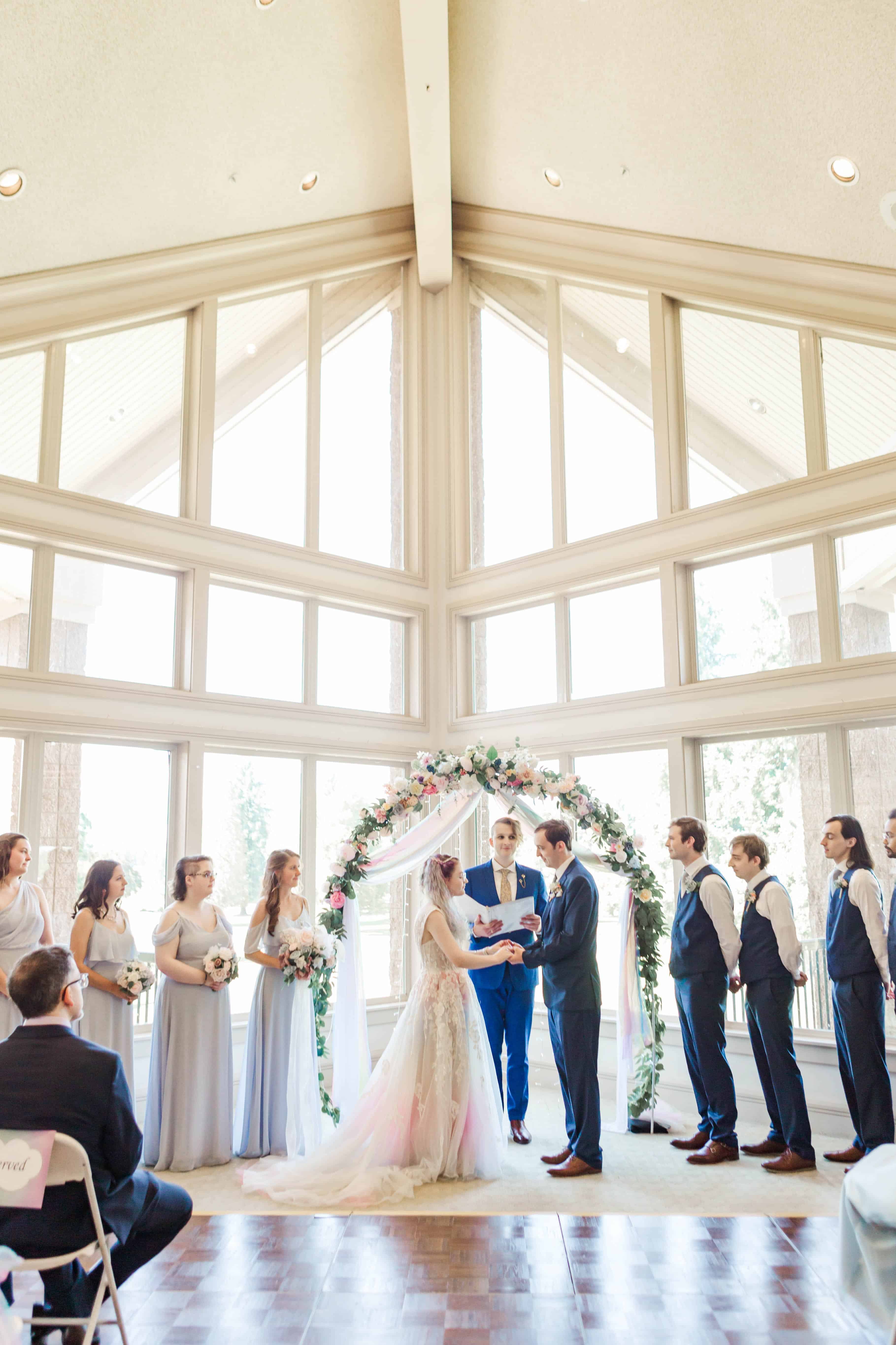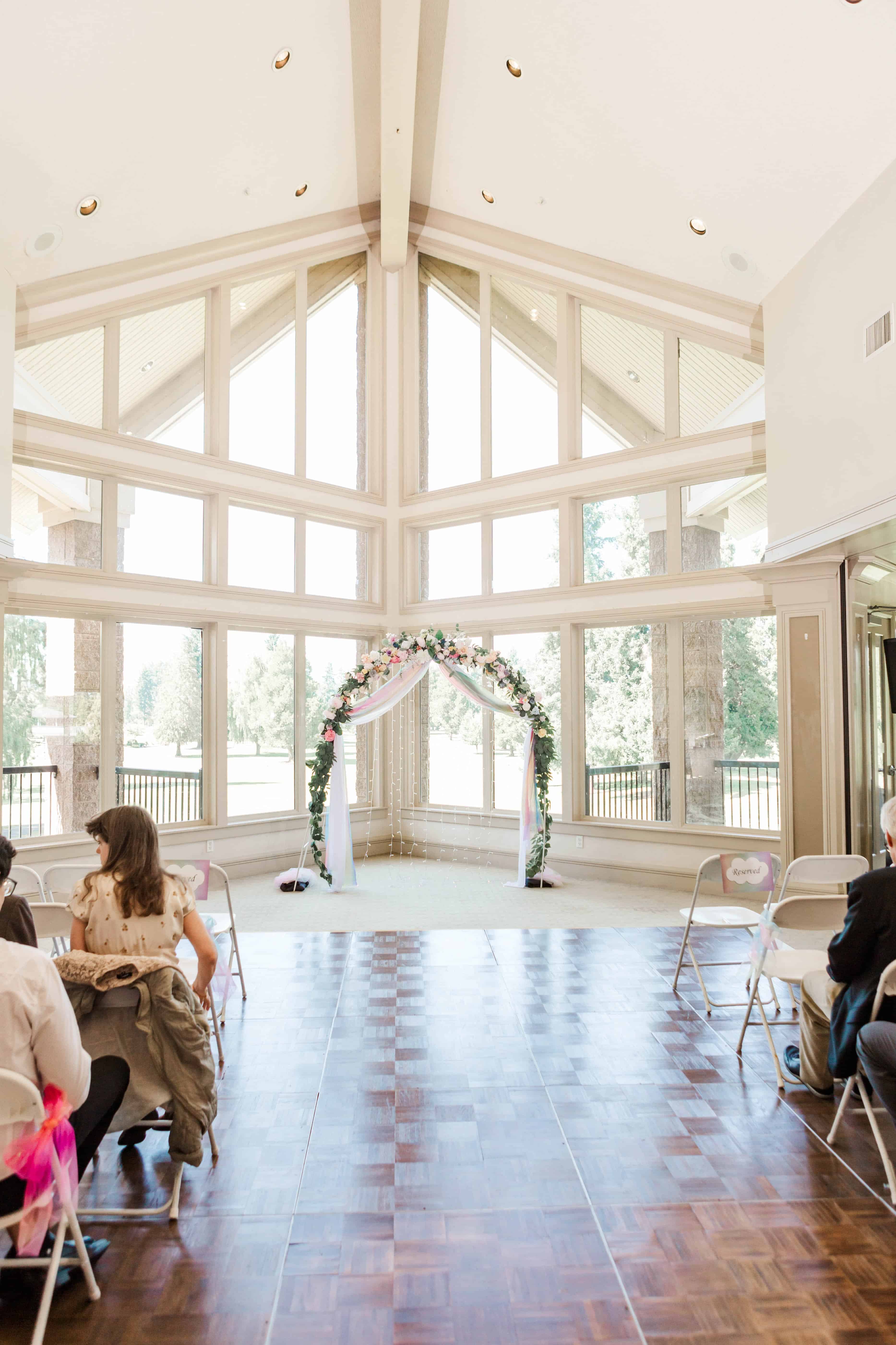 The Albany Golf & Event Center is a beautiful venue with high cathedral ceilings and plenty of room to space out. This was ideal for their private first look, in which they exchanged vows that reflected their almost full year of marriage. They did an incredible job of embracing the journey that brought them to the present moment and their resilience will take their marriage to great heights.