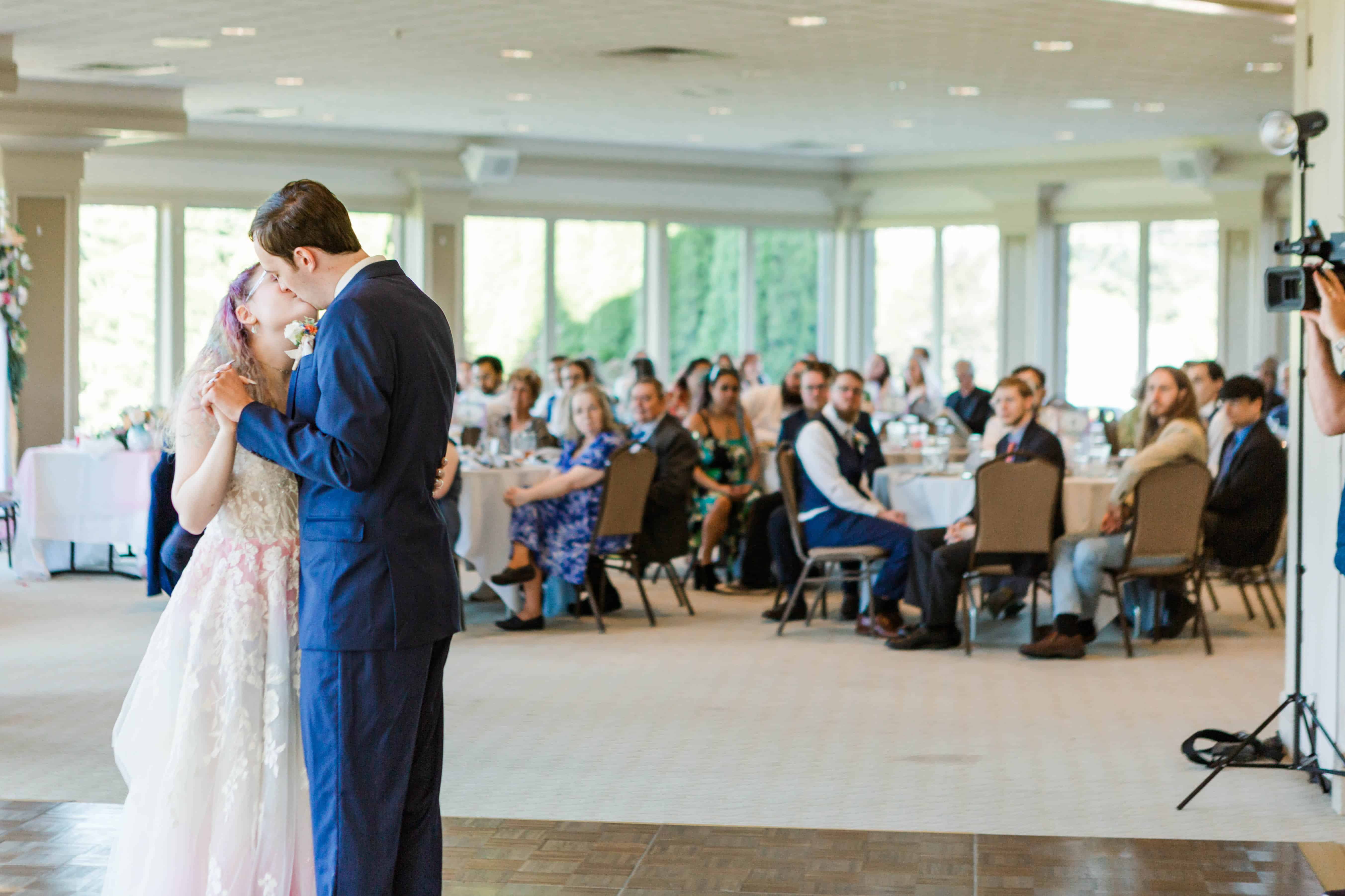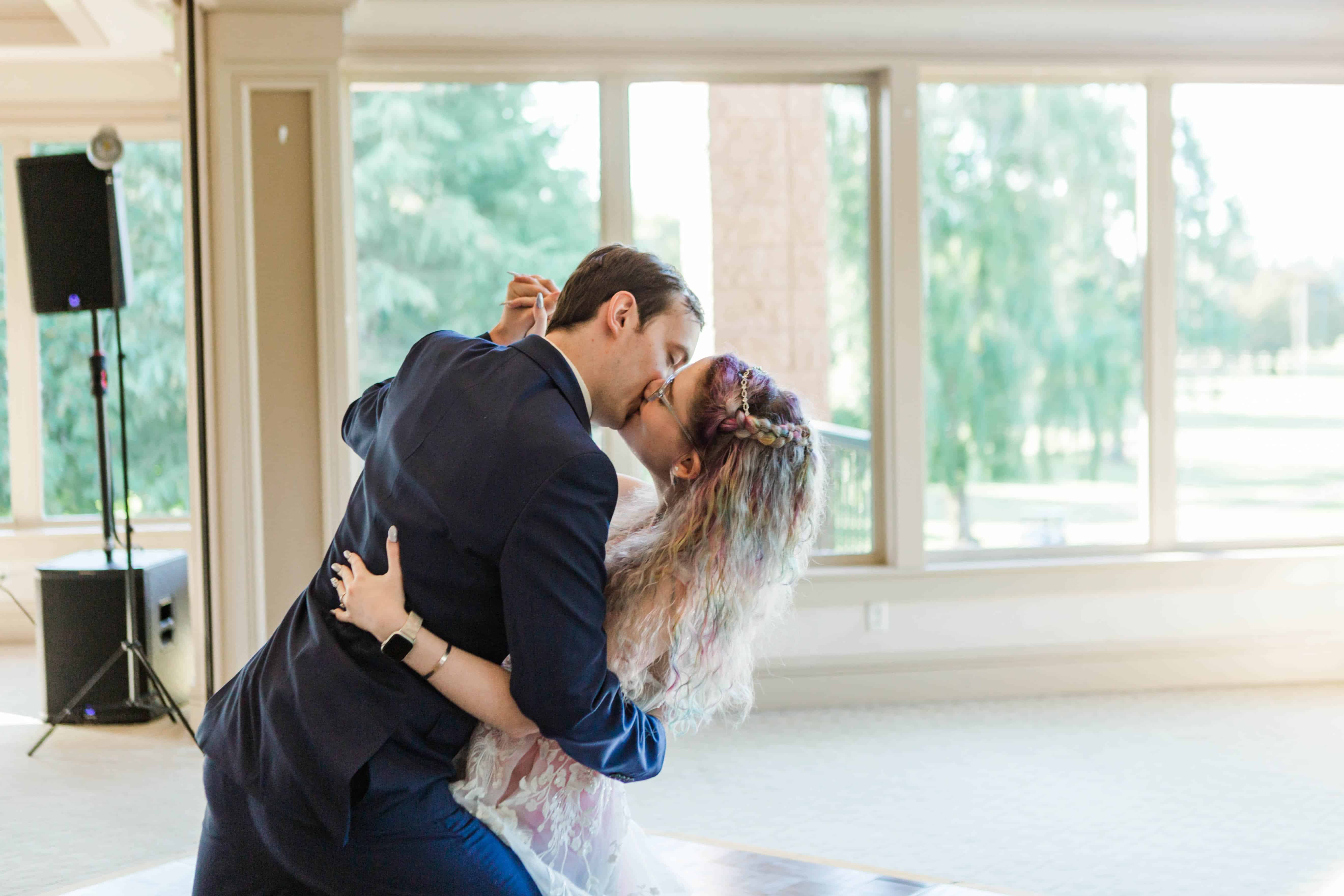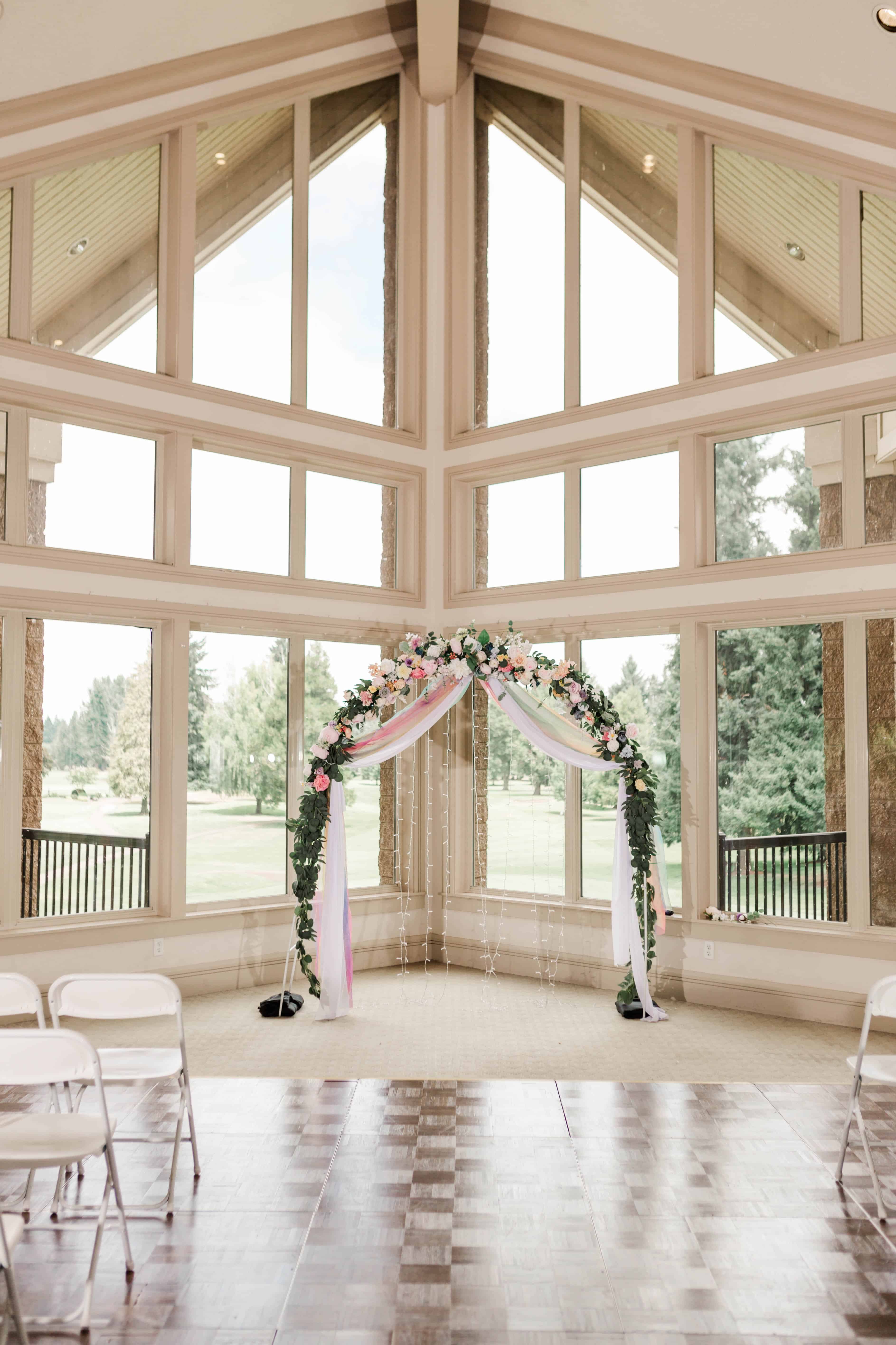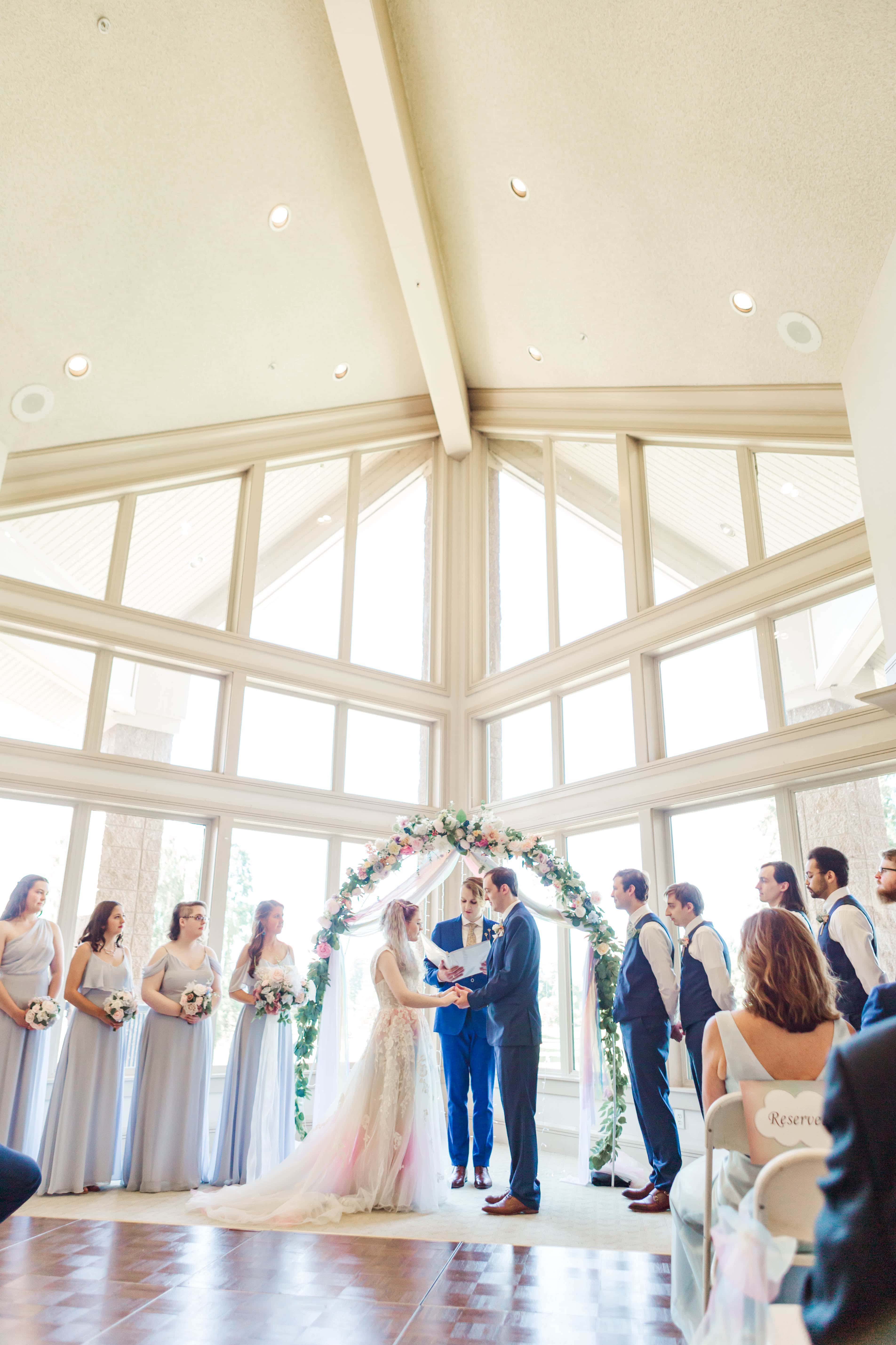 The Albany Golf & Event Center is a beautiful venue with high cathedral ceilings and plenty of room to space out. This was ideal for their private first look, in which they exchanged vows that reflected their almost full year of marriage. They did an incredible job of embracing the journey that brought them to the present moment and their resilience will take their marriage to great heights.