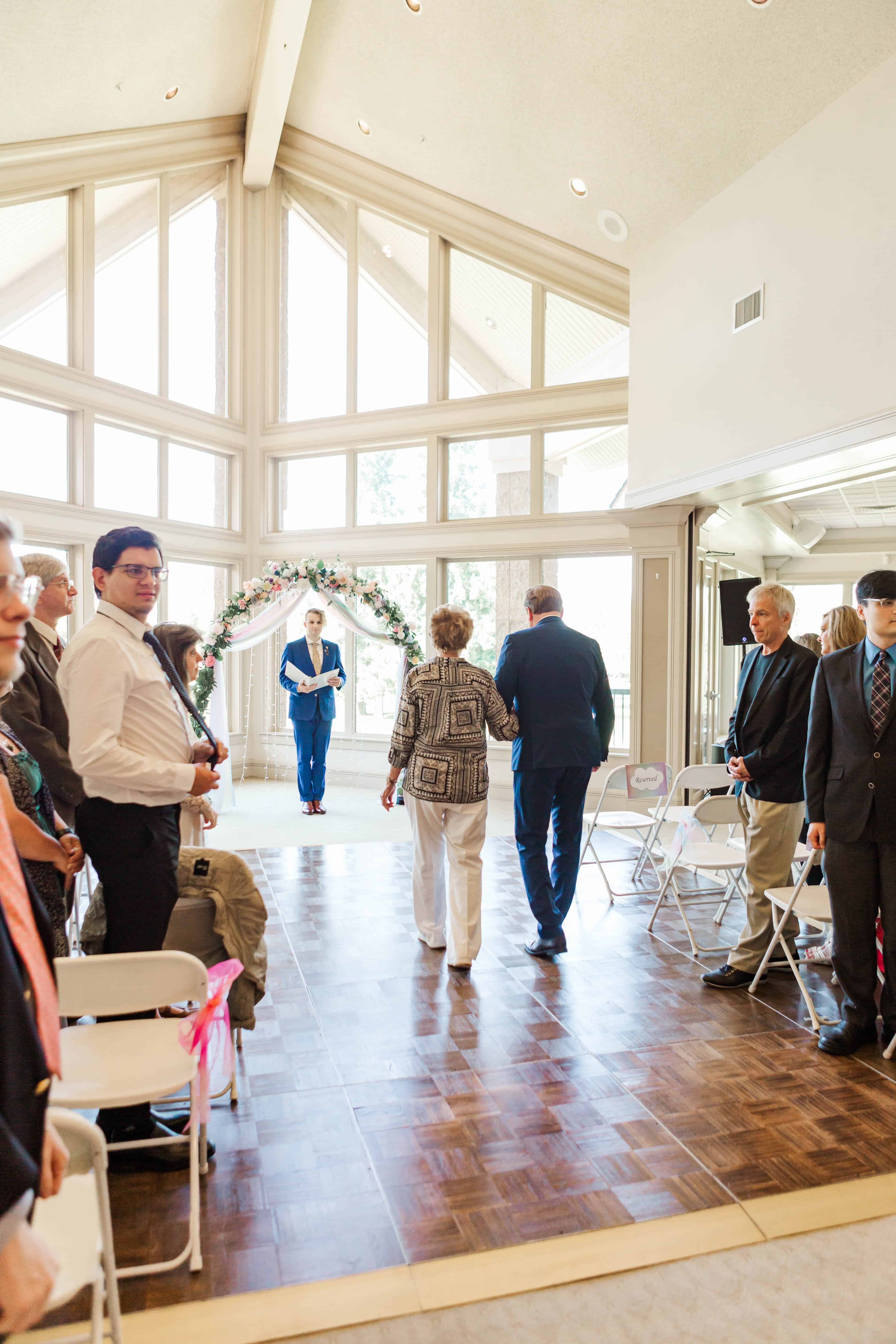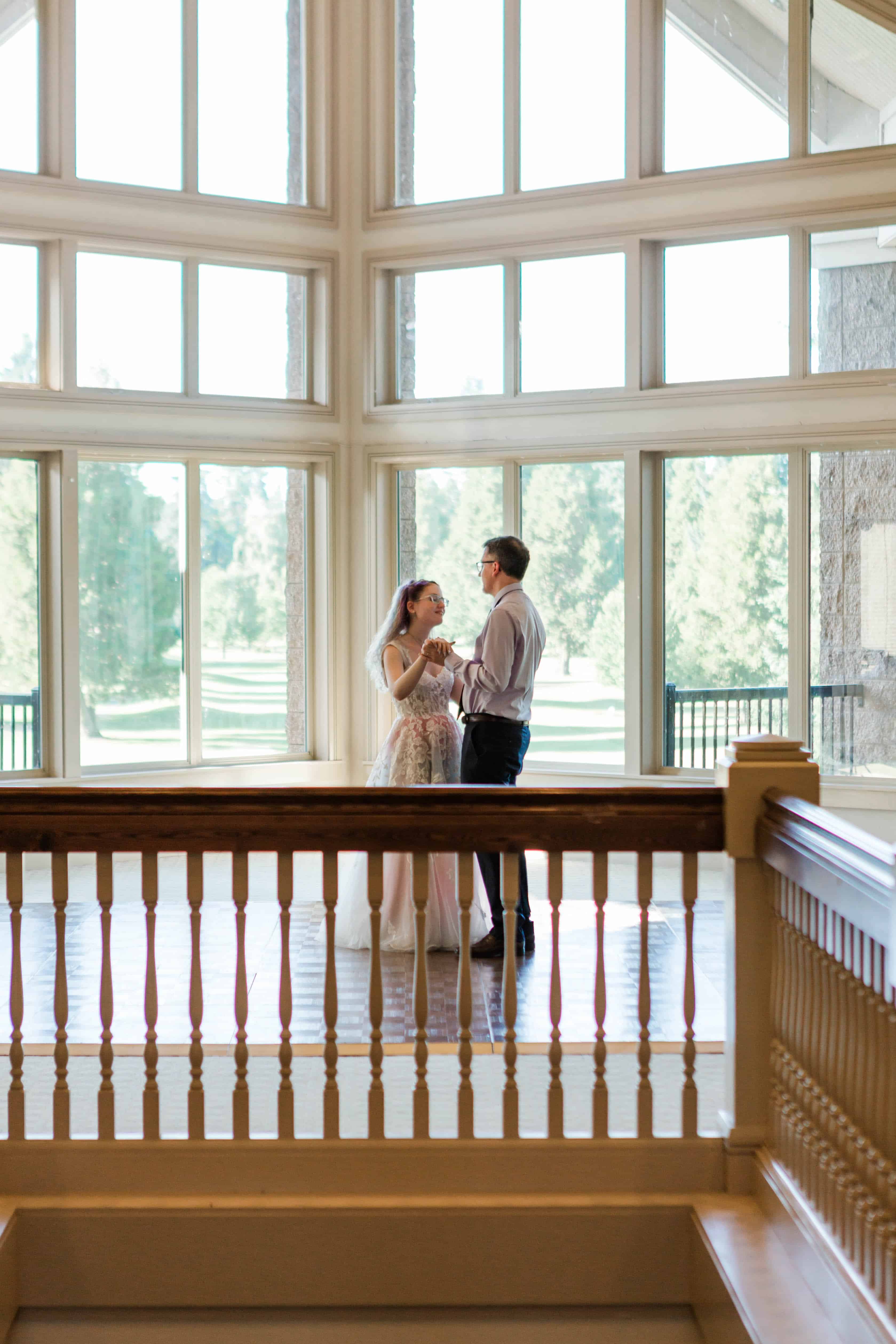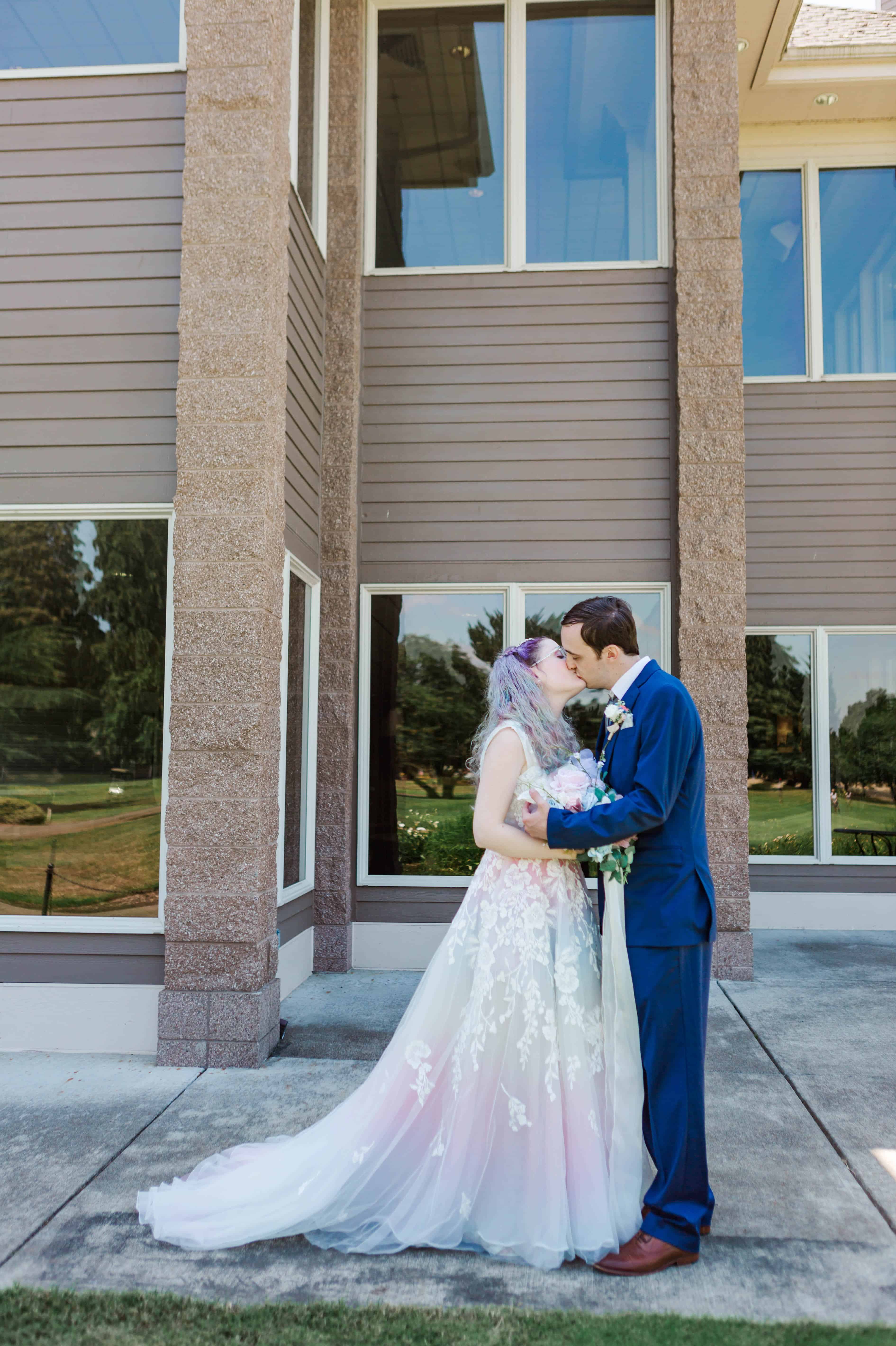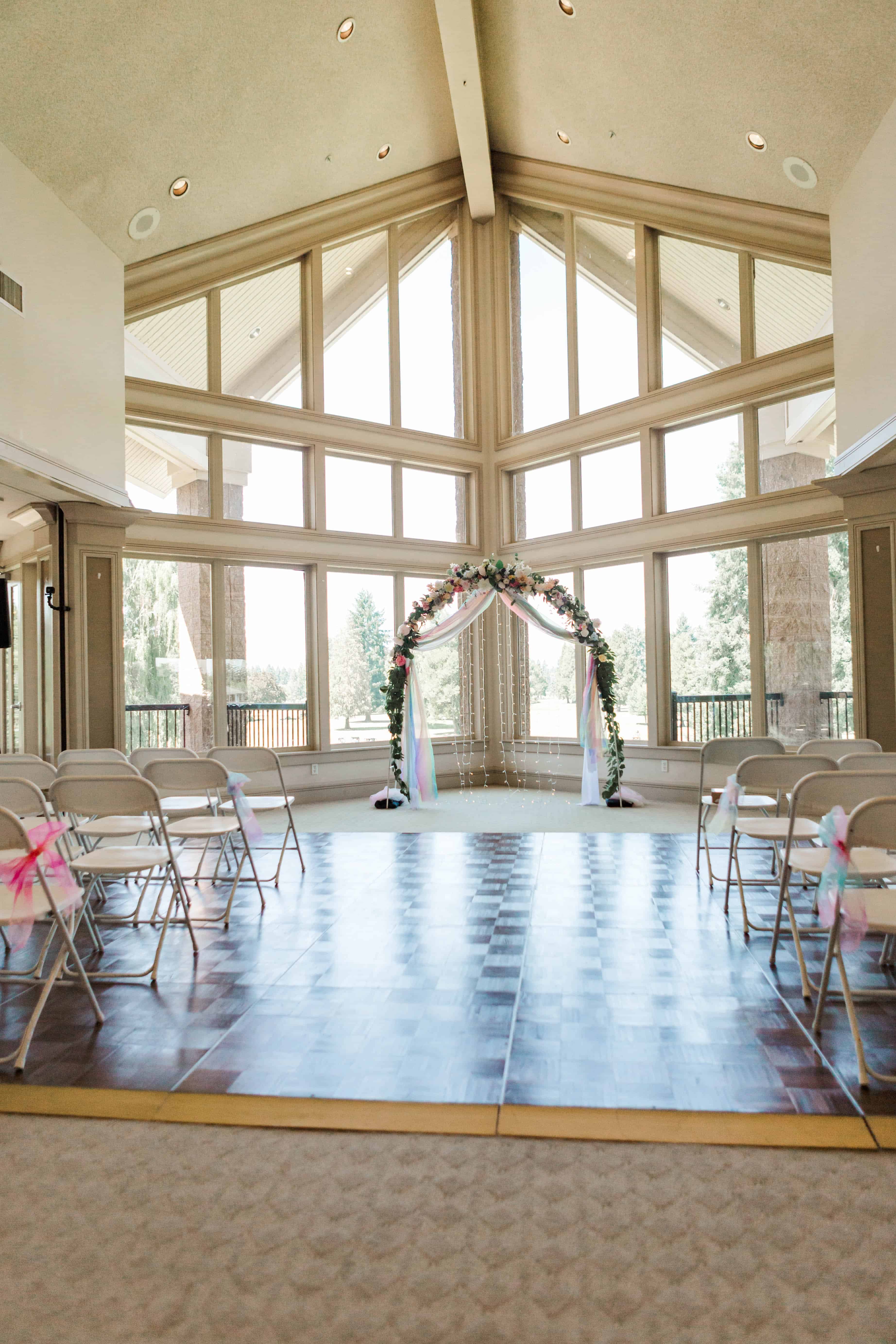 The Albany Golf & Event Center is a beautiful venue with high cathedral ceilings and plenty of room to space out. This was ideal for their private first look, in which they exchanged vows that reflected their almost full year of marriage. They did an incredible job of embracing the journey that brought them to the present moment and their resilience will take their marriage to great heights.