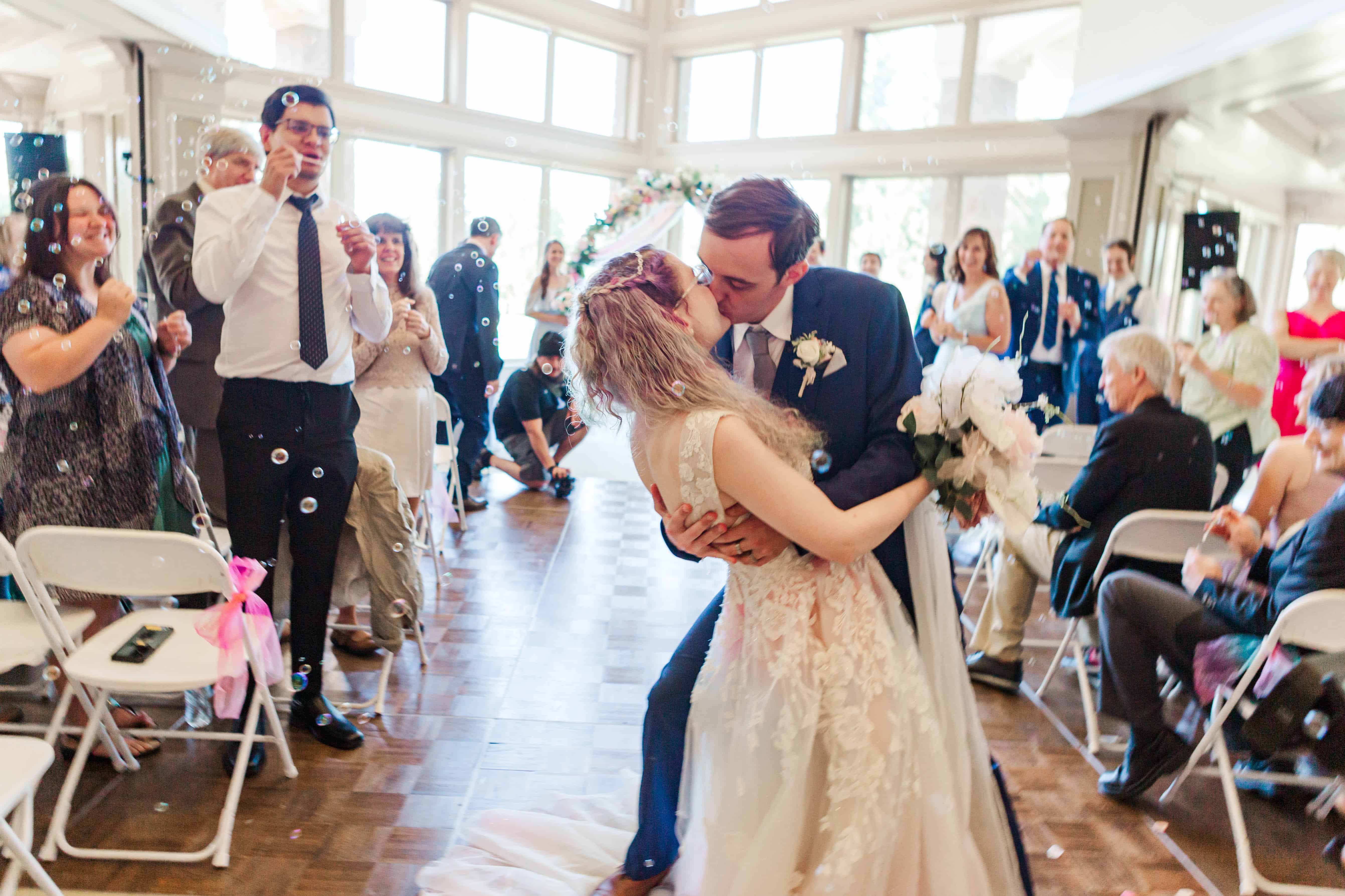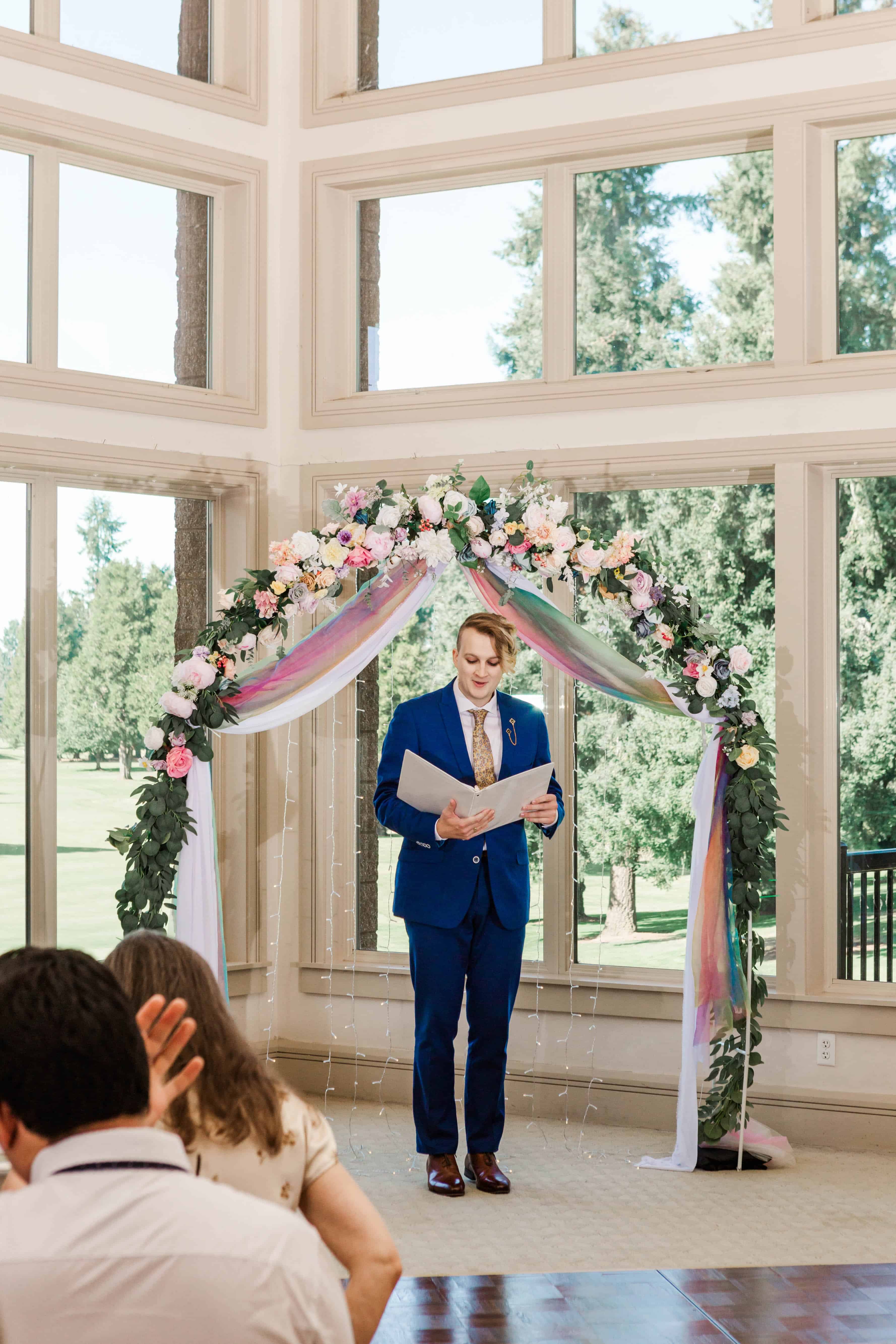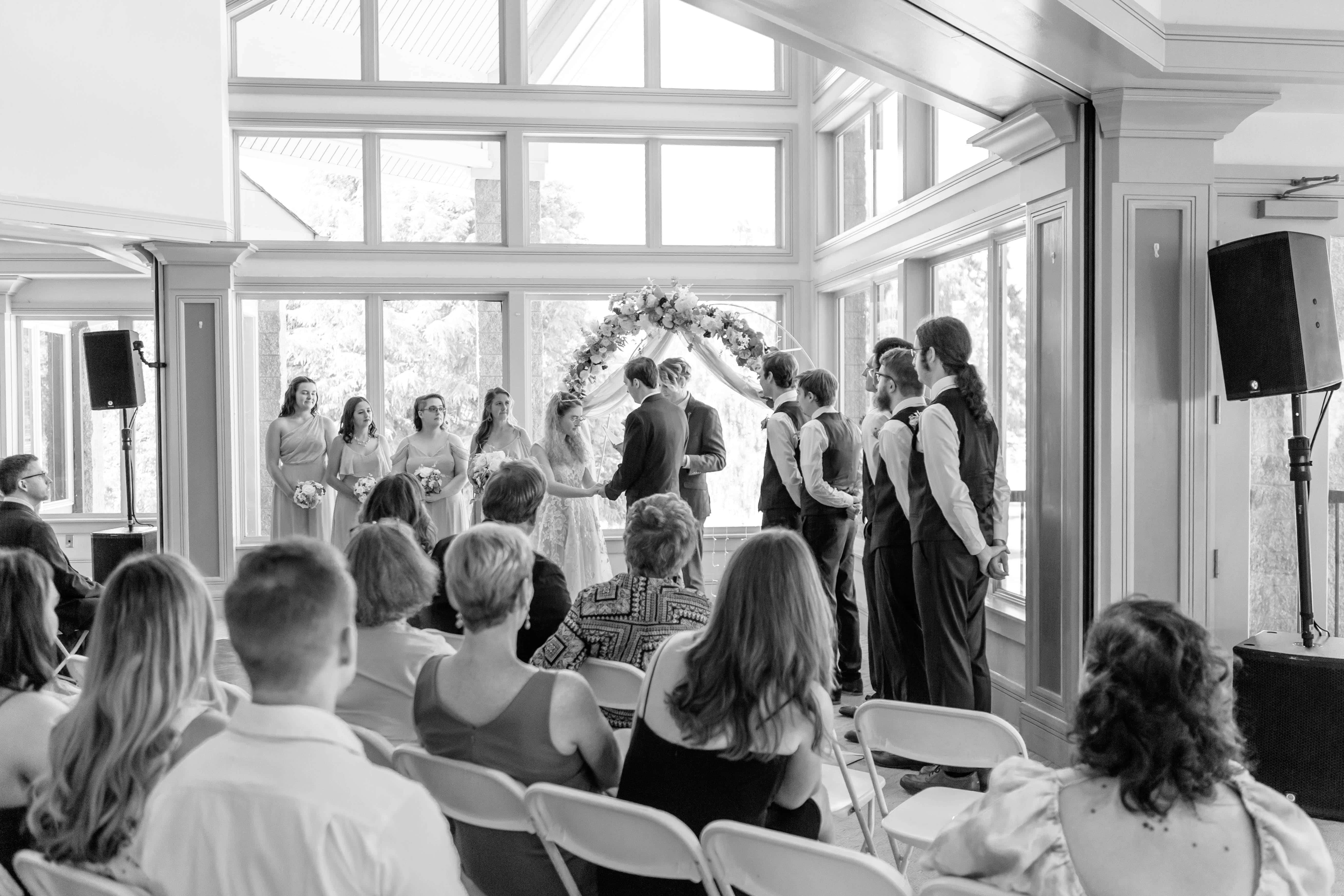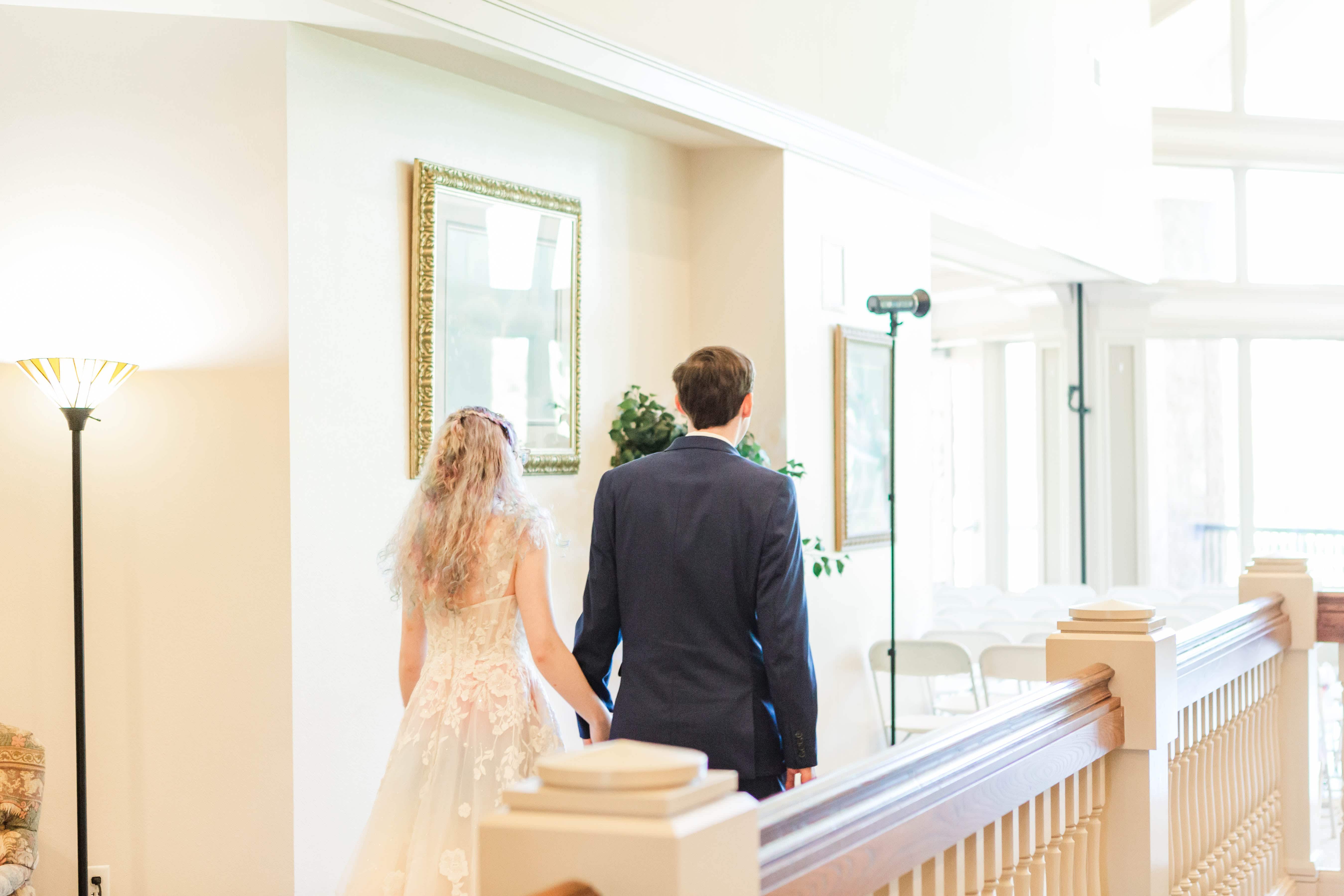 The Albany Golf & Event Center is a beautiful venue with high cathedral ceilings and plenty of room to space out. This was ideal for their private first look, in which they exchanged vows that reflected their almost full year of marriage. They did an incredible job of embracing the journey that brought them to the present moment and their resilience will take their marriage to great heights.