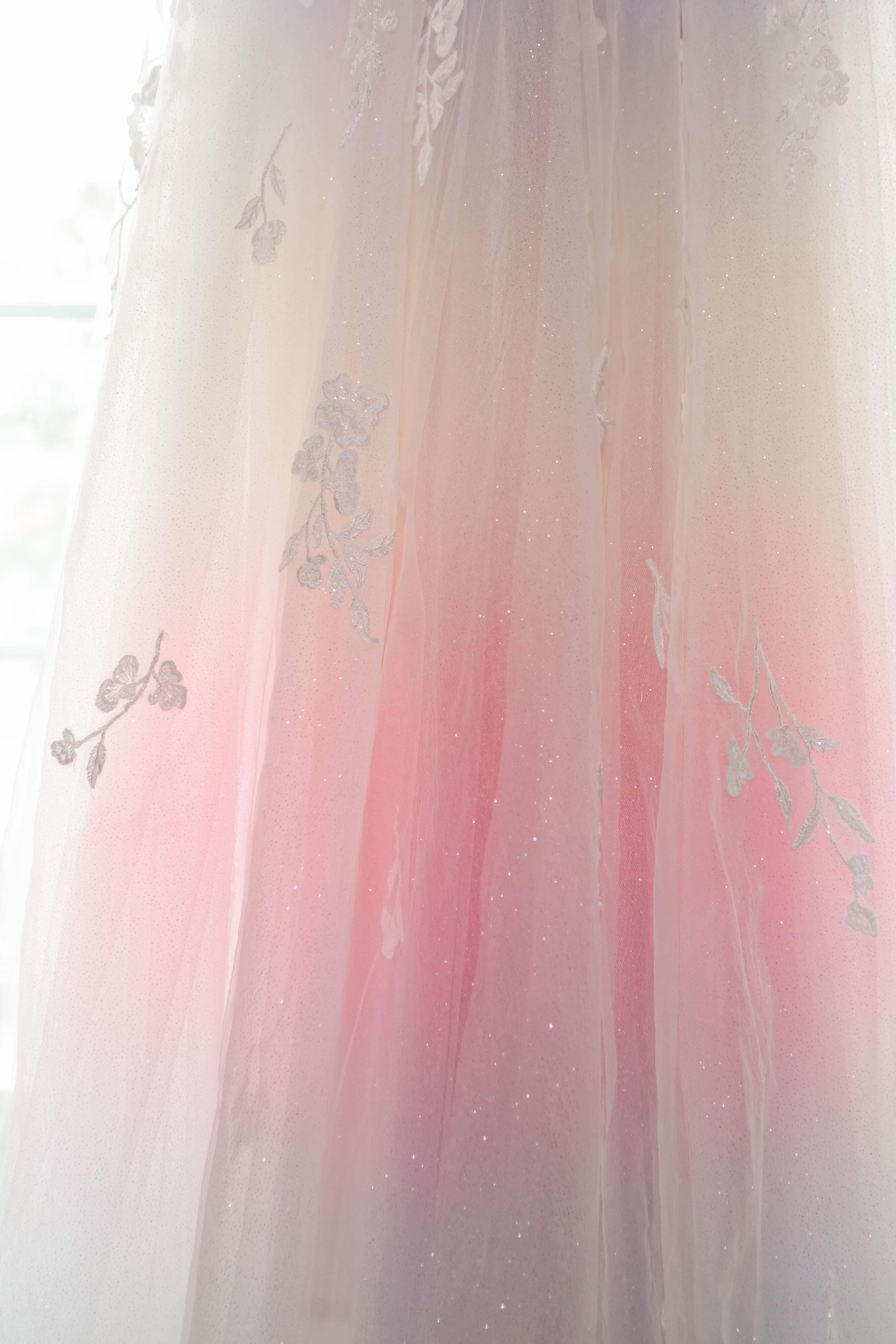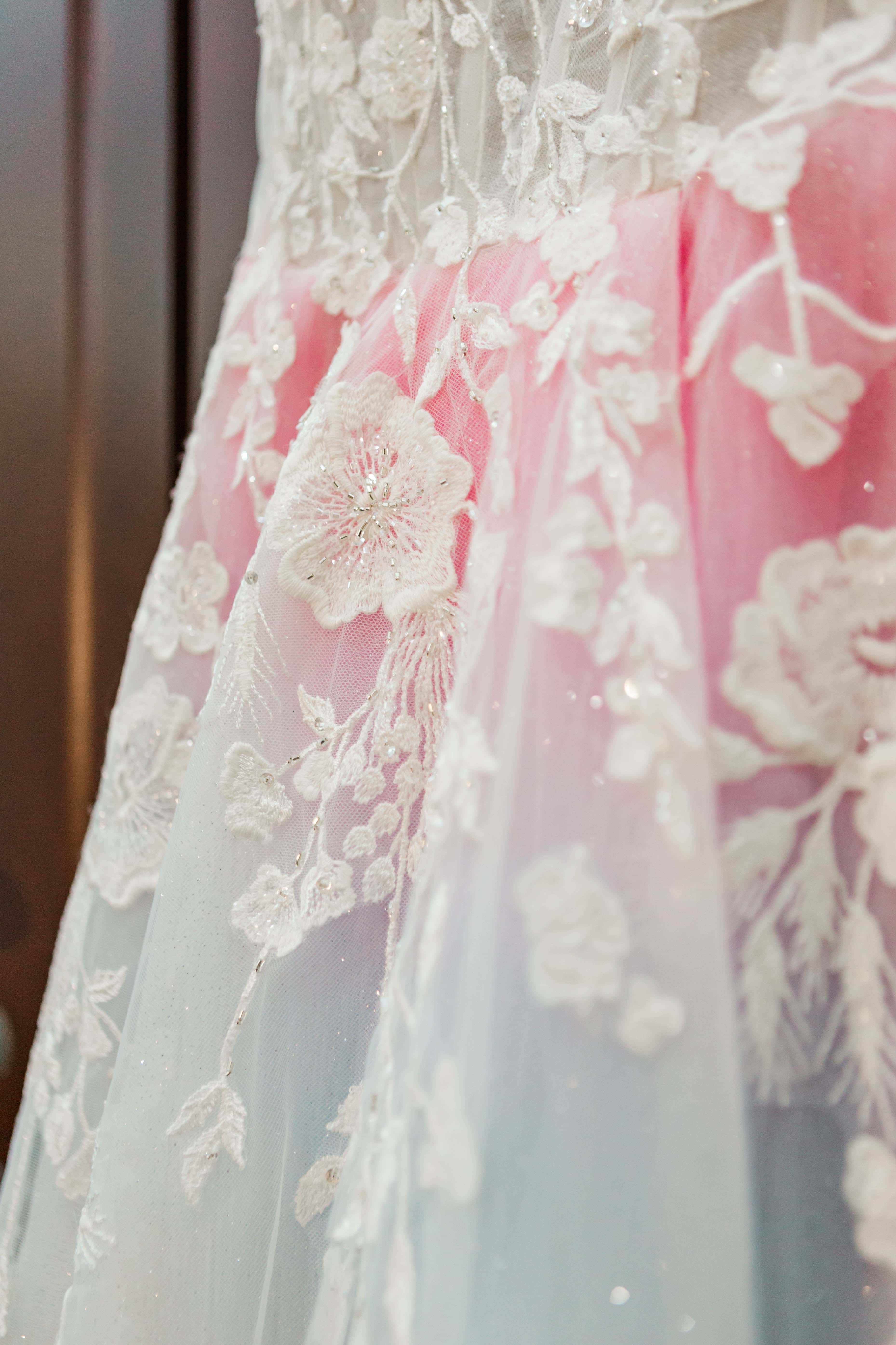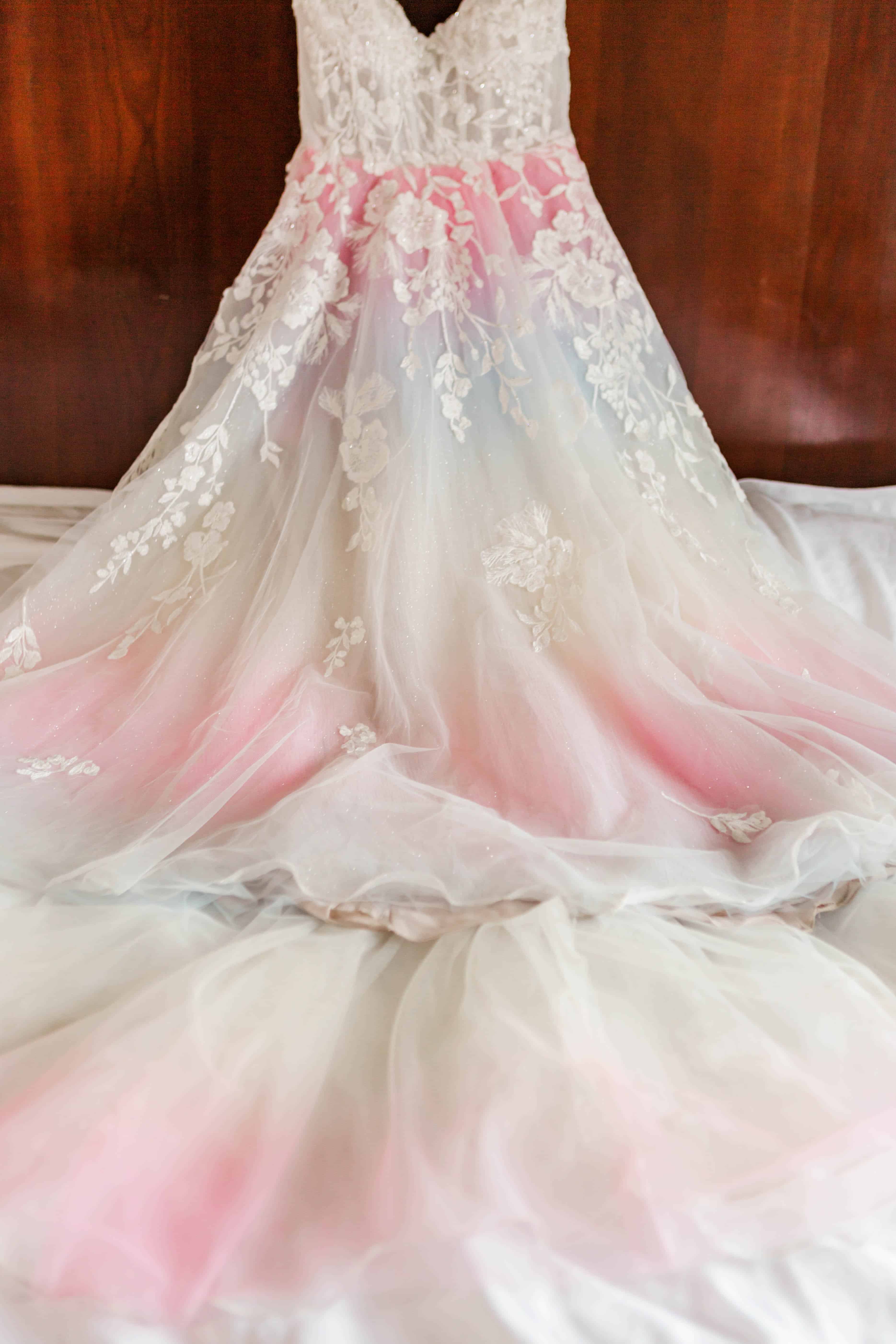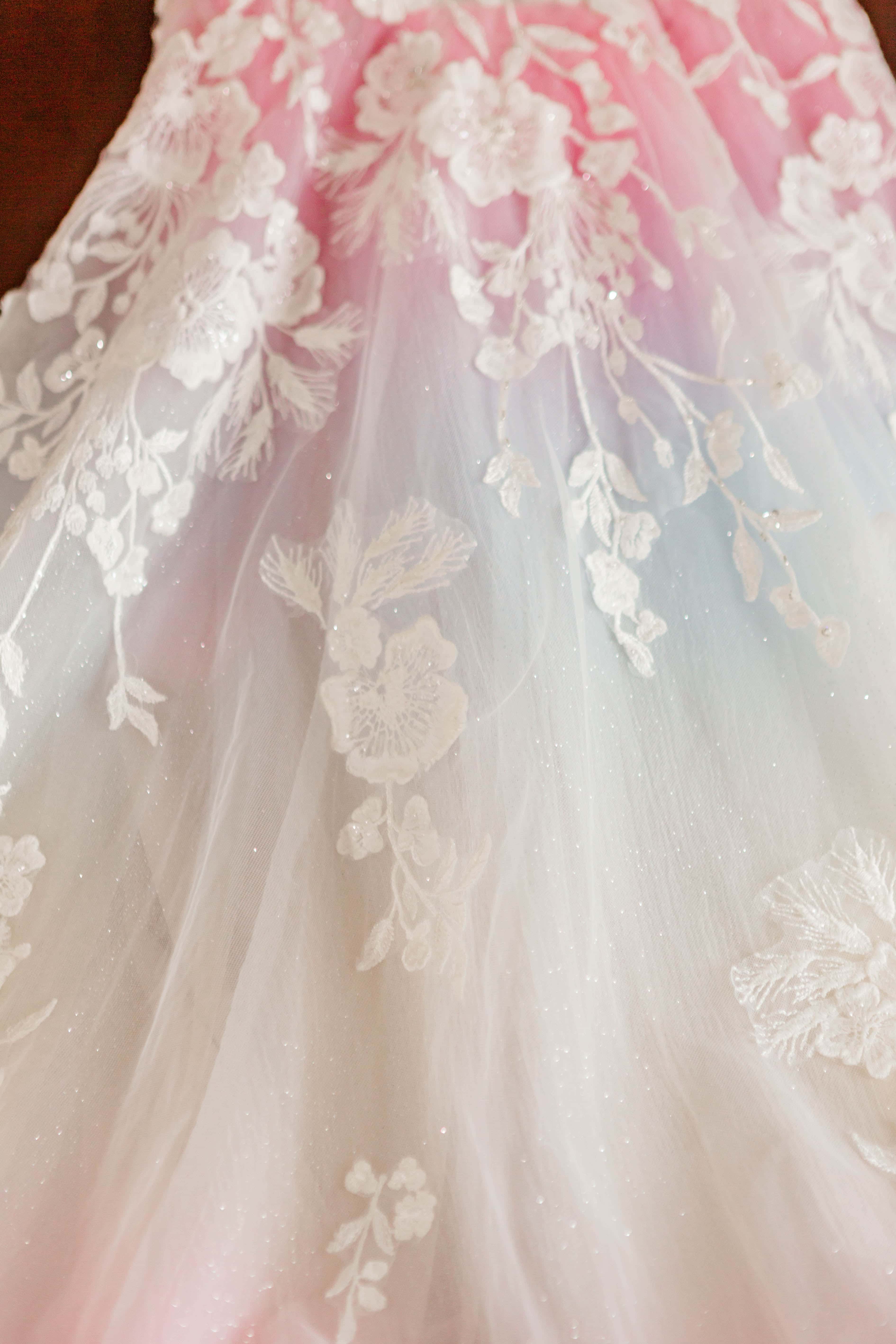 Looking back, it’s impossible to have predicted the steps we took to get to their final wedding day, but after their sudden postponement turned into a micro wedding, we counted down the days to M+J’s big day. One may think that photographing the same details for multiple weddings would be a bore, however this wedding was anything but boring! You see, it features one of my career favorite dresses: the subtle rainbow wedding gown.
