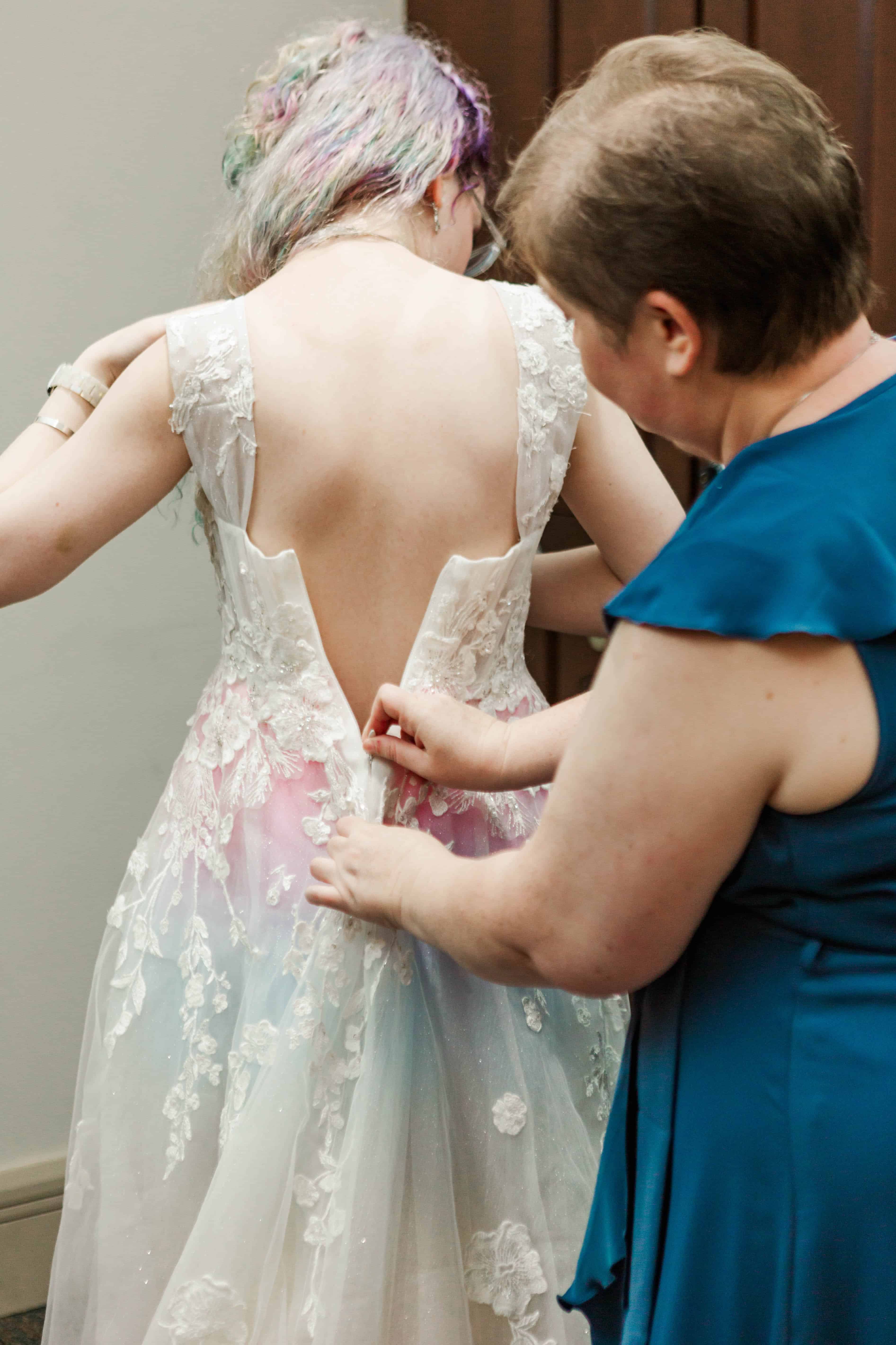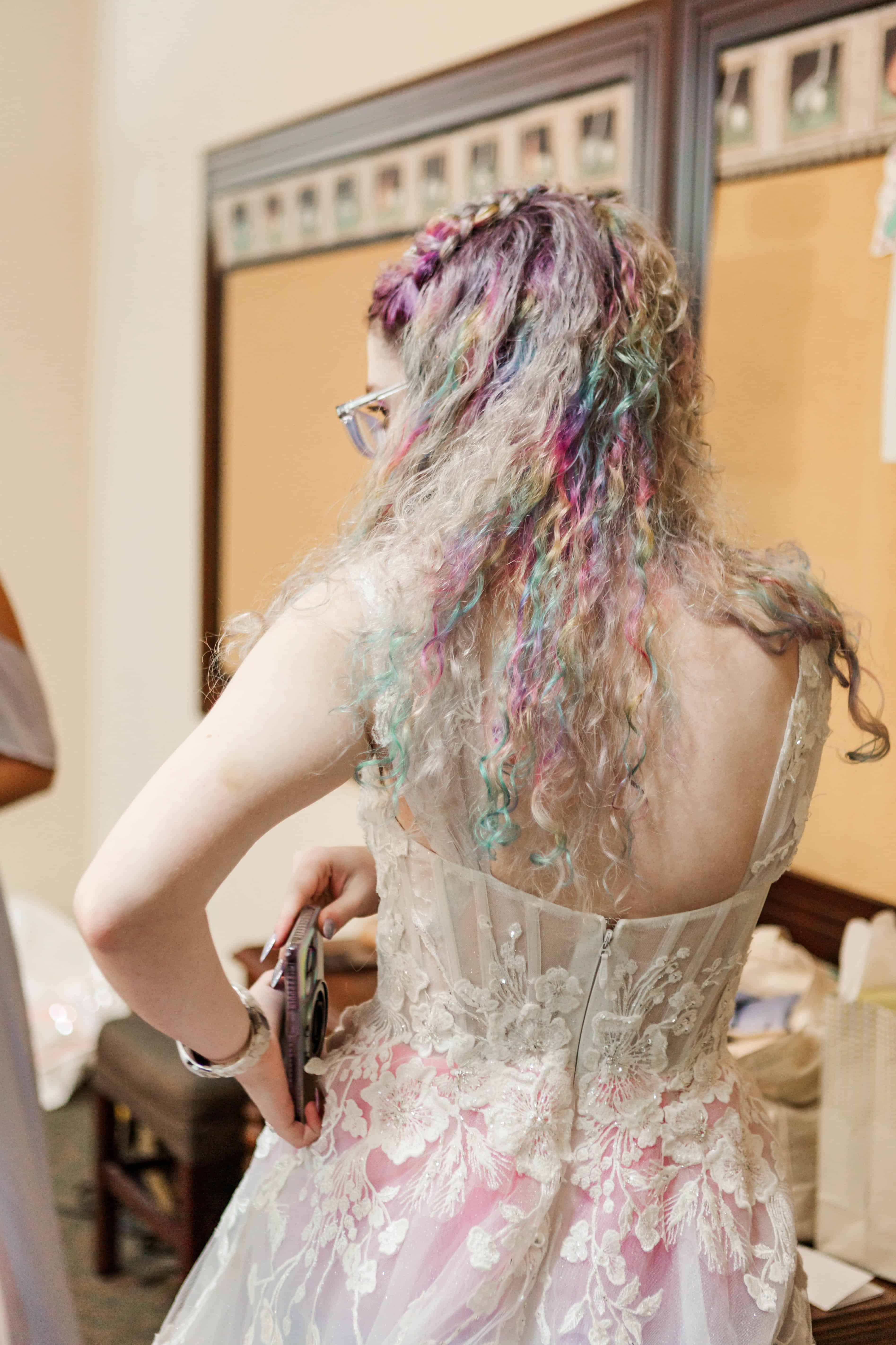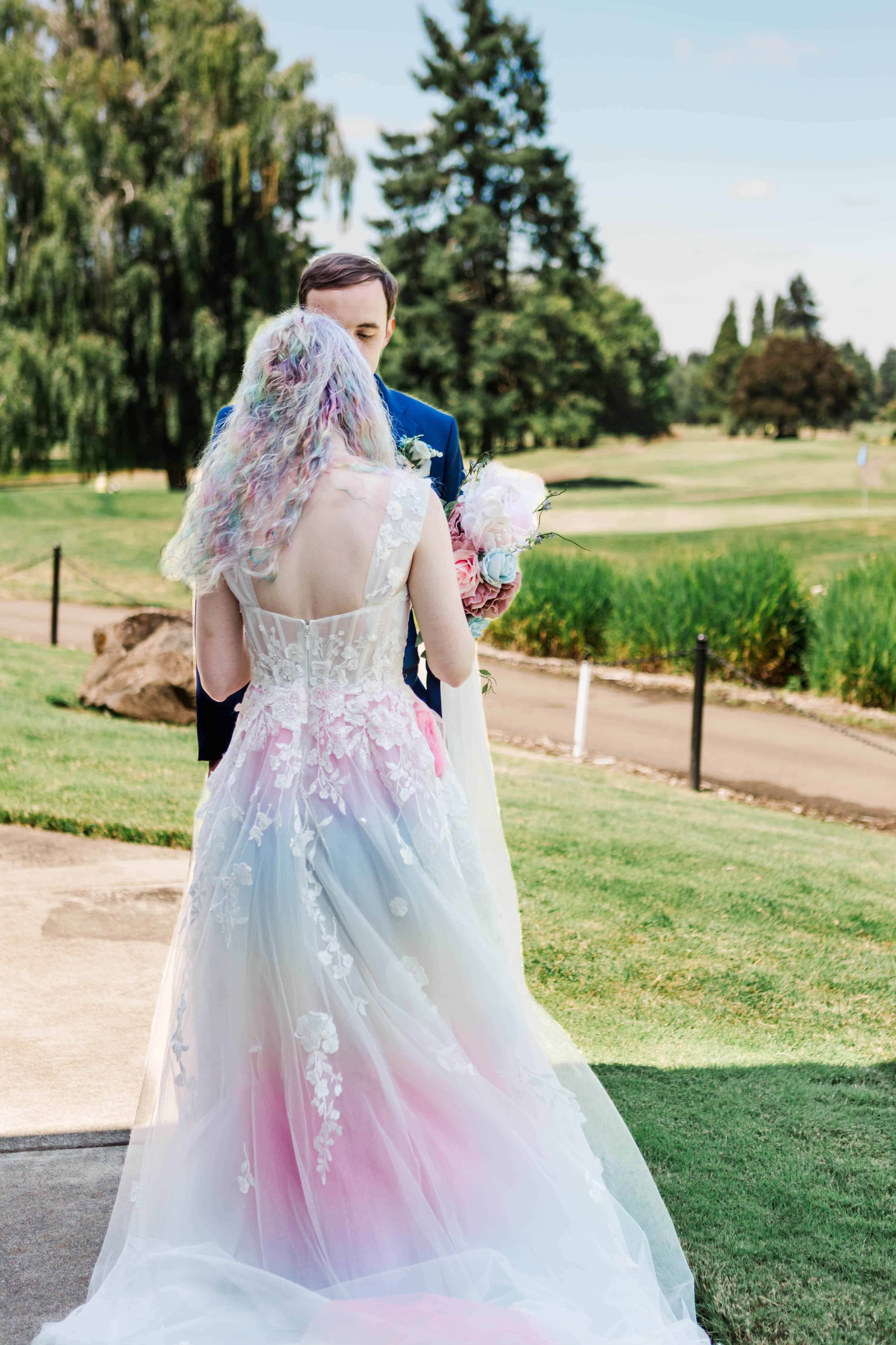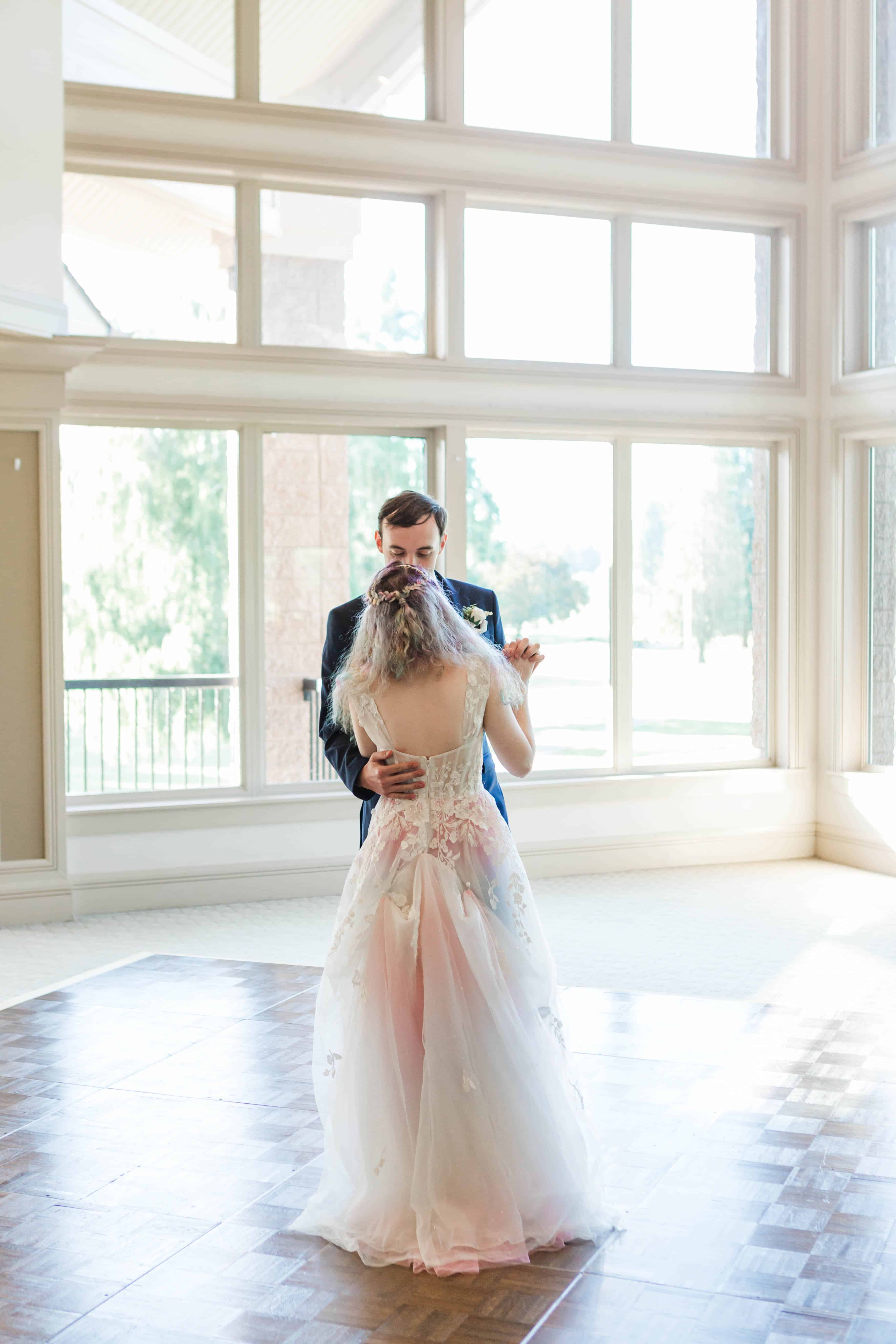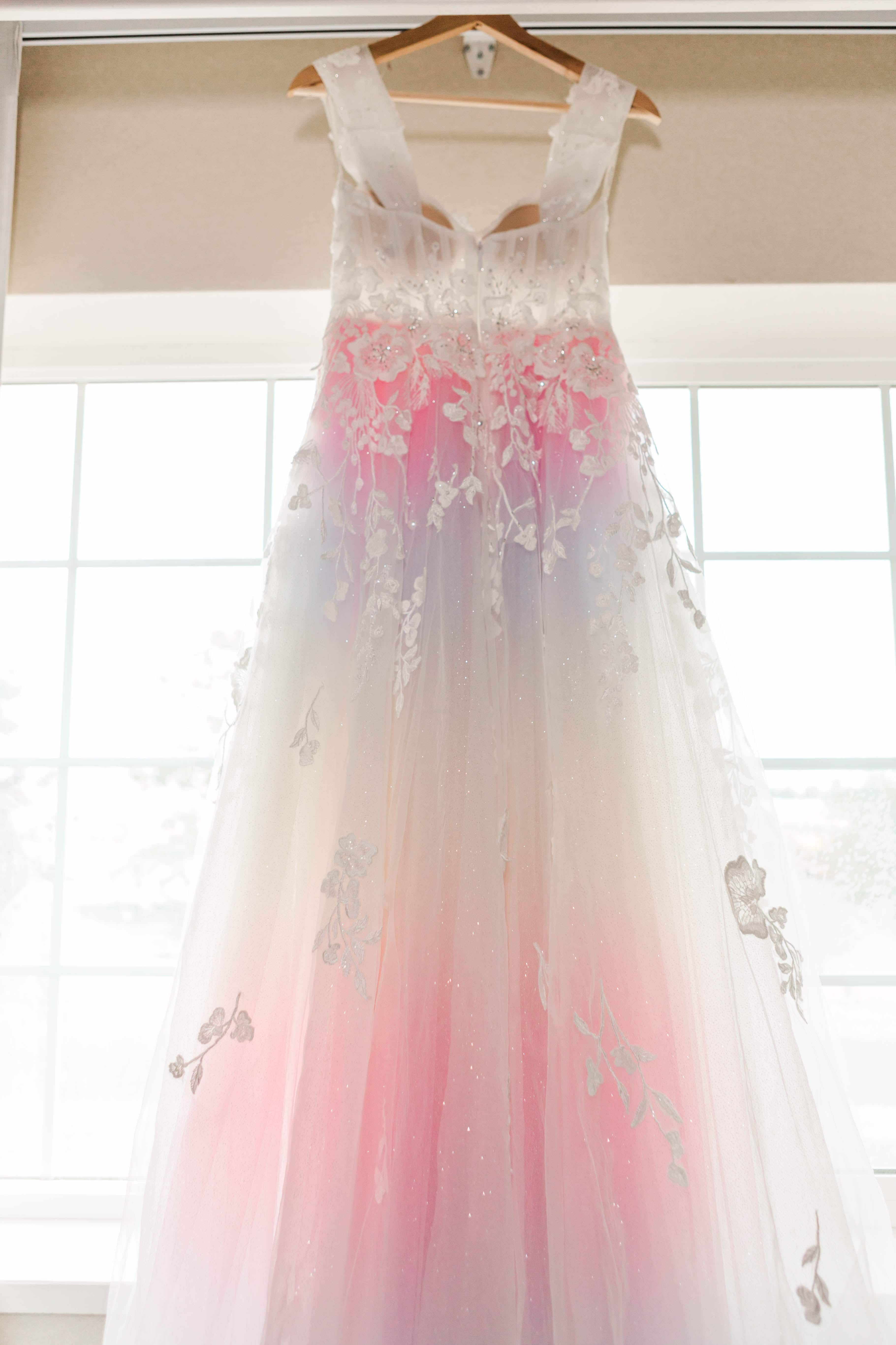 I can easily say unique dresses make my heart sing, and they also hold such a special place for those who create them. This dress in particular, started out as an “off the rack” gown from David’s Bridal. While it may seem bougie, it wasn’t enough for M to have a white gown and she requested some color from her mom. Her mom, Lynette gladly obliged, brainstormed and ordered beautiful rainbow tulle to add to M’s dress. She then carefully and lovingly stitched the rainbow tulle under the outer layers of the original dress to create this one of a kind wedding gown. In all honesty, I feel like that love in itself made the story of wearing it twice absolutely perfect.