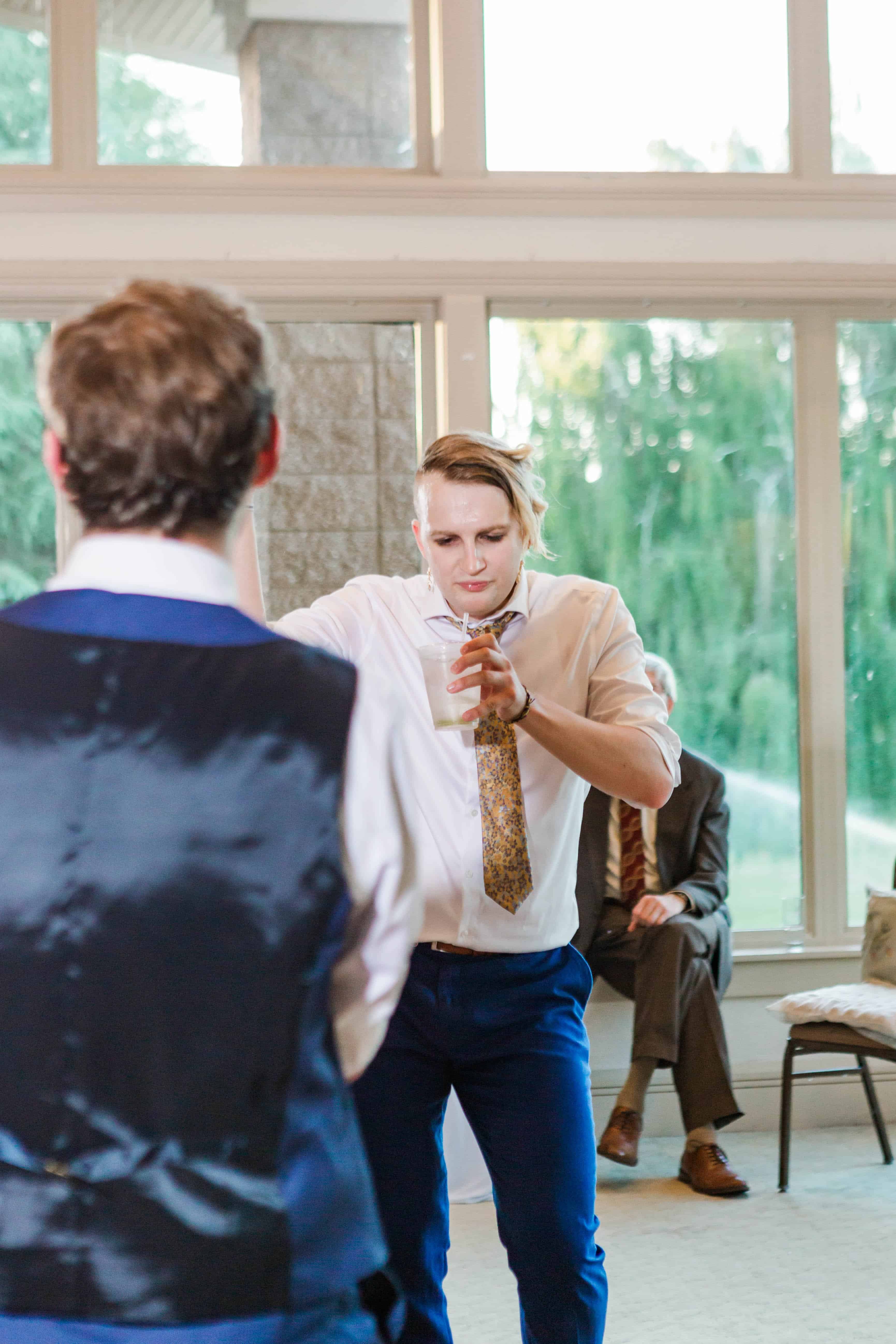 Then it was time for the real party to begin with a flourish that couldn’t have been better. M & her cousin shared a story about how they would hang out and make up choreography to their favorite songs whenever the families would gather together. Even though they were a few years apart, even if the other cousin’s didn’t participate, these two always made the best memories dancing. To honor those memories, they choreographed Dancing Queen to start the party. In what can only be described as a divine intervention of fate, a true Mamma Mia moment unfolded around us as they grabbed various guests and pulled the whole party onto the dance floor. Thankfully there was no busted water pipe in this version (and if you don’t know what I’m talking about, it’s time for you to watch Mamma Mia again).